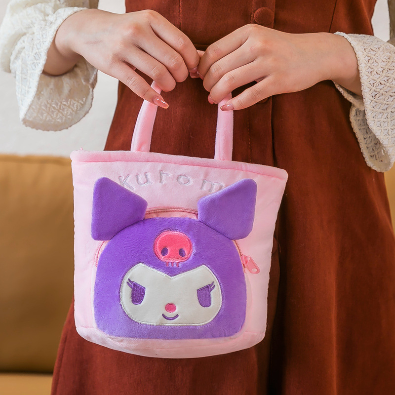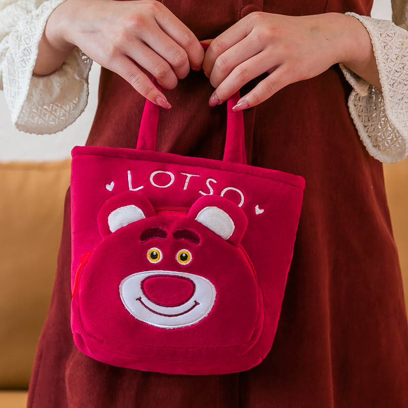 新款卡通草莓熊玩具手提包化妆方包女孩手拎毛绒包包批发抓机娃娃