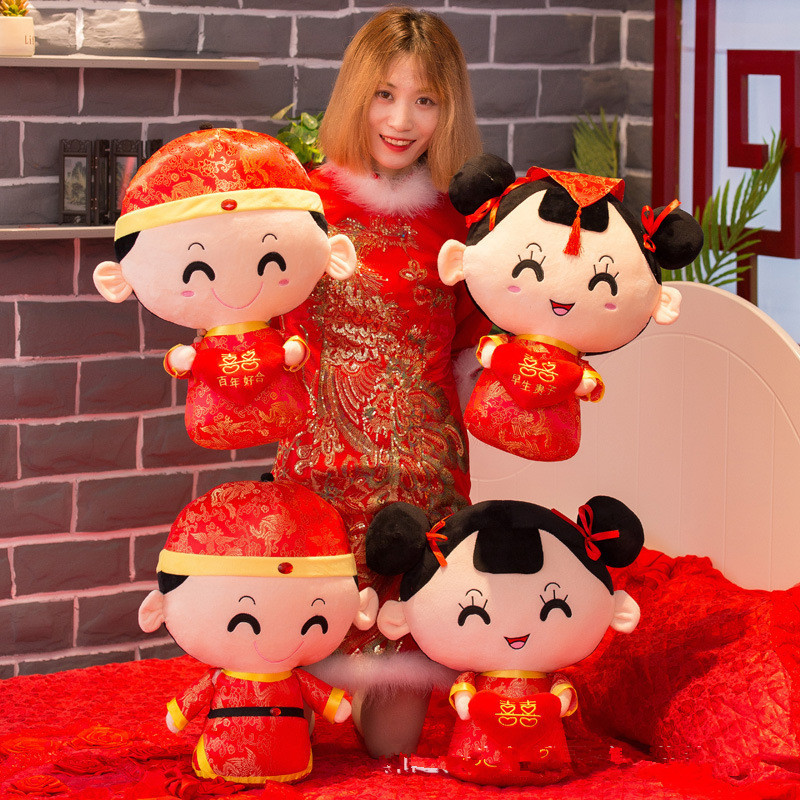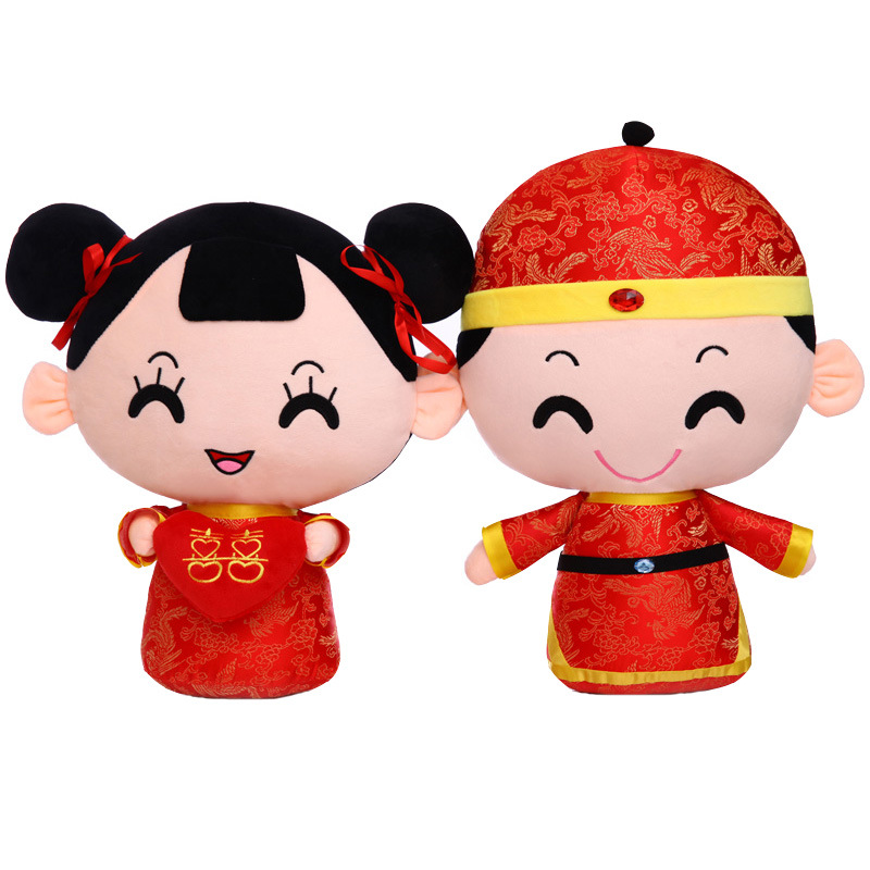 结婚礼物压床娃娃一对喜娃婚庆毛绒玩具公仔婚房玩偶婚礼用品批发