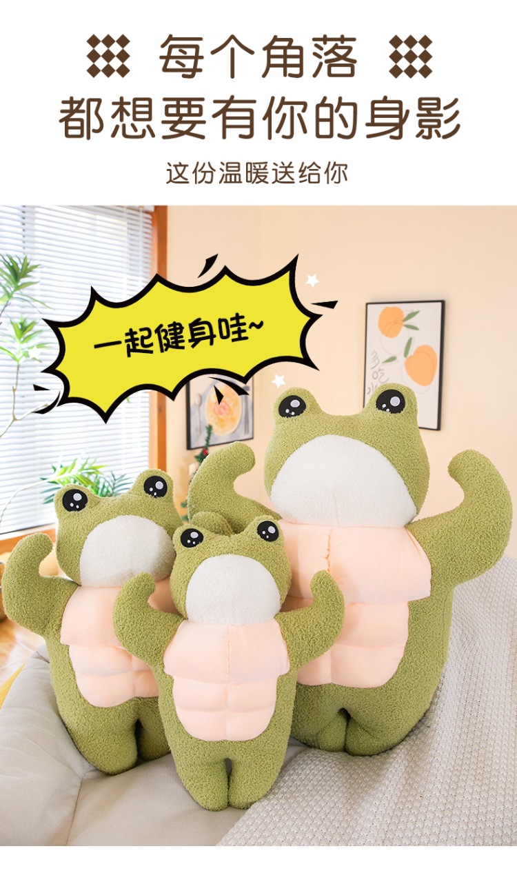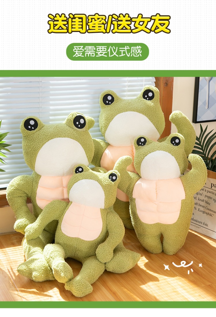跨境毛绒玩具网红腹肌蛙公仔批发新款搞怪青蛙抱枕男生睡觉外贸