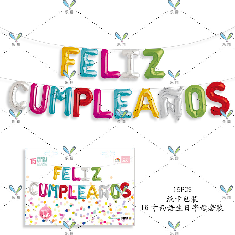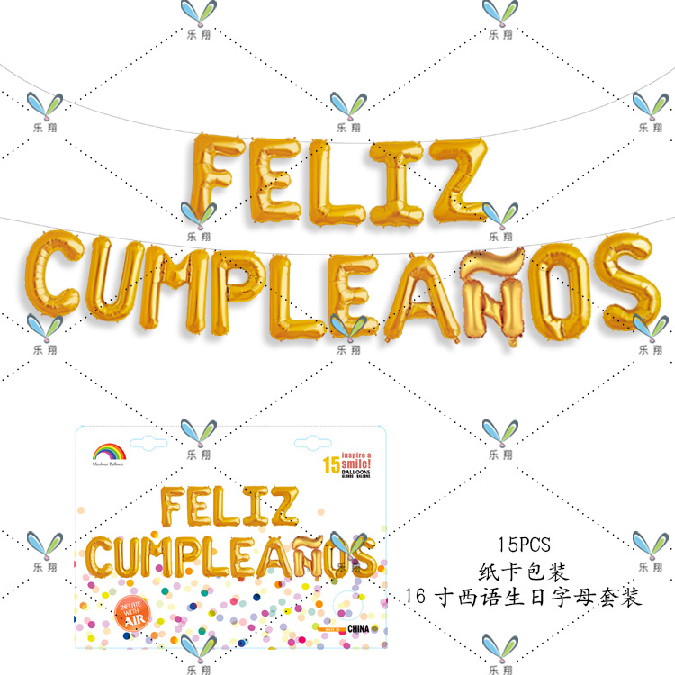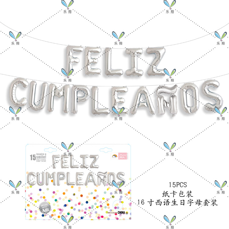 16寸西语 生日快乐字母套装 FELIZ CUMPLEAÑOS 铝膜气球场景布置