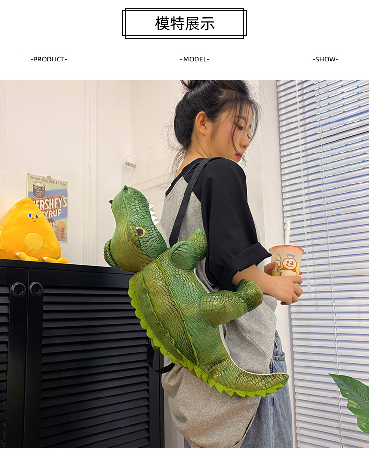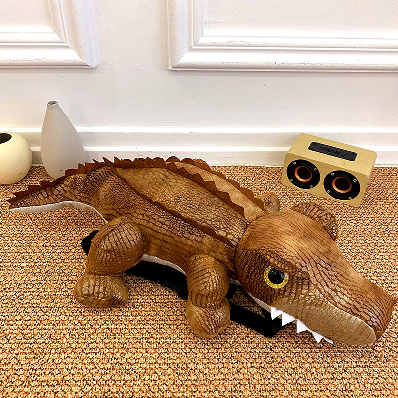 卡通鳄鱼背包毛绒玩具双肩包单肩斜挎包公仔玩偶批发跨境外贸包包