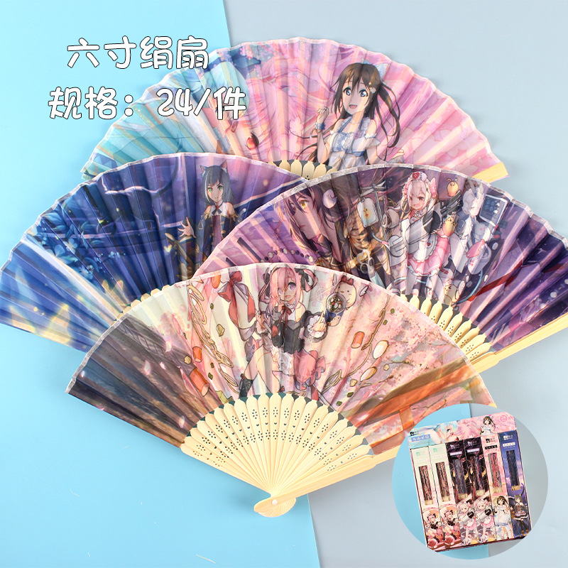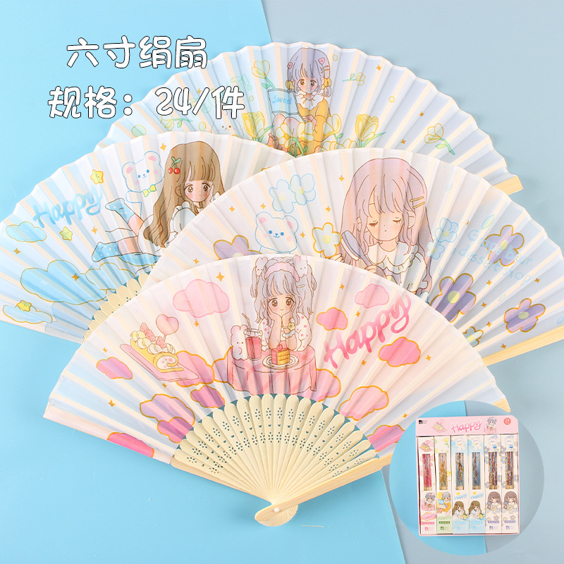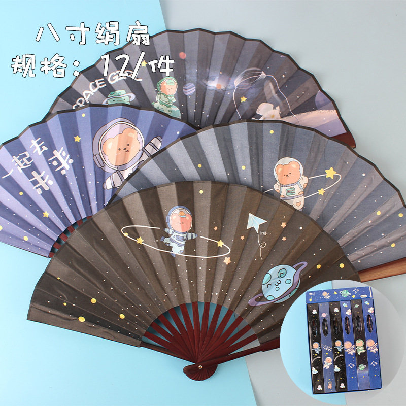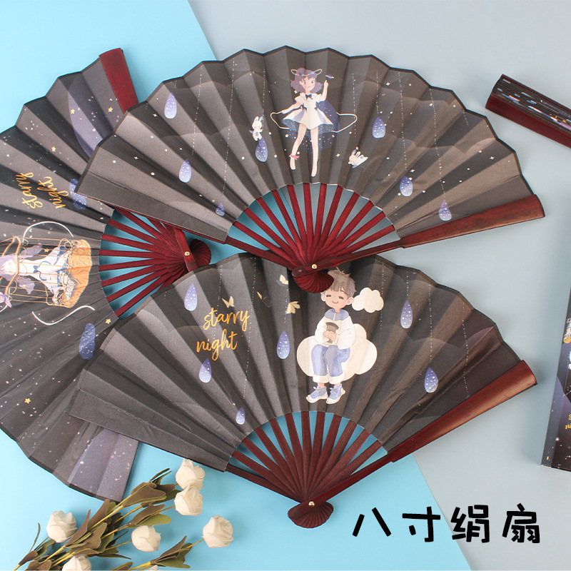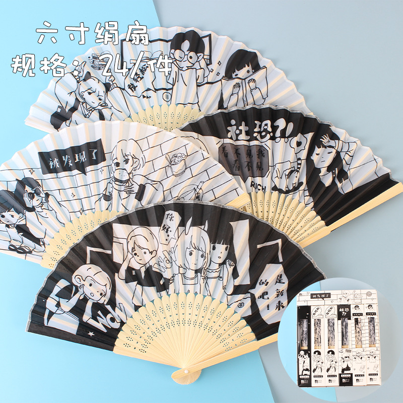 8寸卡通动漫潮语娟布扇复古手摇扇防水折叠扇子便携学生折扇批发