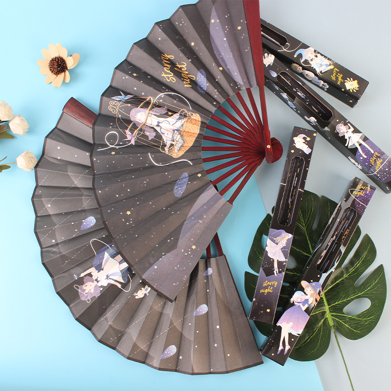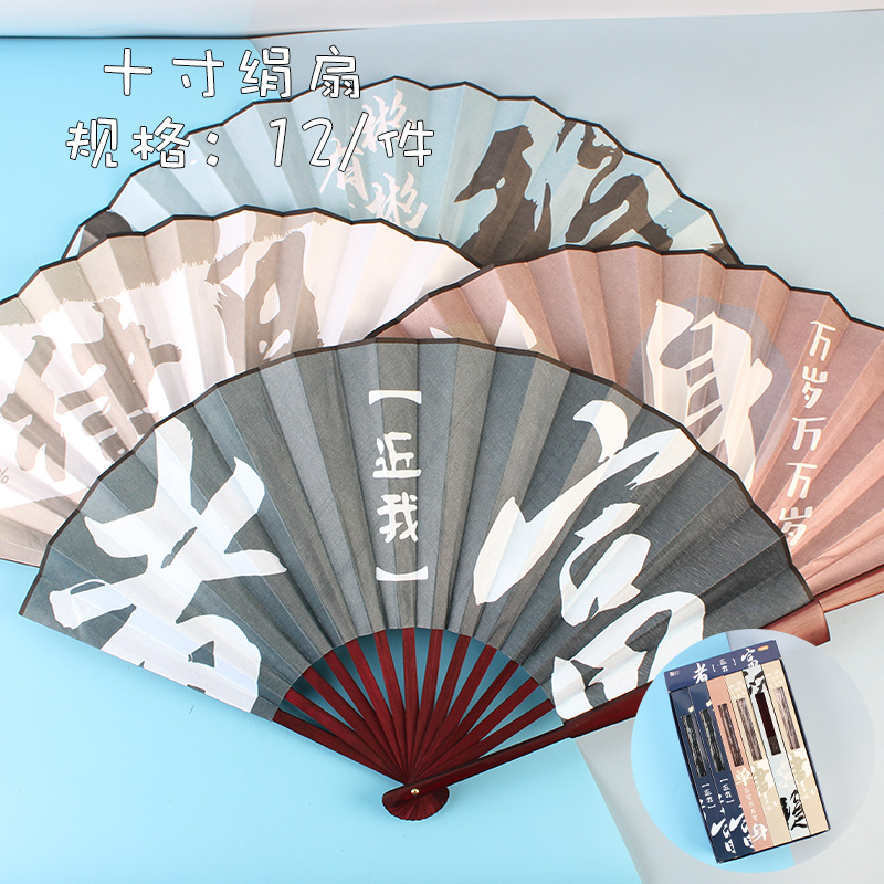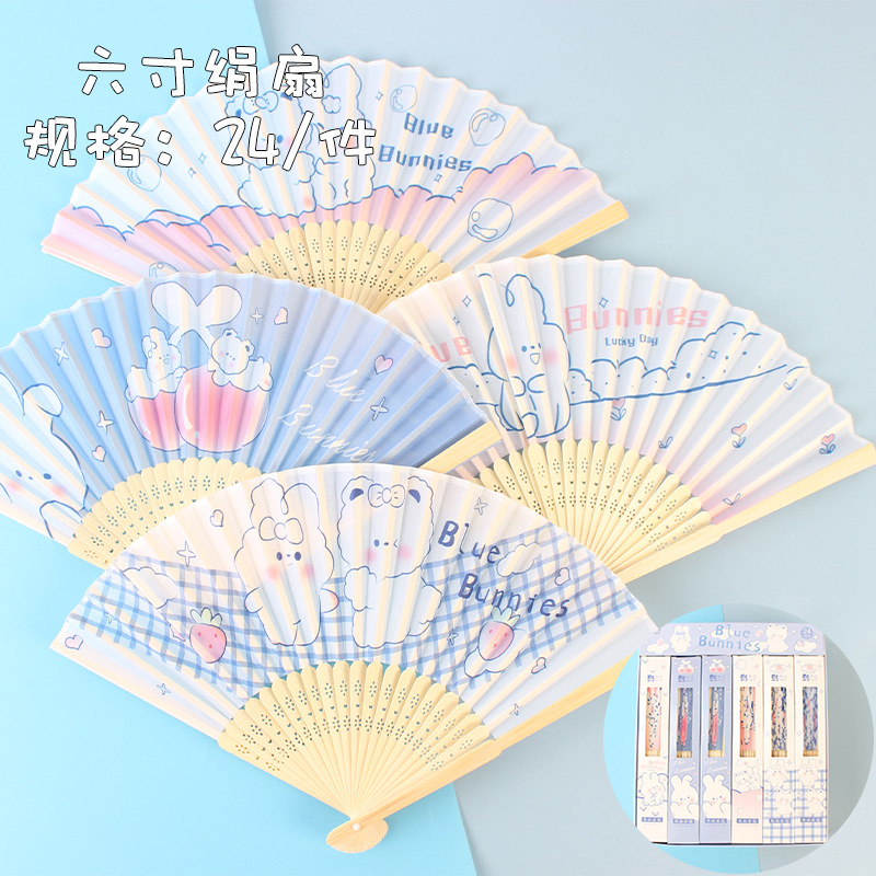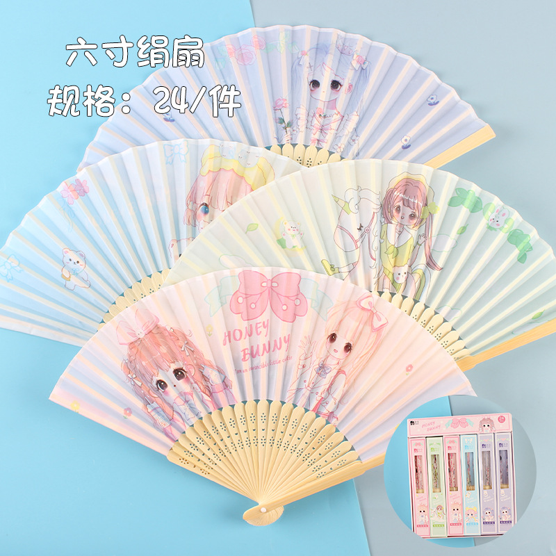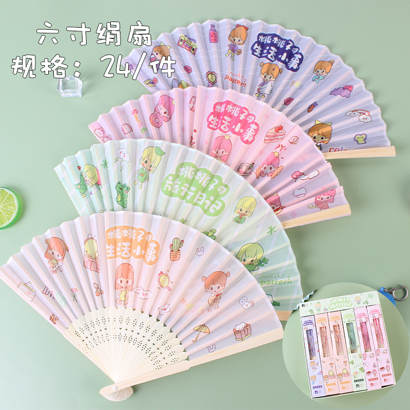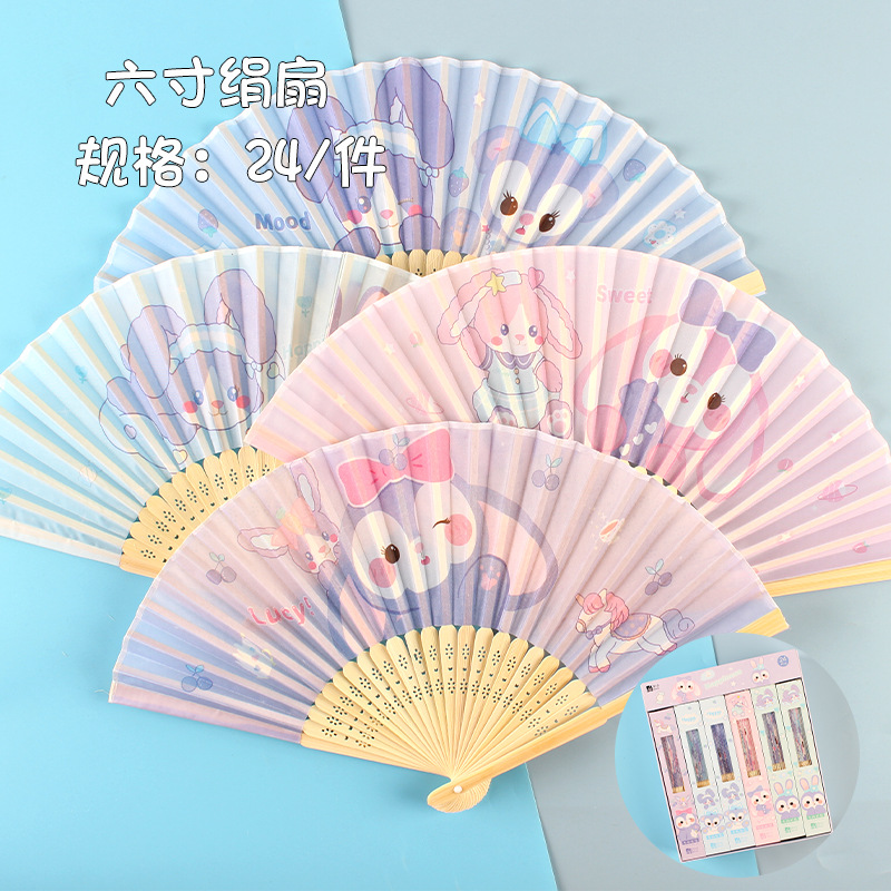 8寸卡通动漫潮语娟布扇复古手摇扇防水折叠扇子便携学生折扇批发