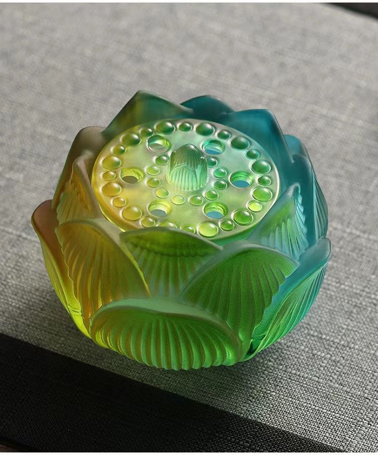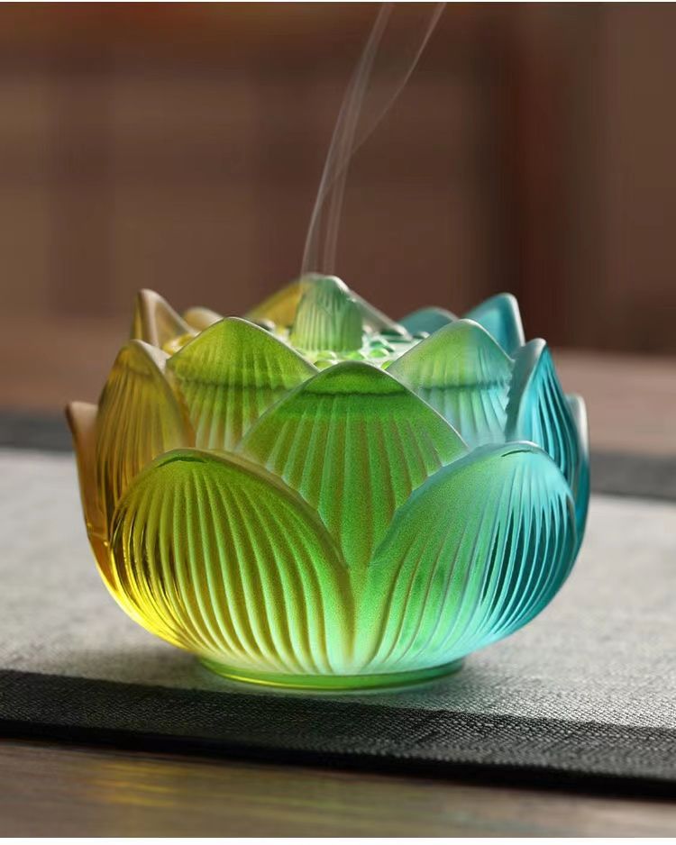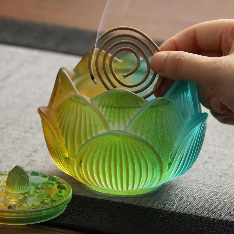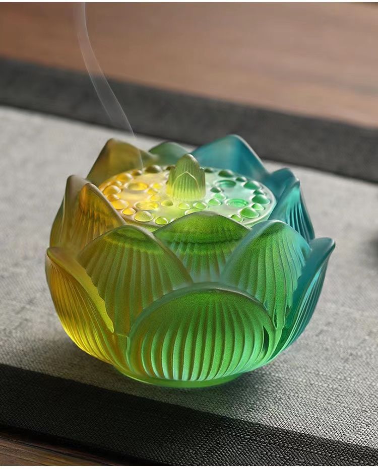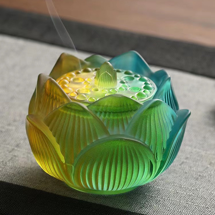 七彩渐变琉璃荷花莲花香炉打香篆禅意摆件香薰炉家用卧室琉