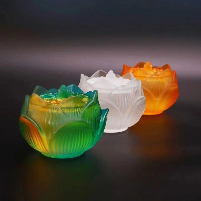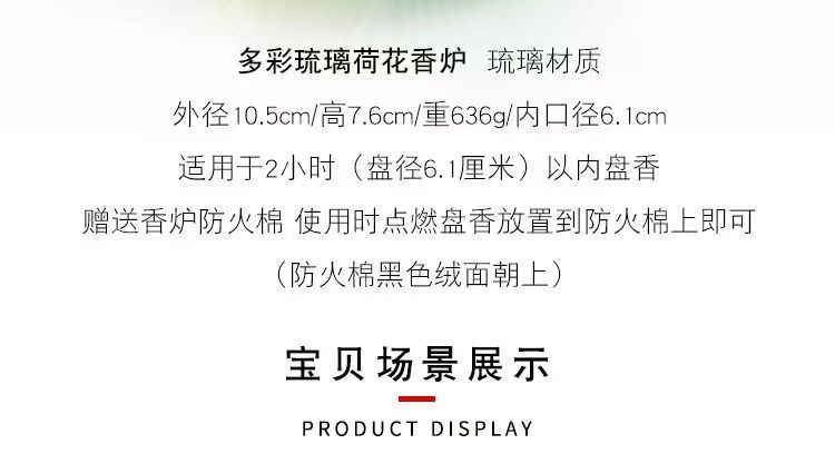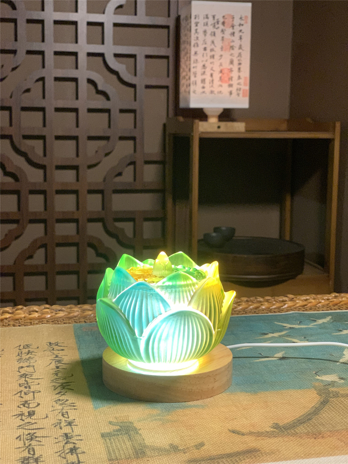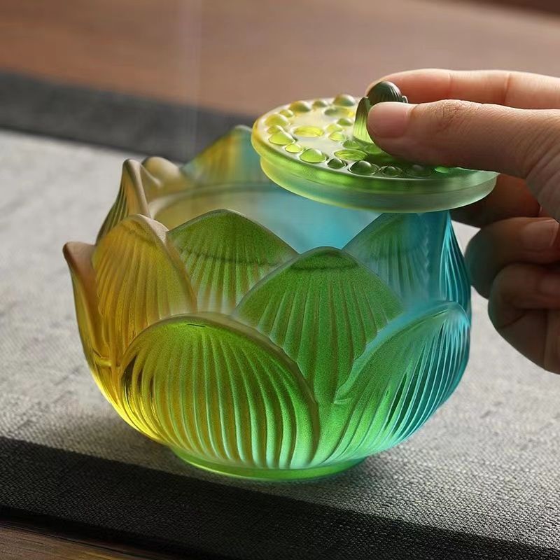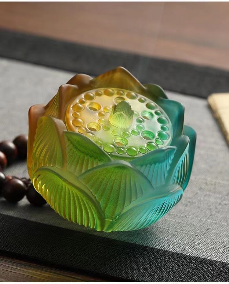 七彩渐变琉璃荷花莲花香炉打香篆禅意摆件香薰炉家用卧室琉