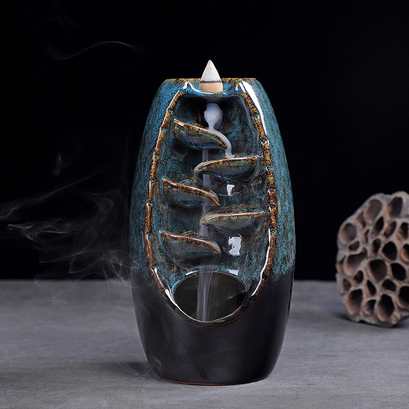 陶瓷倒流香炉创意窑变蓝色倒流香薰炉家居摆件