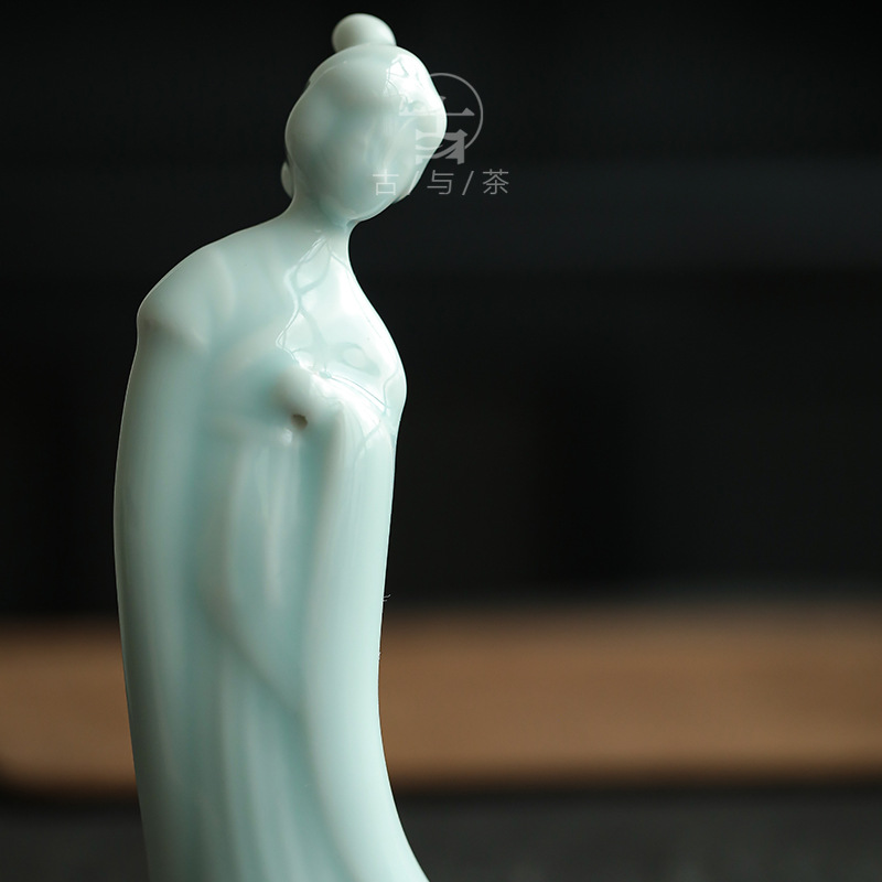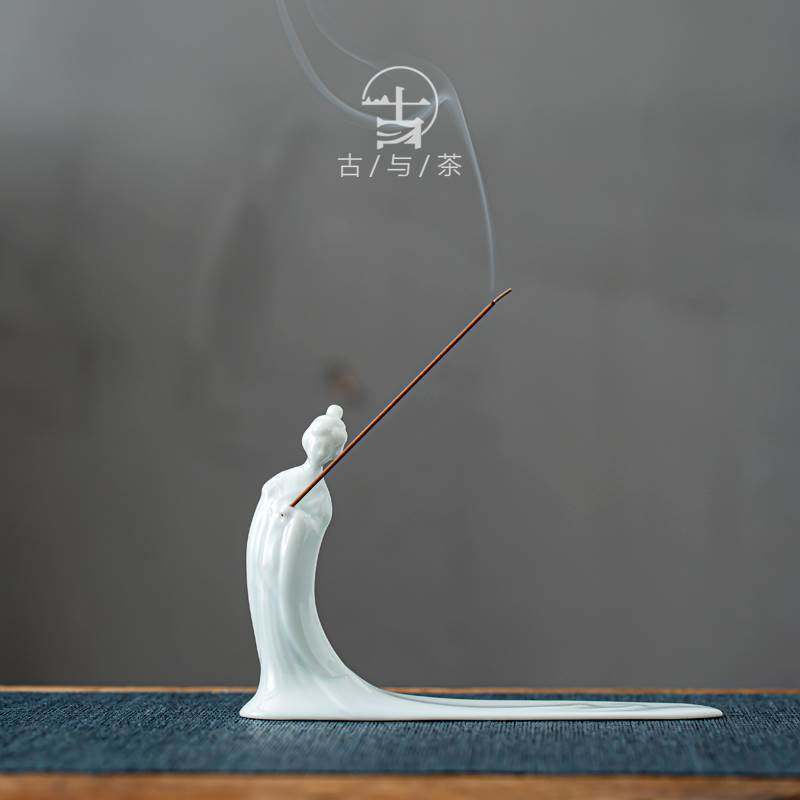 仕女青瓷香插陶瓷香炉细条线香复古中国风檀香座香道摆件家居饰品
