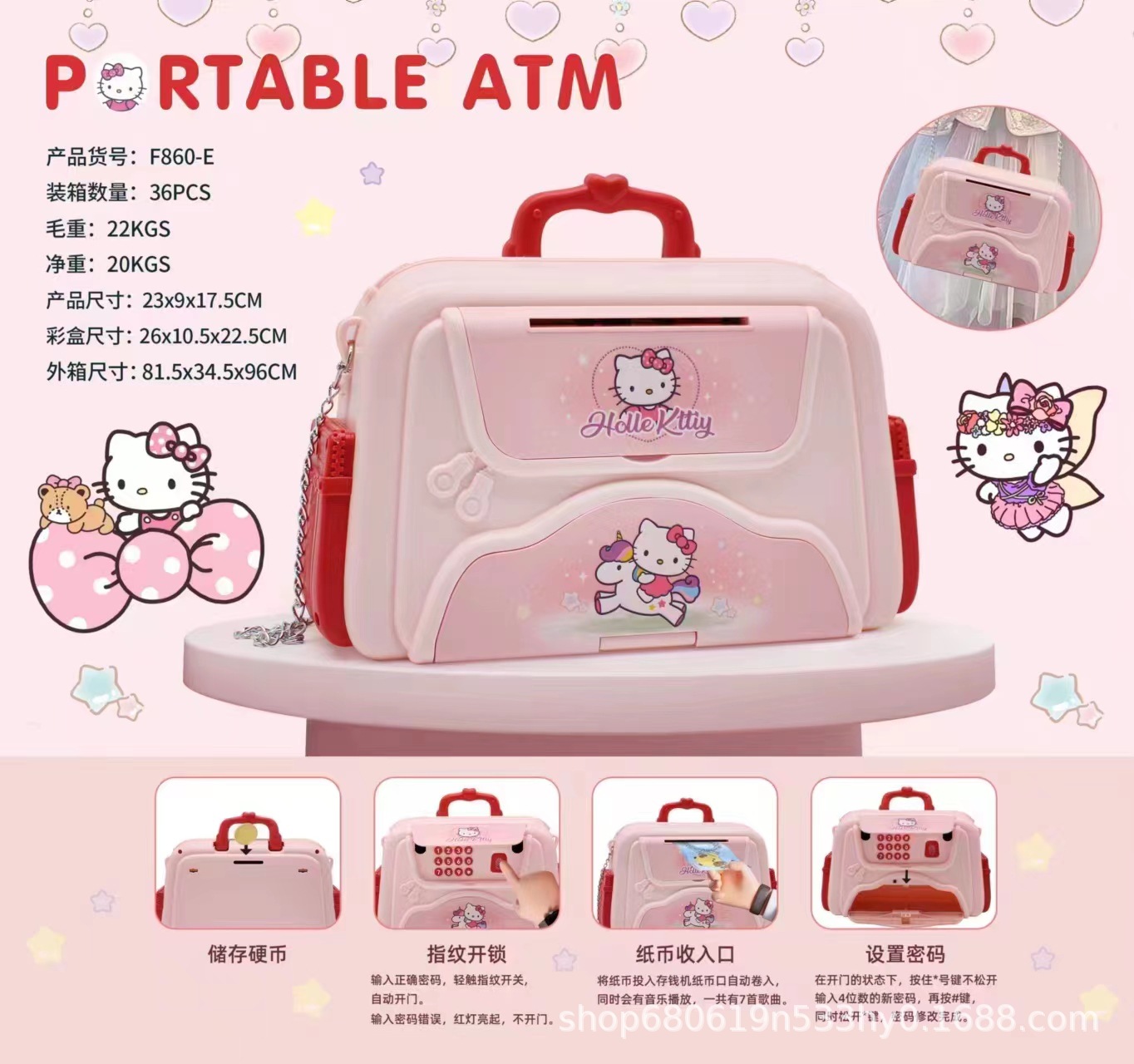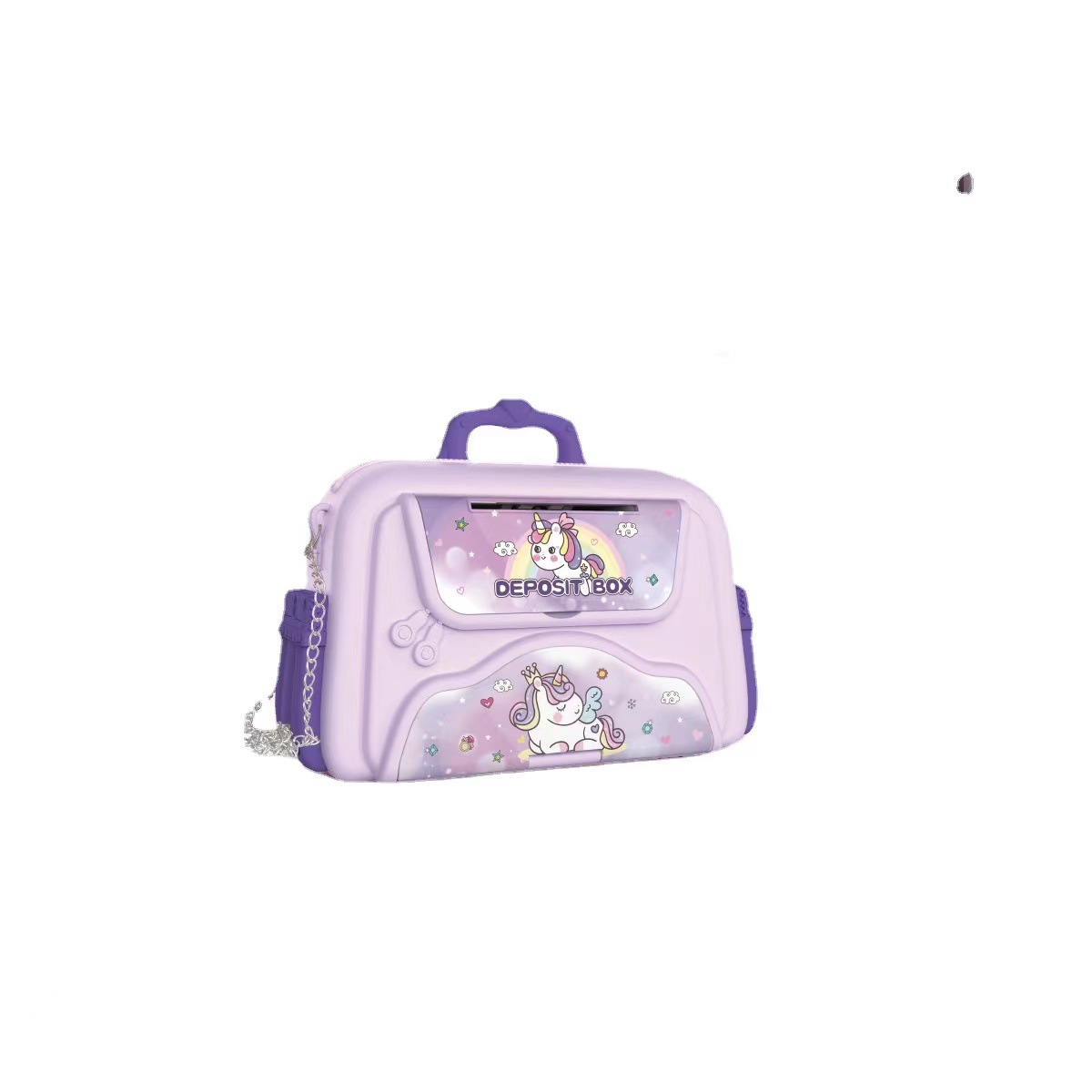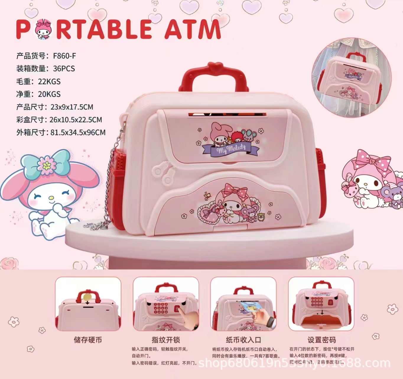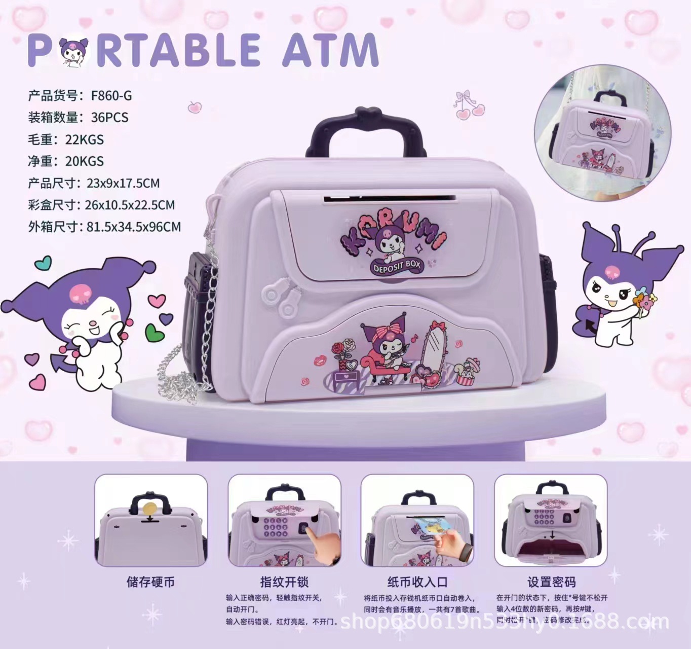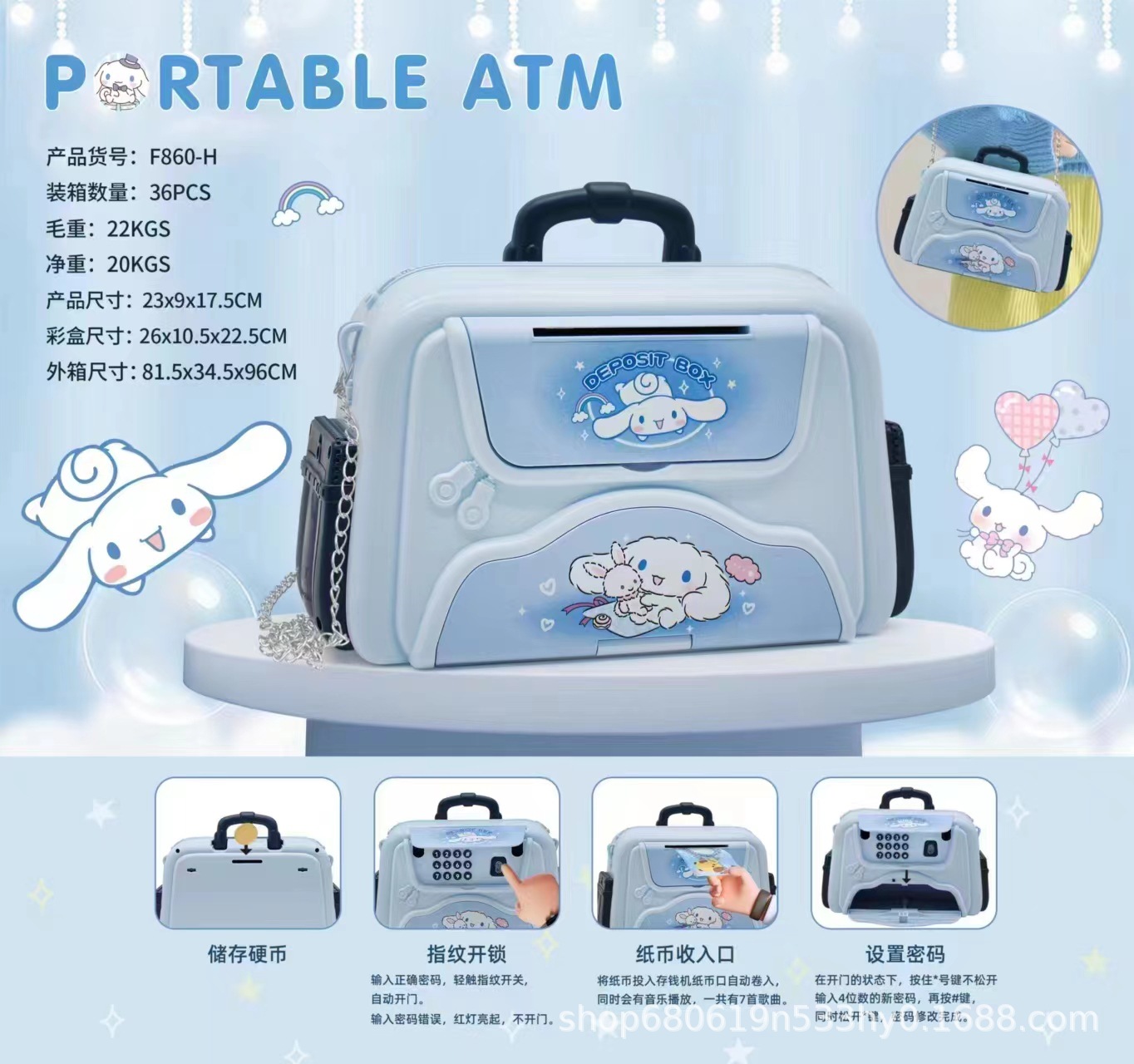 跨境儿童手提包密码箱存钱罐ATM机指纹自动卷钱音乐存钱箱储蓄罐