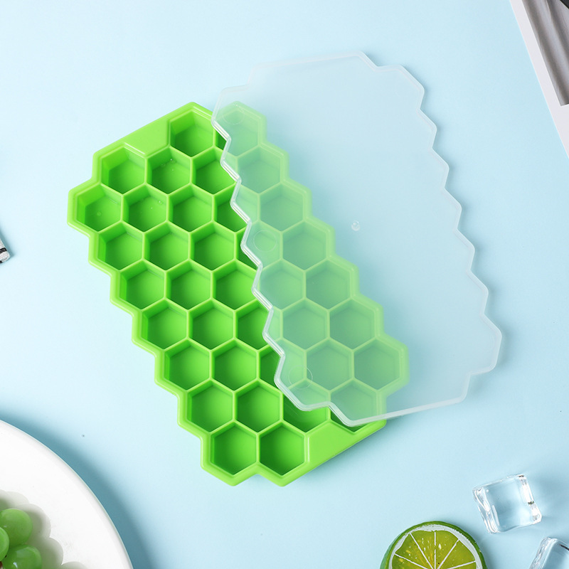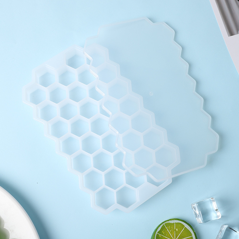 铂金硅胶37孔蜂窝冰格 纯硅胶蜂巢带盖制冰模具食品级DIY冰盒