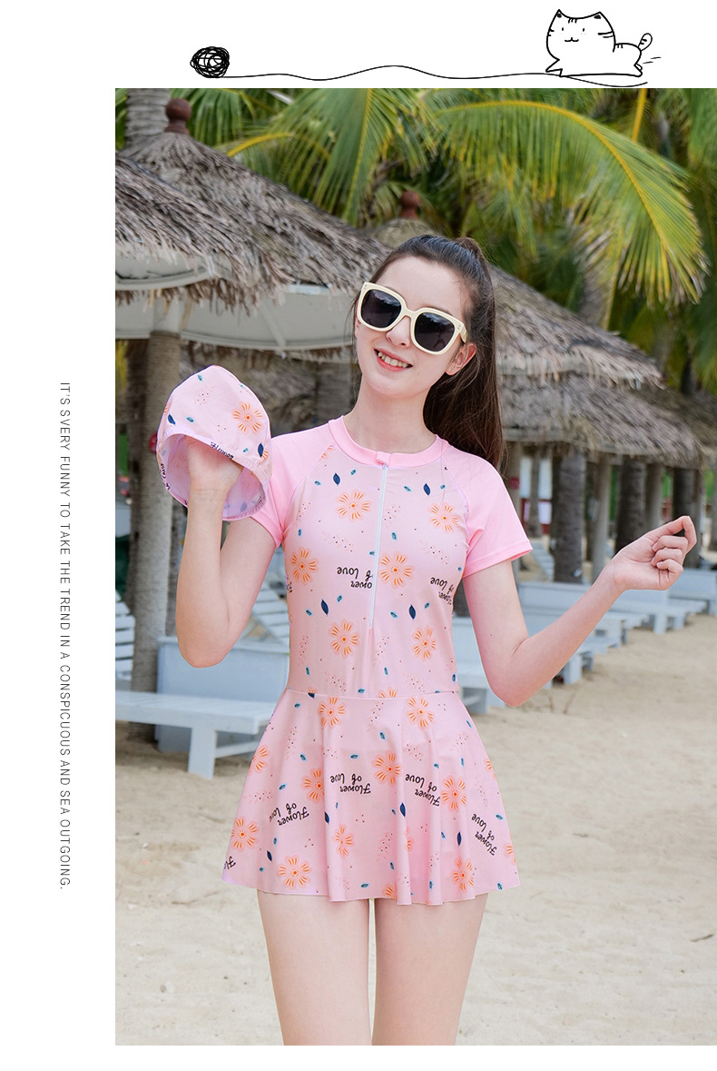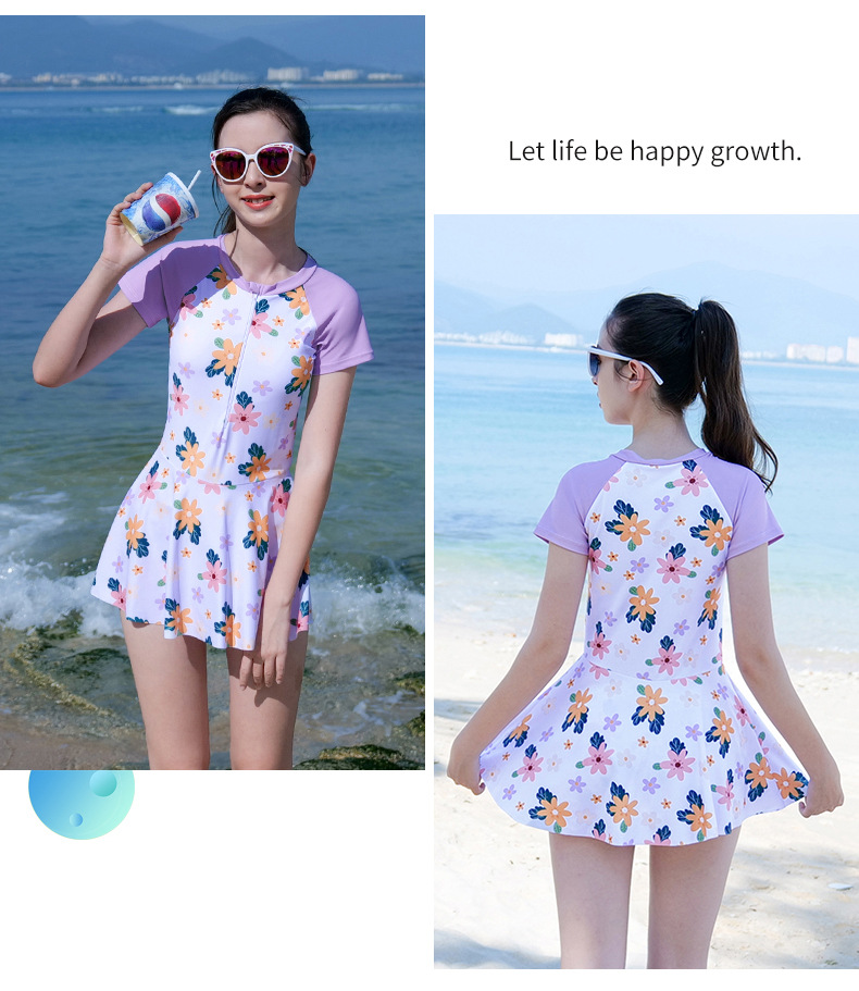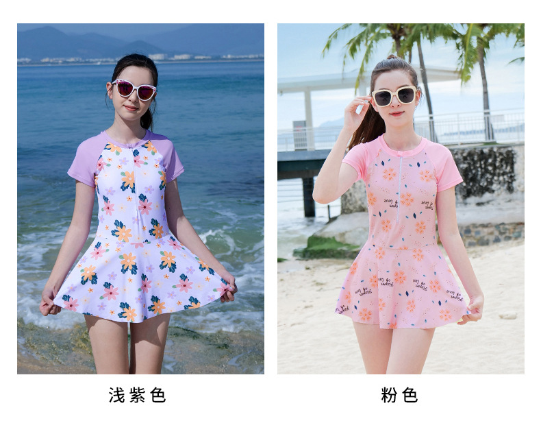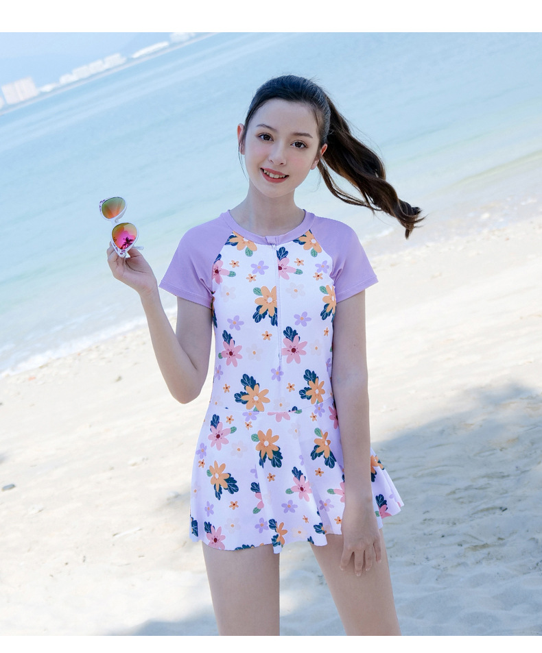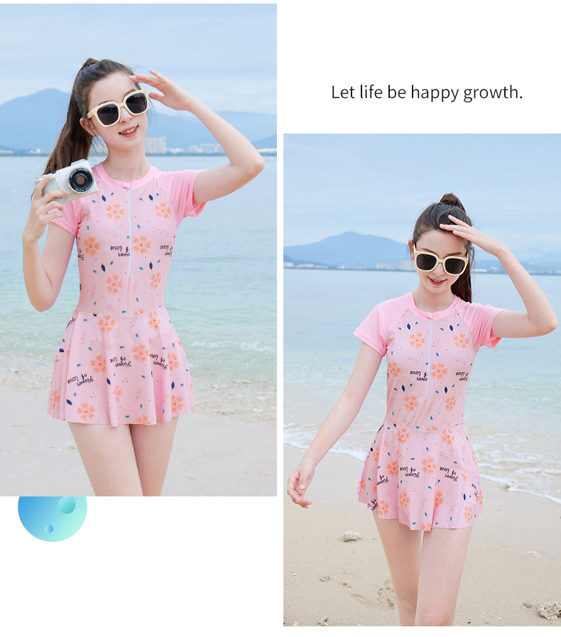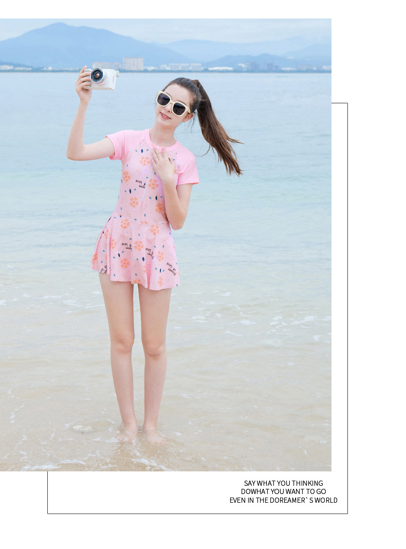 女童泳衣连体裙式中大童学生保守泳装少女韩版碎花儿童女孩游泳衣