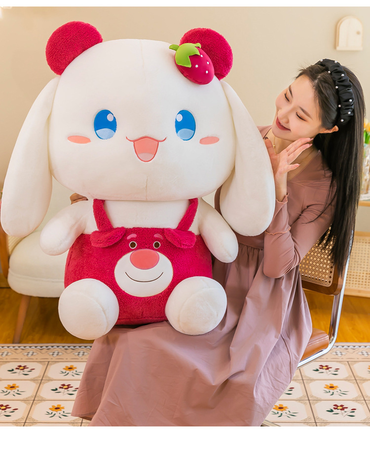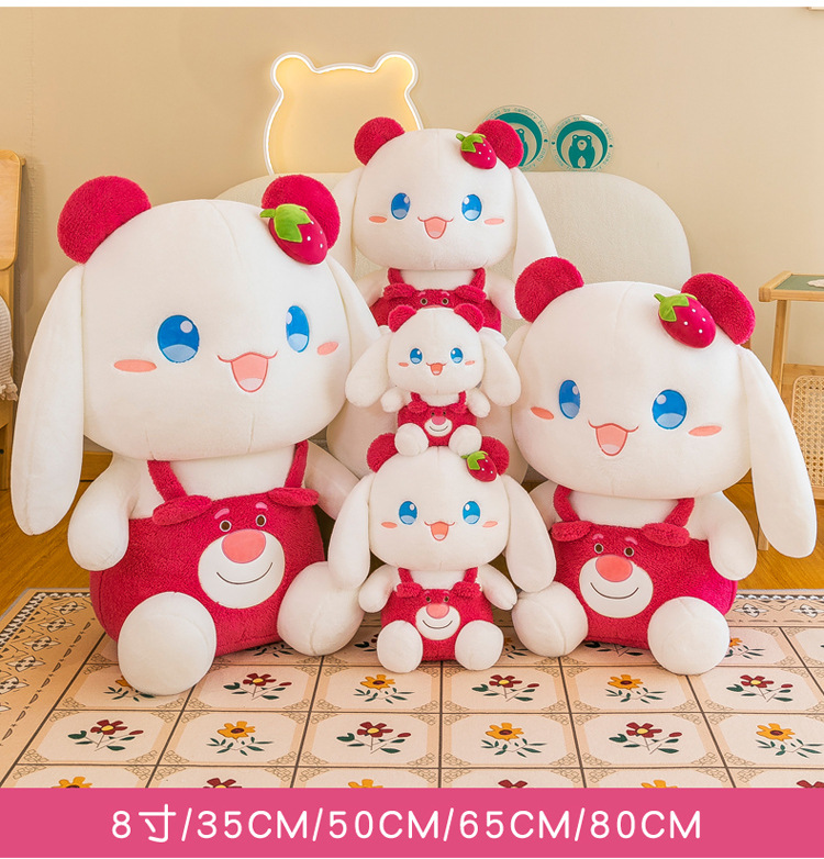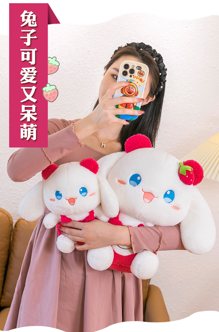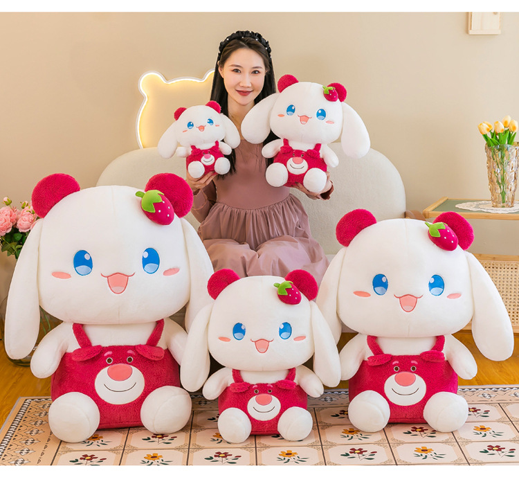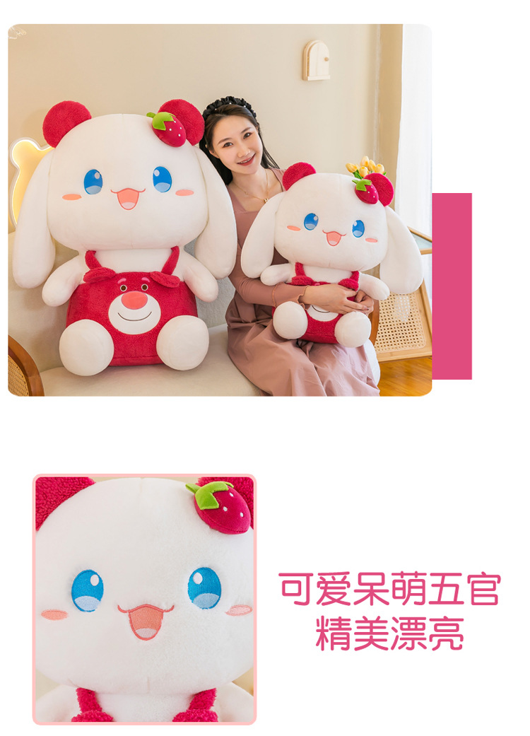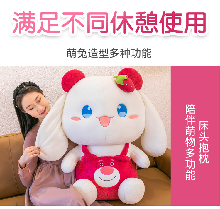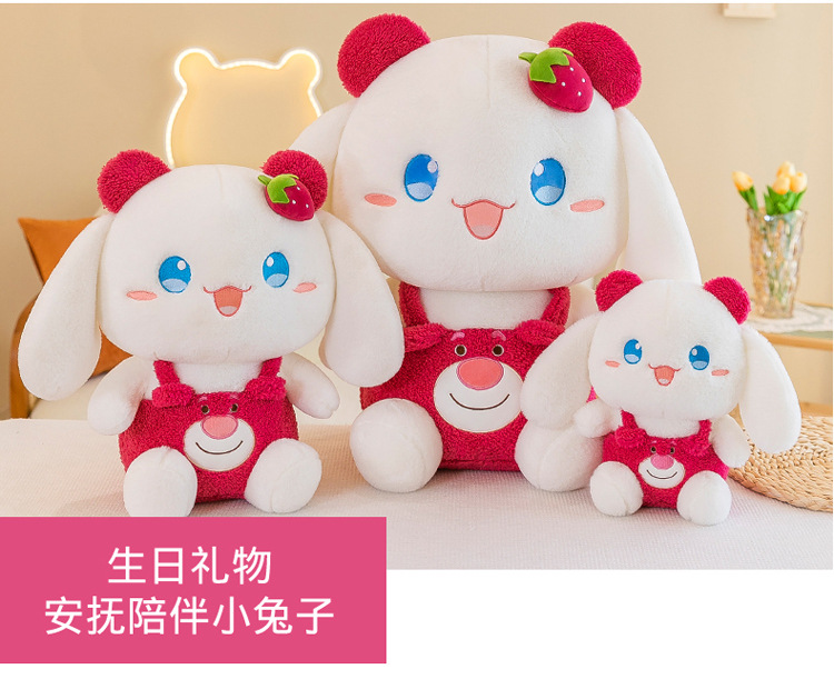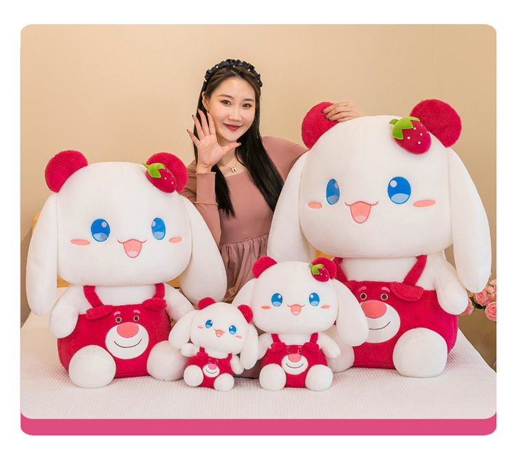 新款可爱草莓兔子公仔毛绒玩具批发抱枕女生睡觉卡通玩偶草莓熊兔