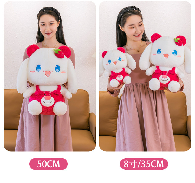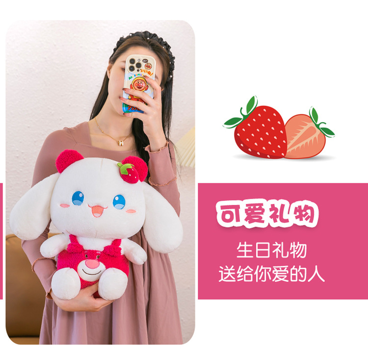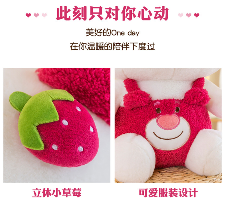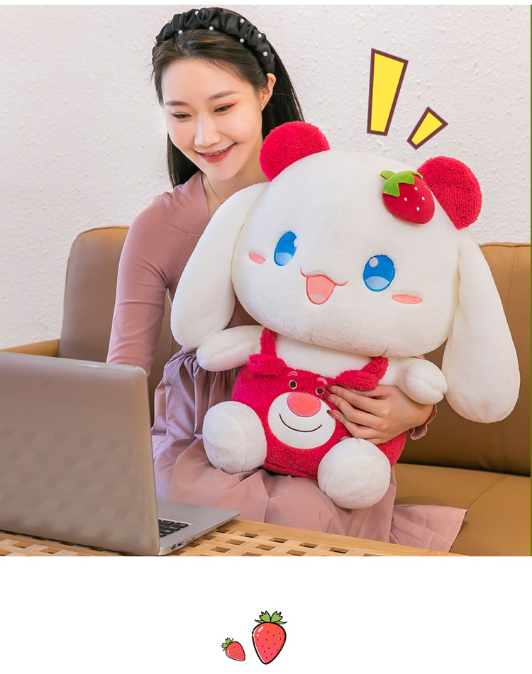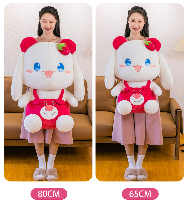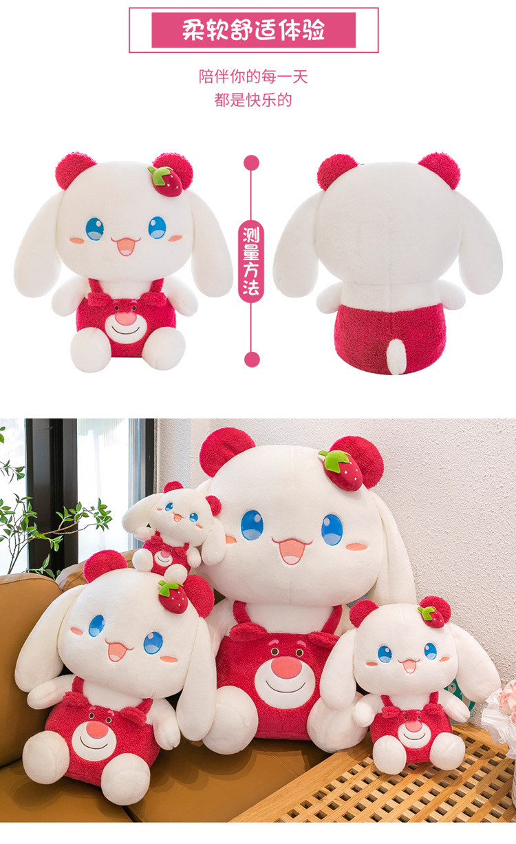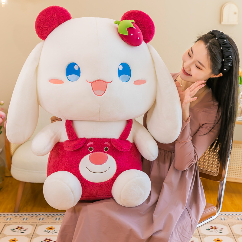 新款可爱草莓兔子公仔毛绒玩具批发抱枕女生睡觉卡通玩偶草莓熊兔