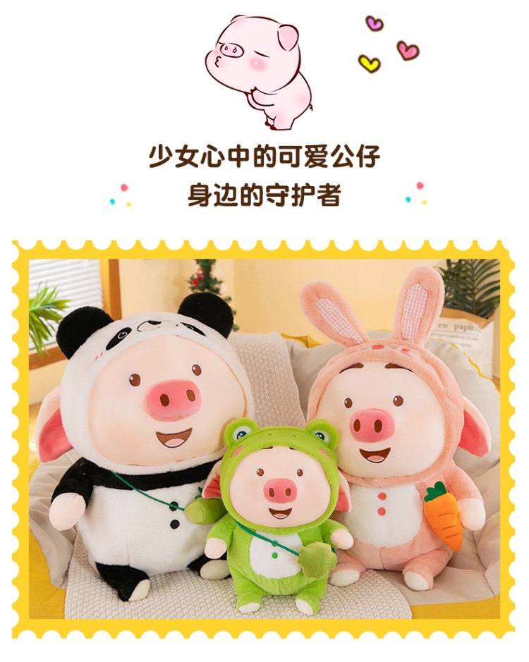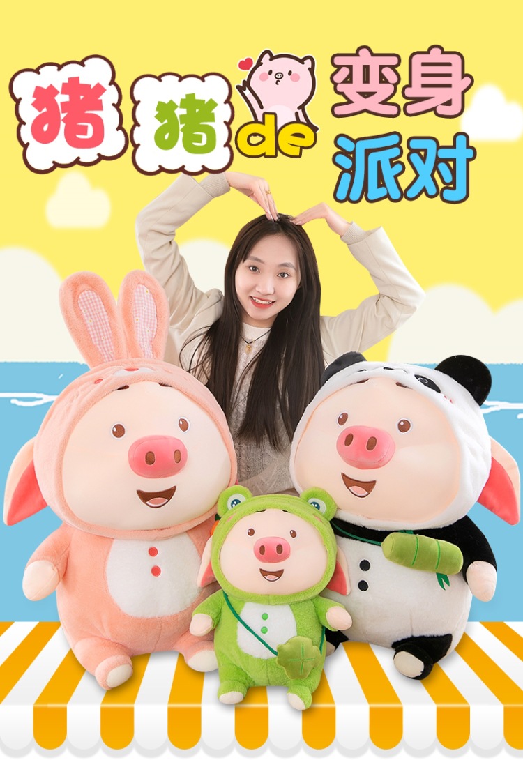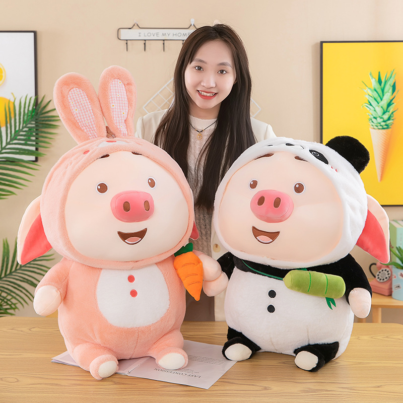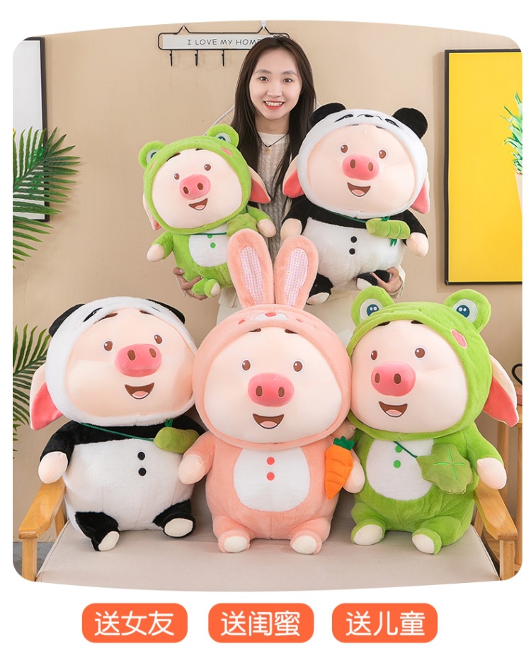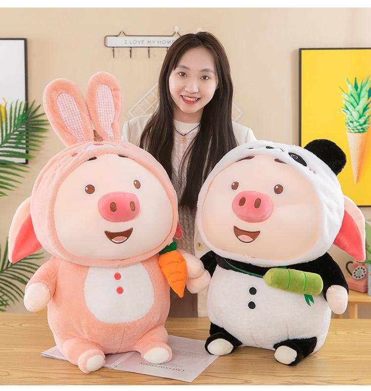 可爱熊猫小猪猪公仔毛绒玩具批发儿童布娃娃玩偶生日礼物女孩跨境