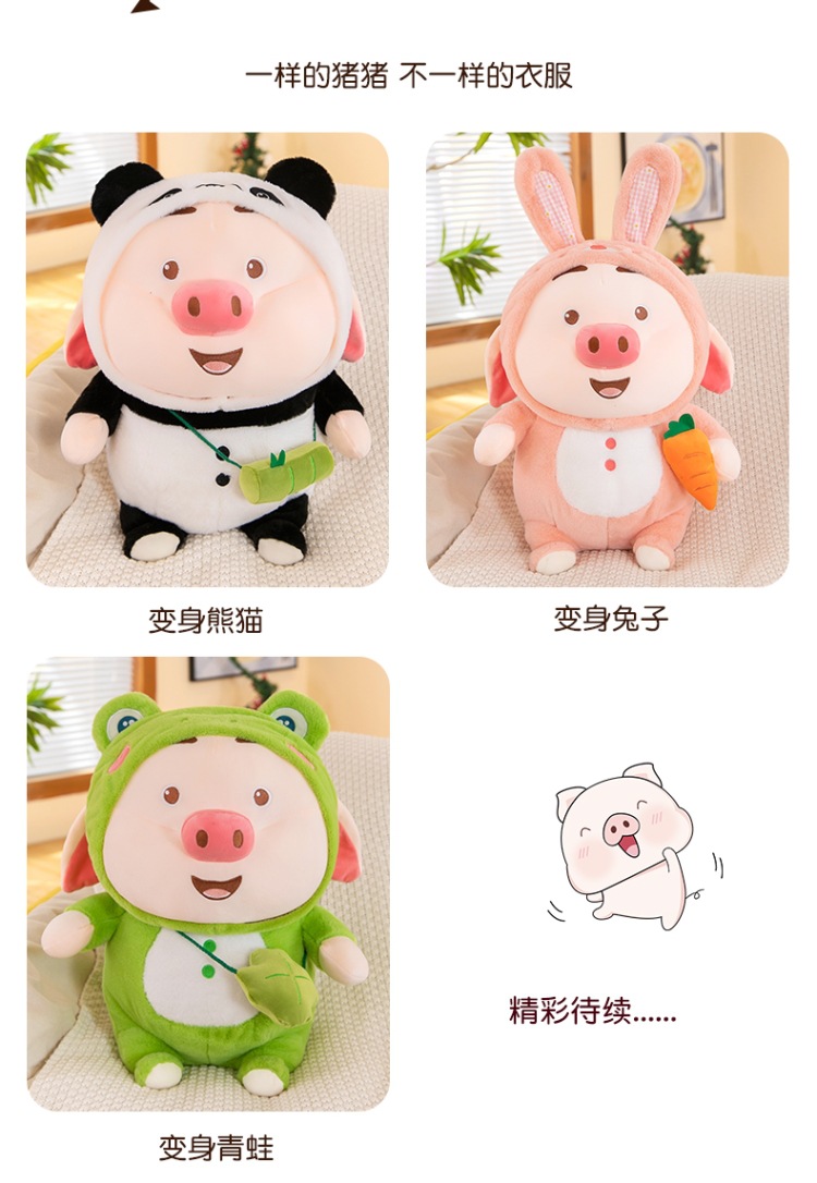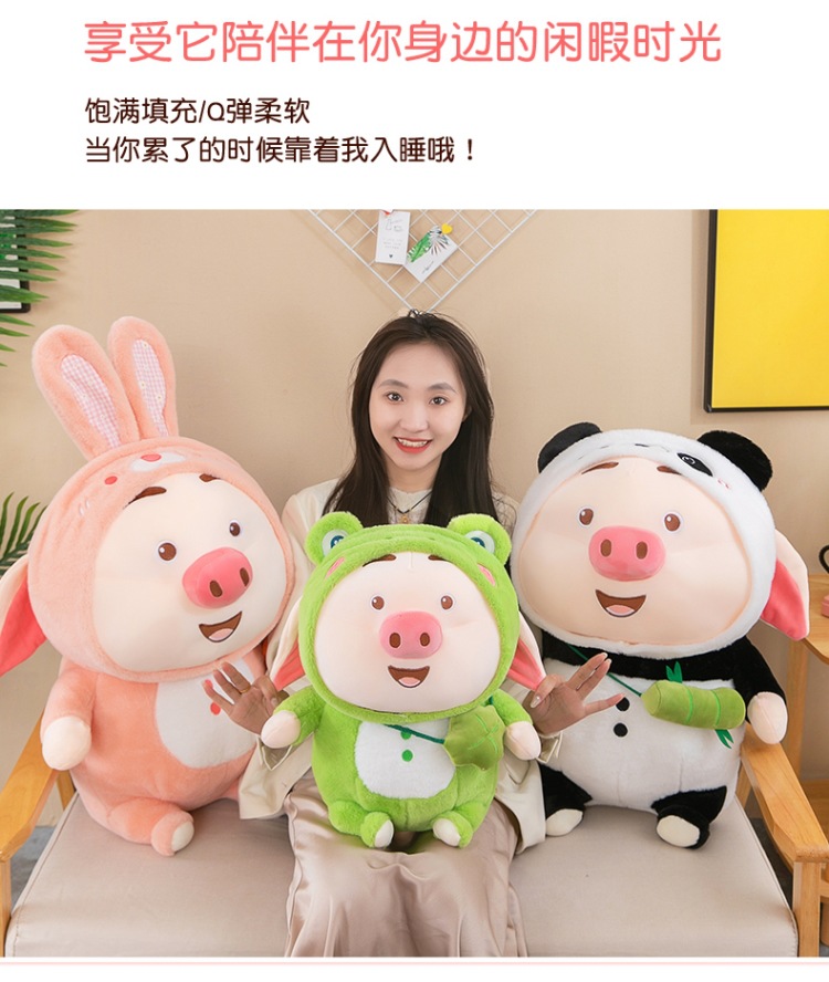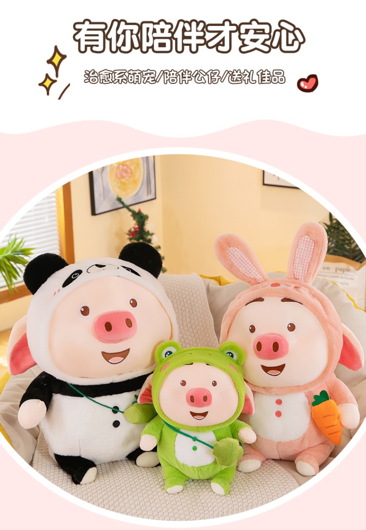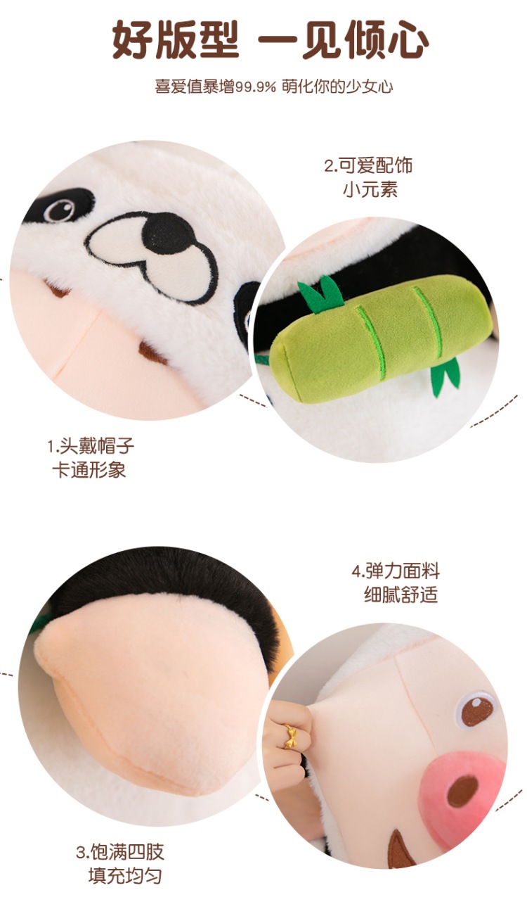 可爱熊猫小猪猪公仔毛绒玩具批发儿童布娃娃玩偶生日礼物女孩跨境