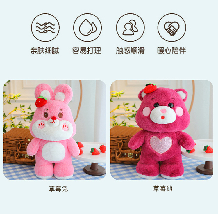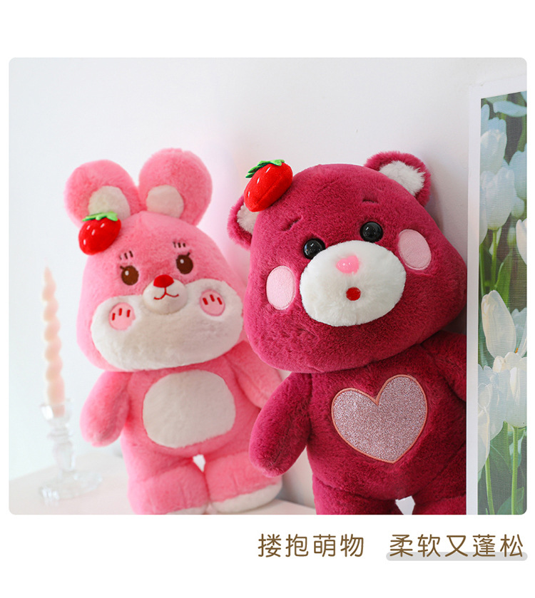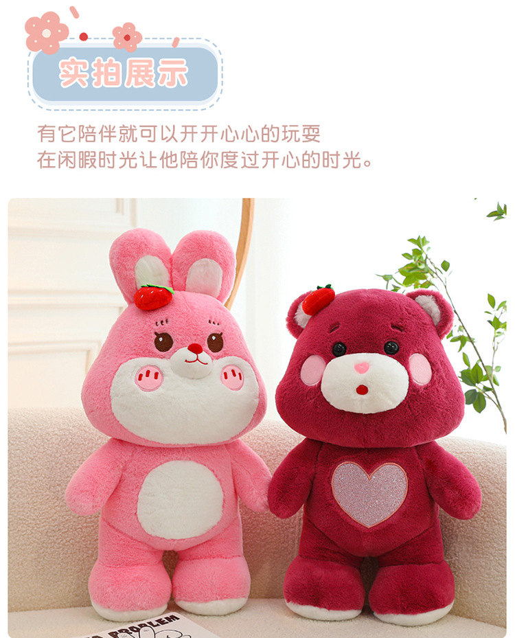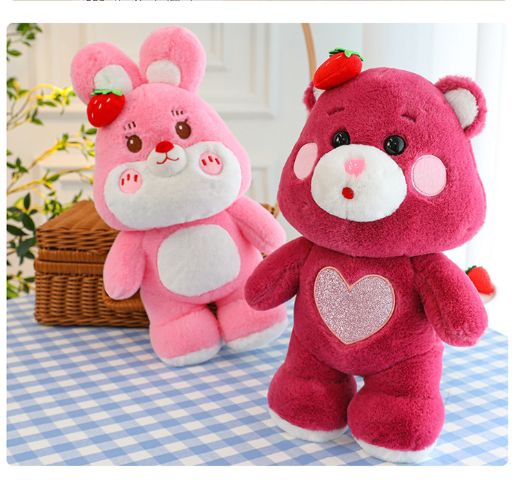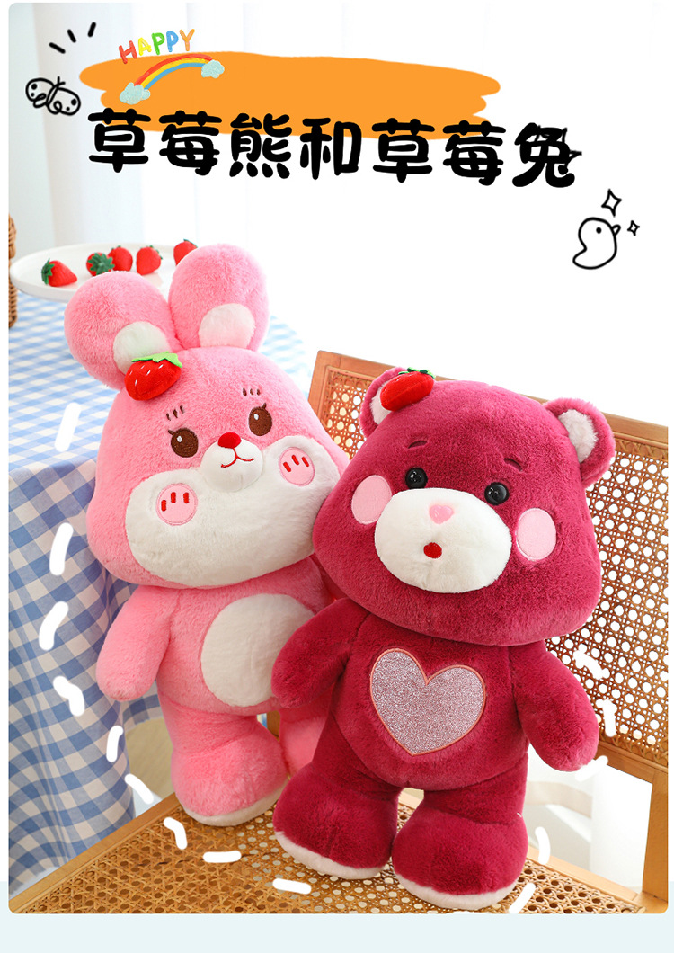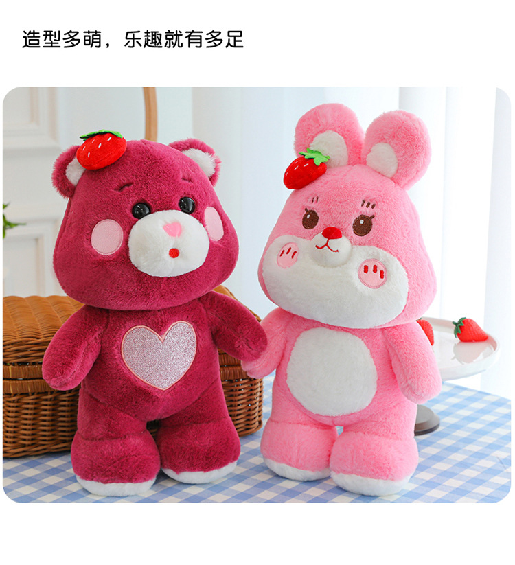 跨境呆萌可爱草莓熊毛绒玩具泰迪熊草莓兔子公仔批发儿童玩偶娃娃