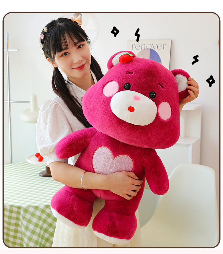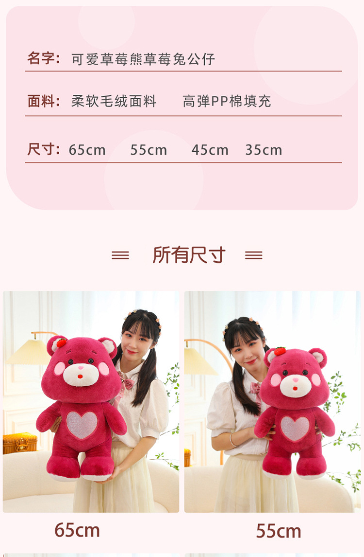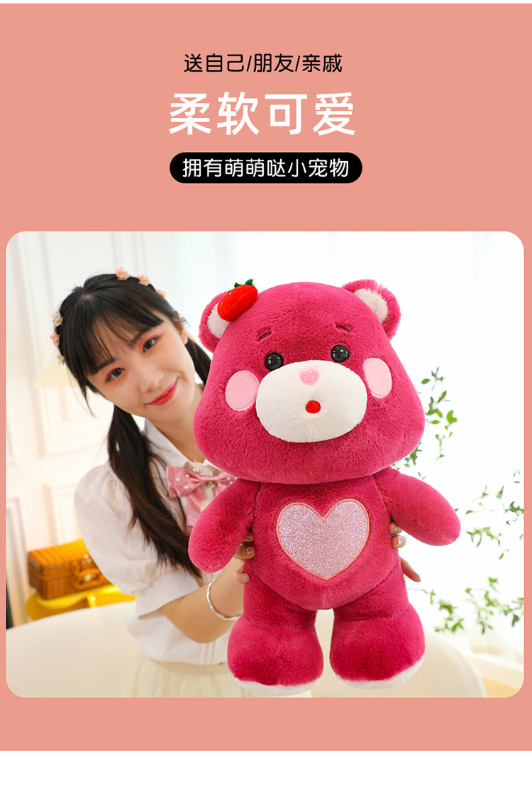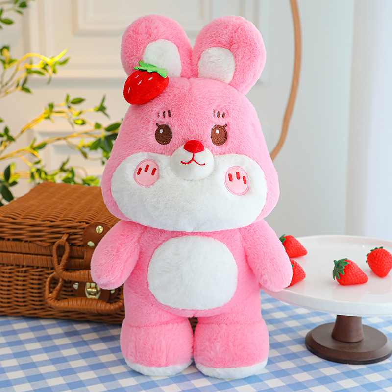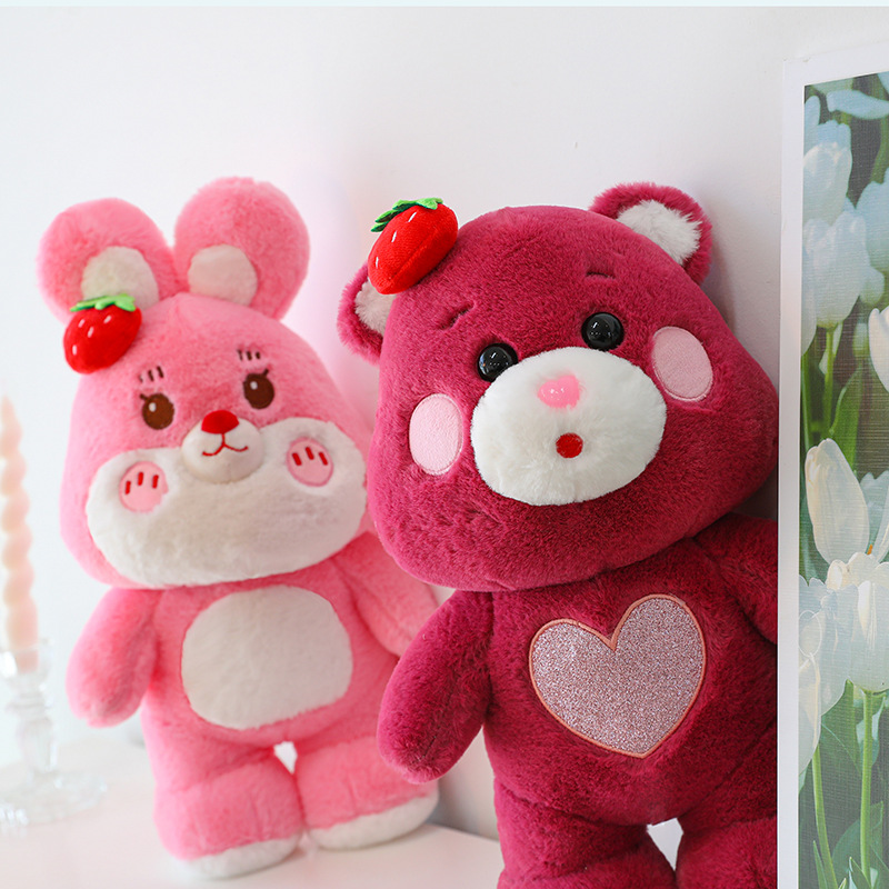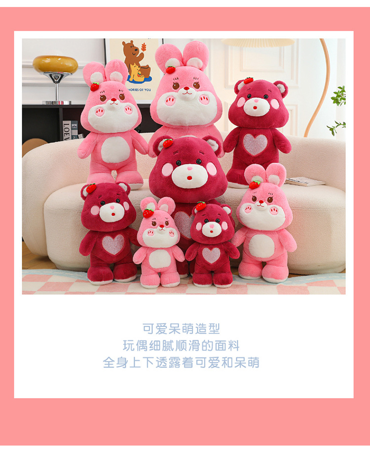 跨境呆萌可爱草莓熊毛绒玩具泰迪熊草莓兔子公仔批发儿童玩偶娃娃