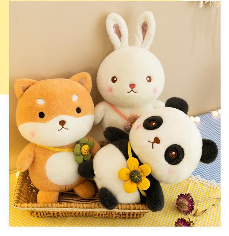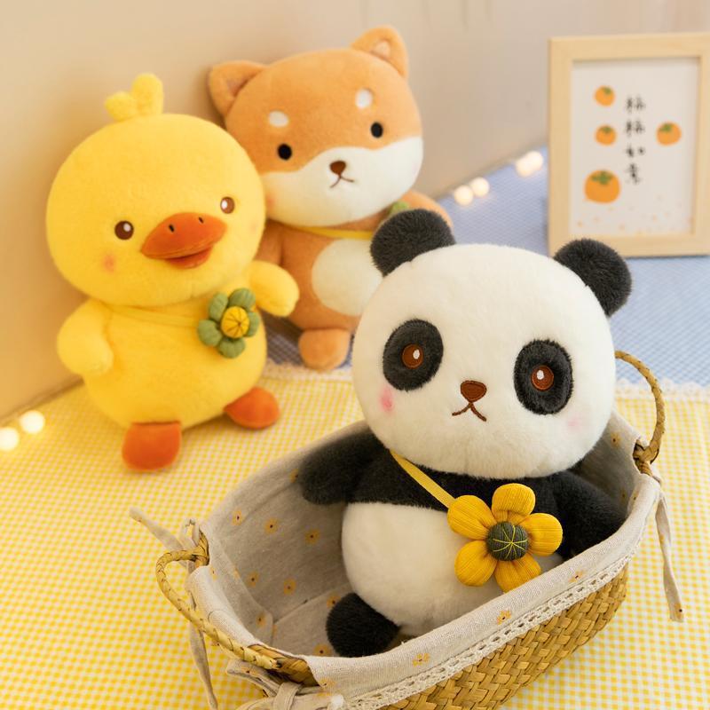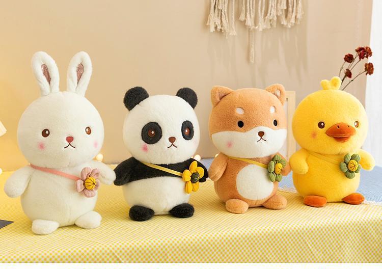跨境熊猫公仔毛绒玩具小黄鸭玩偶柴犬兔子布娃娃抓机娃娃批发混批