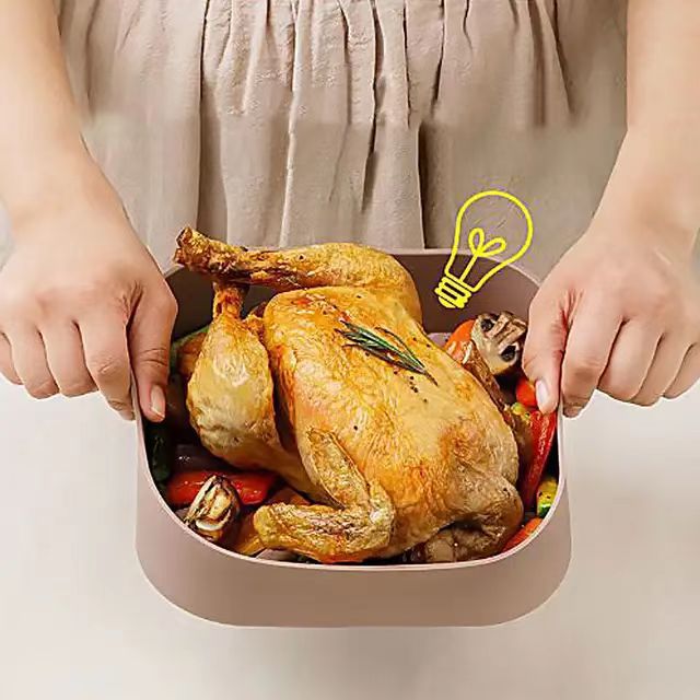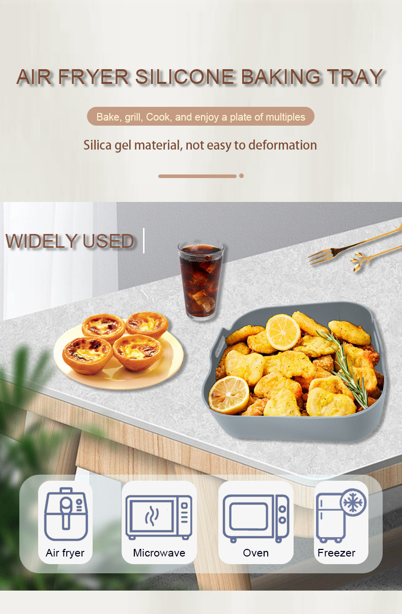方形空气炸锅硅胶烤盘衬垫 可重复使用食品级硅胶锅蓝内衬