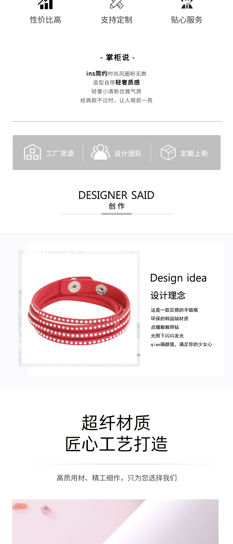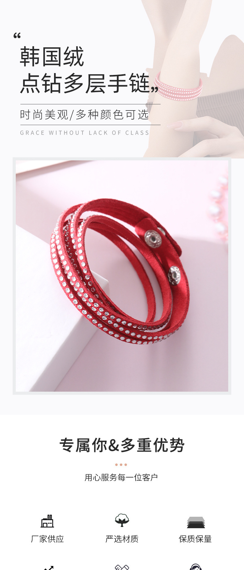 韩国绒超细纤维环保点缀碎钻水钻手镯手链多层首饰跨境欧美女
