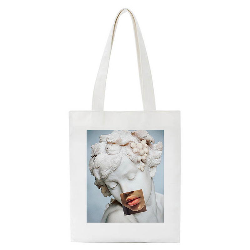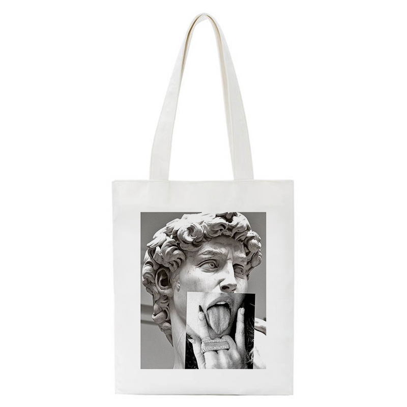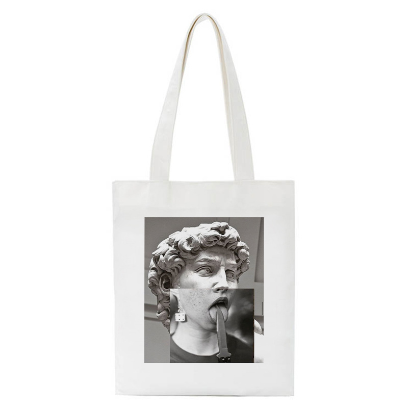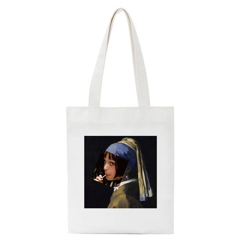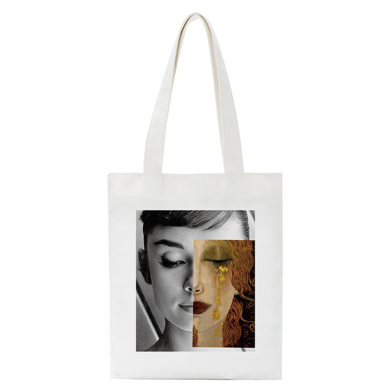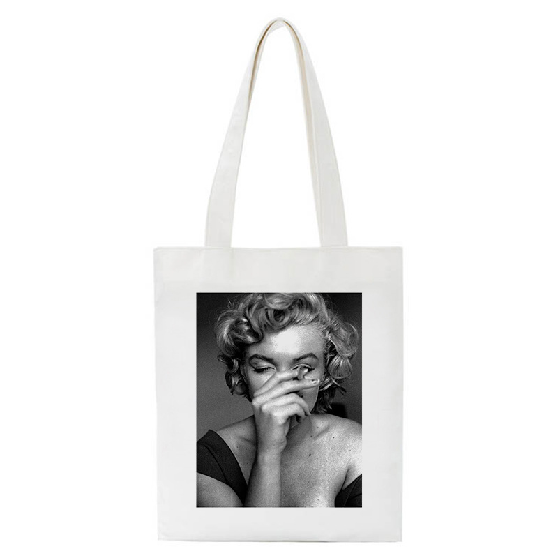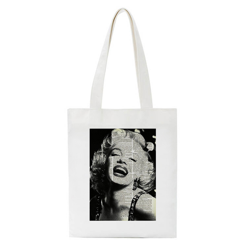 购物袋蒙娜丽莎玛丽亚梦露唯美印花动漫ins新款秋冬手提单肩帆布