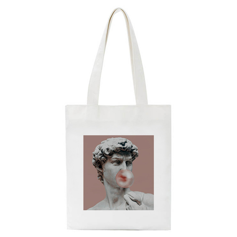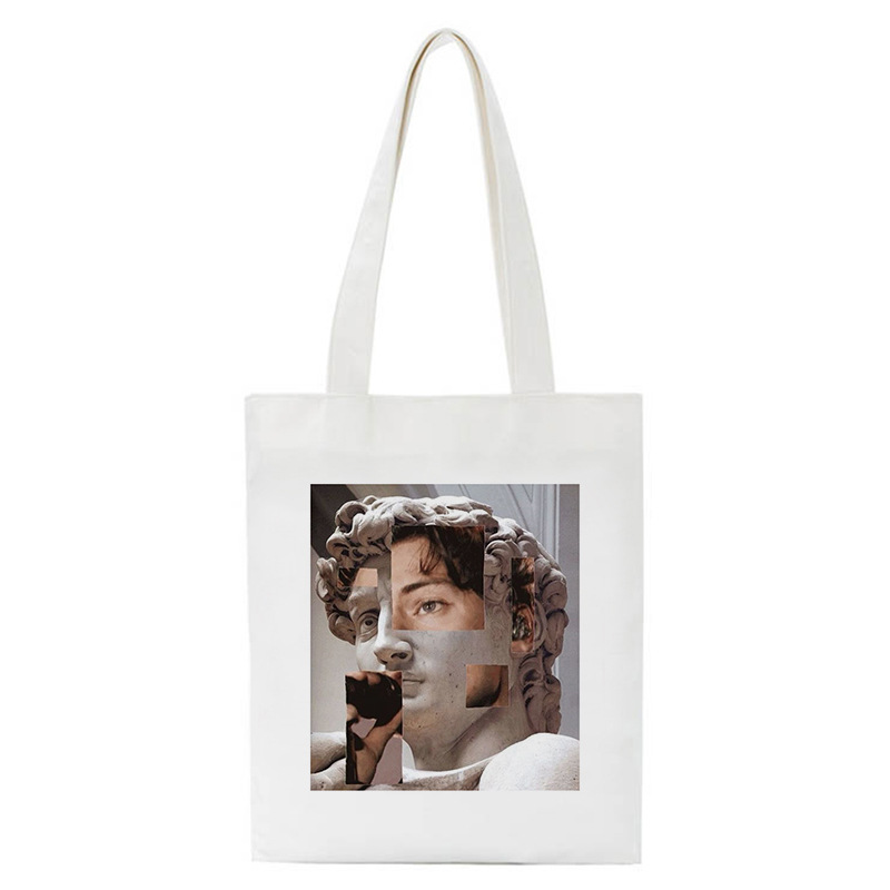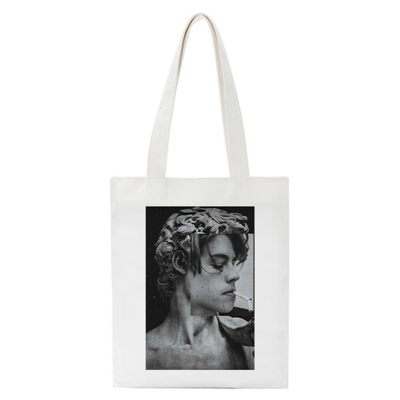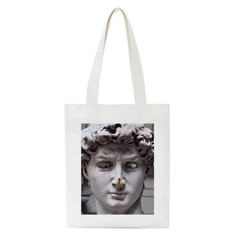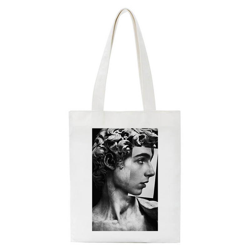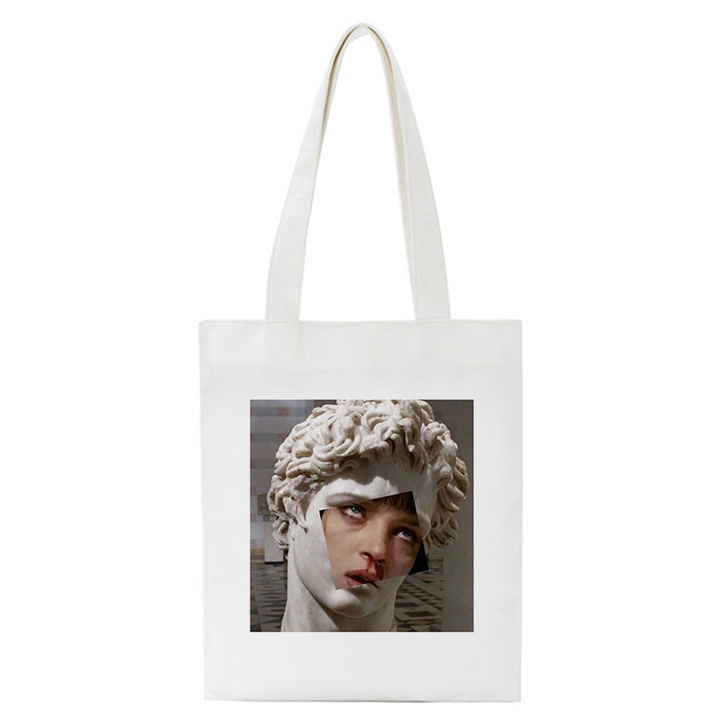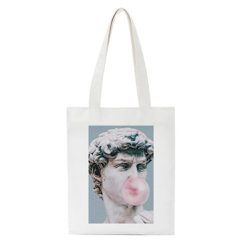 购物袋蒙娜丽莎玛丽亚梦露唯美印花动漫ins新款秋冬手提单肩帆布