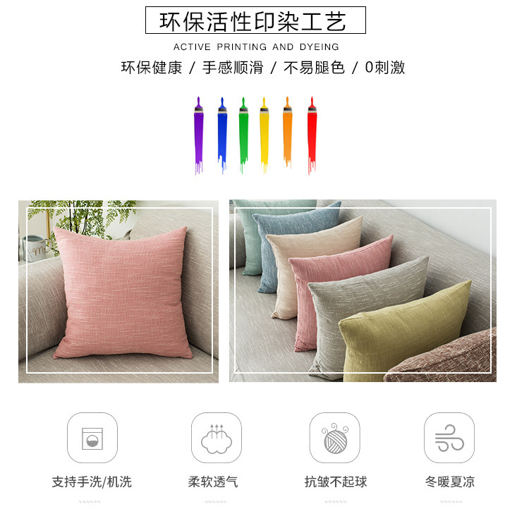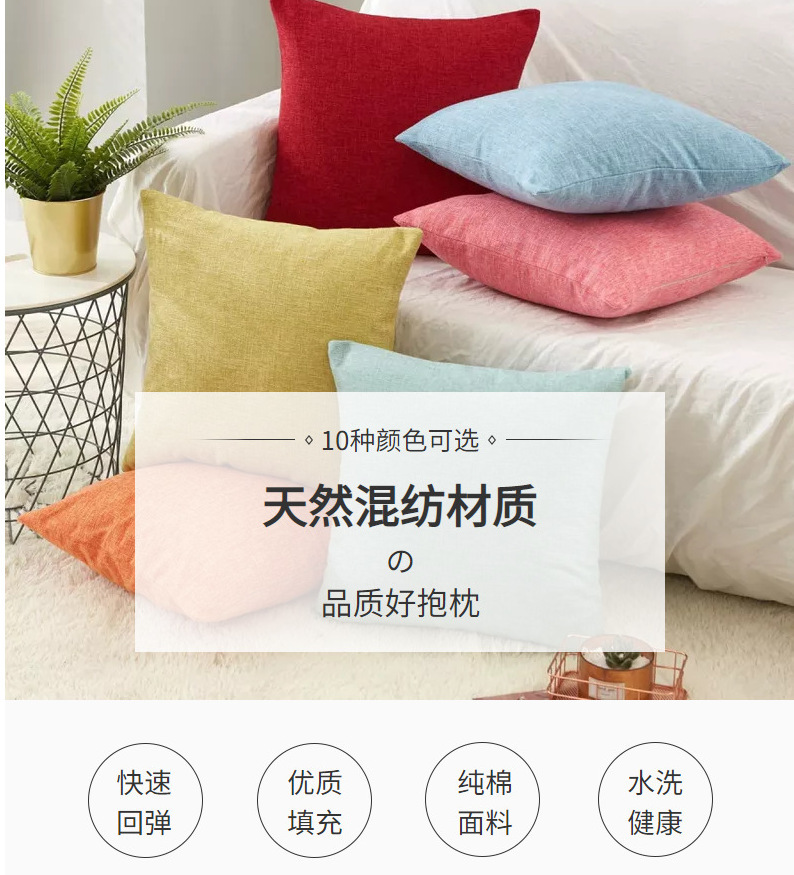 新款现代简约北欧纯色亚麻靠垫居家用品客厅沙发装饰可拆洗抱枕套