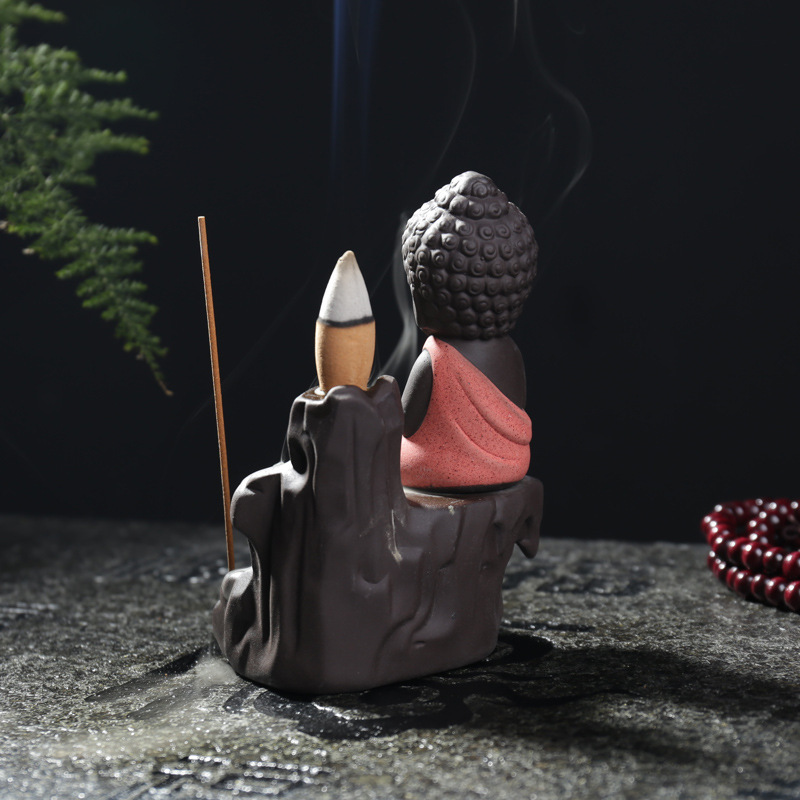 倒流香炉创意紫砂小和尚高山流水插香线熏炉陶瓷香道家居办公摆件