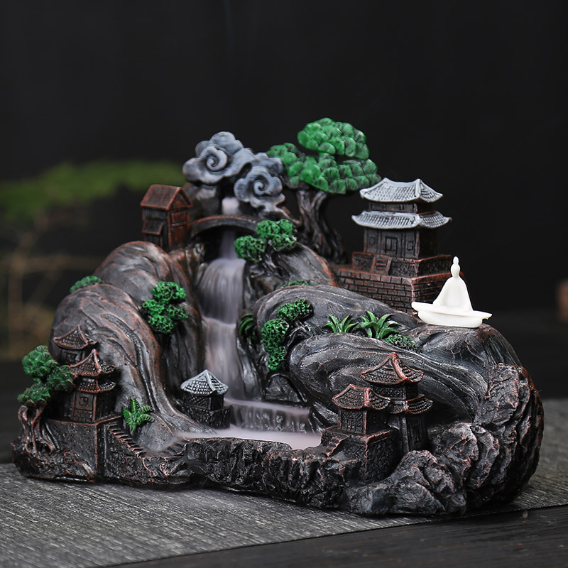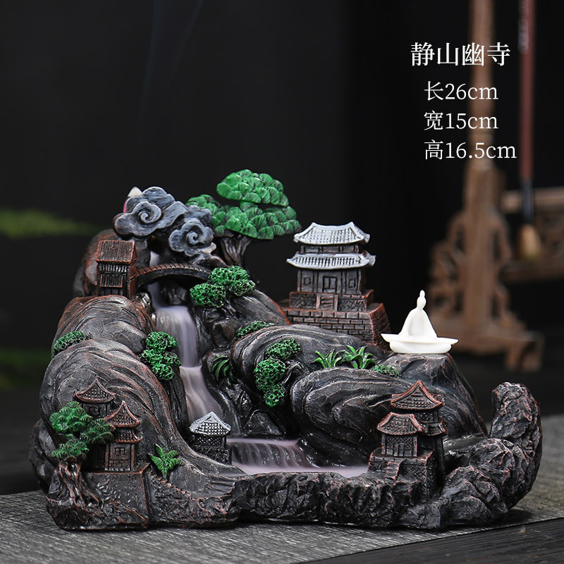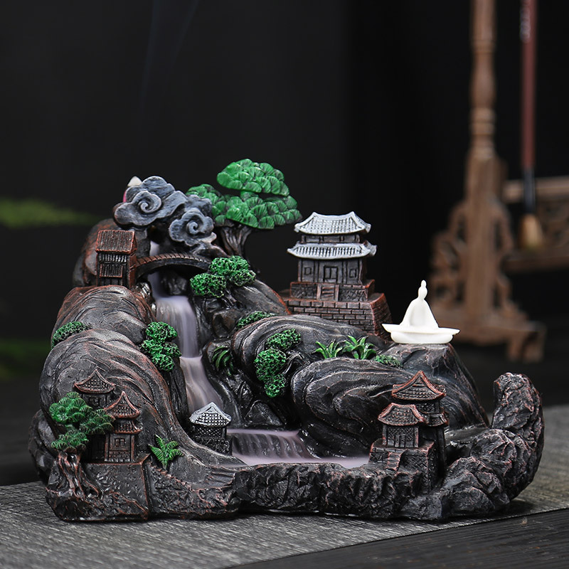 跨境树脂倒流香炉高山流水创意香薰炉流云烟观赏摆件厂家直供批发