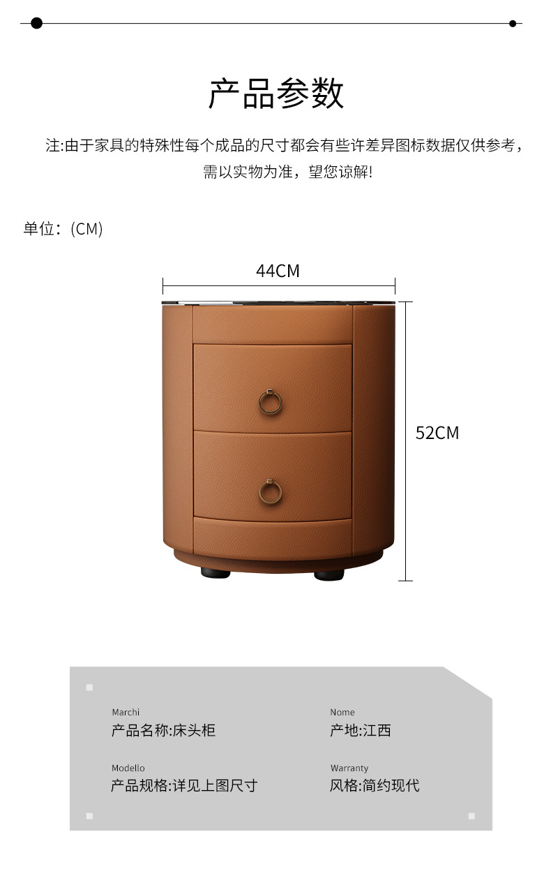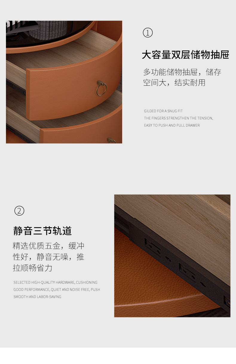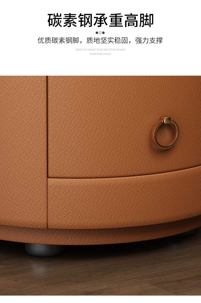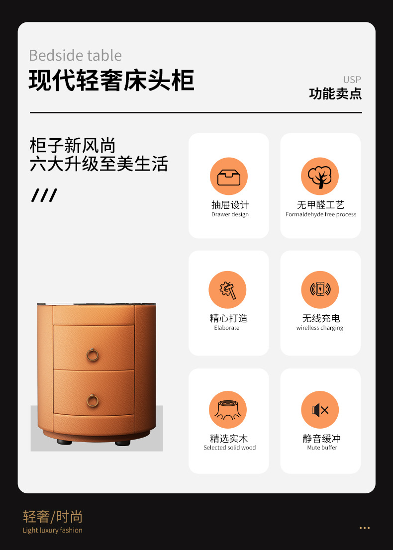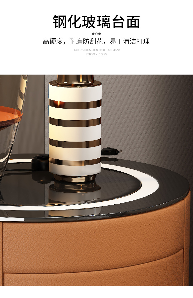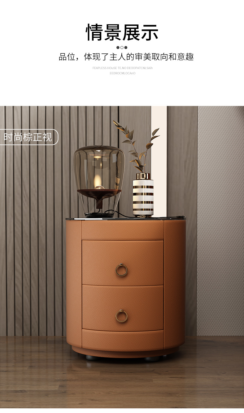 现代智能床头柜简约迷你小型充电岩板卧室灰色圆形实木轻奢床边柜