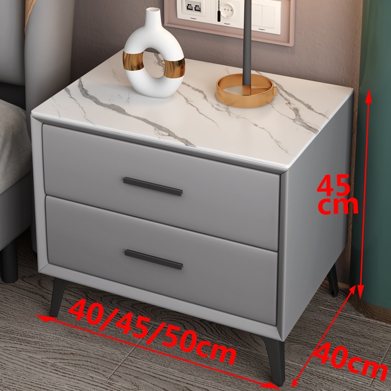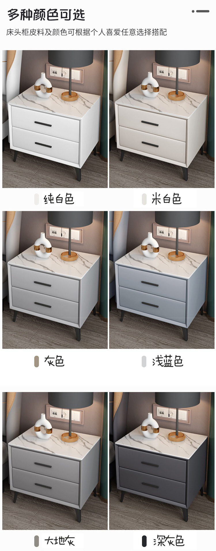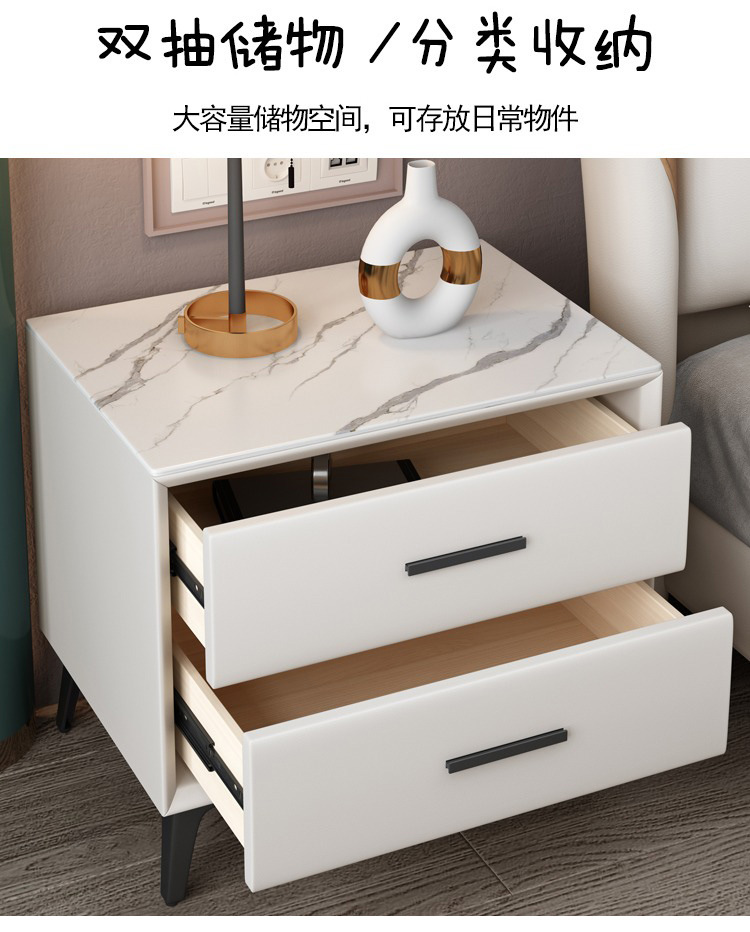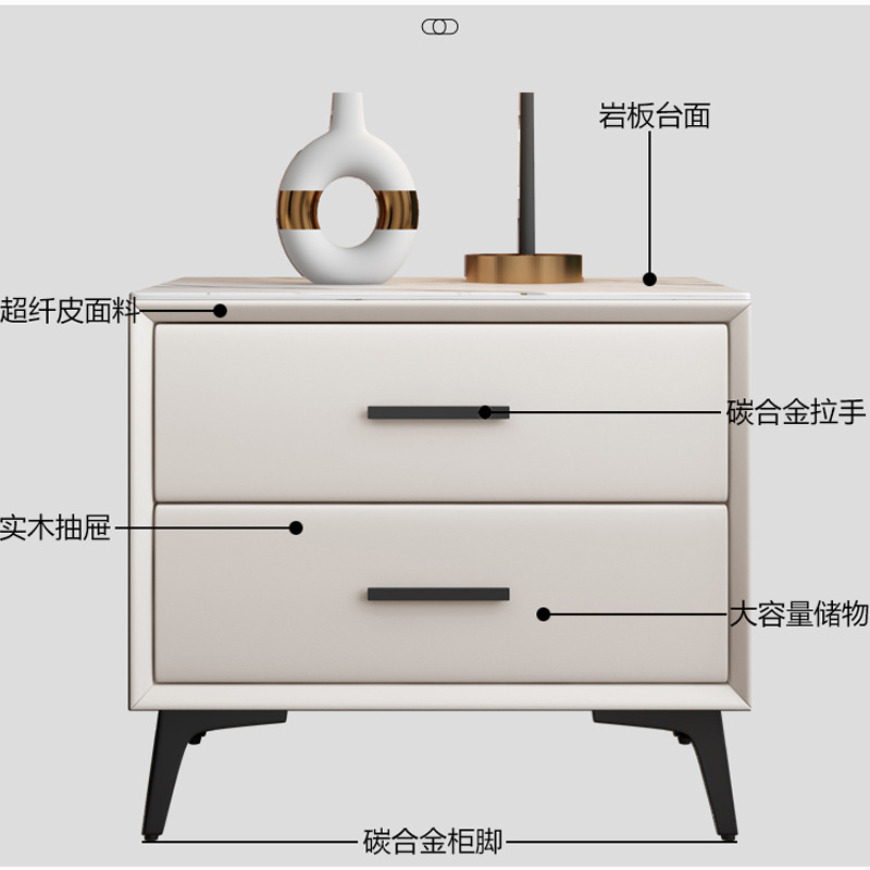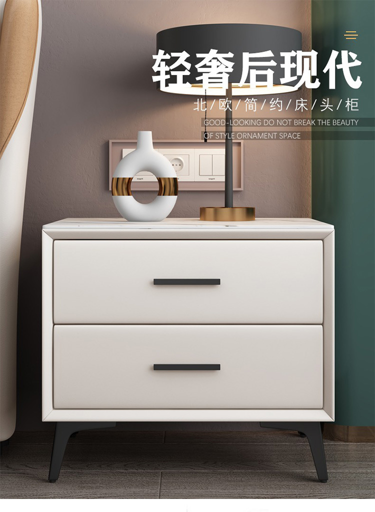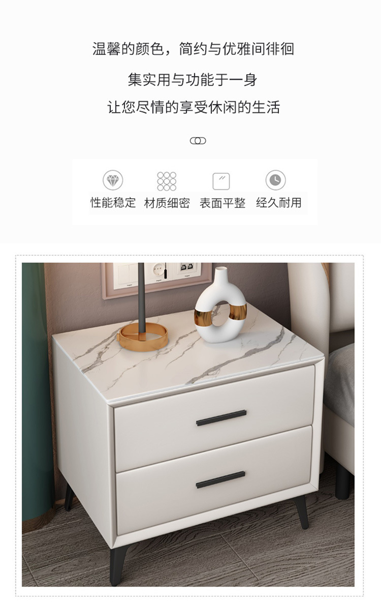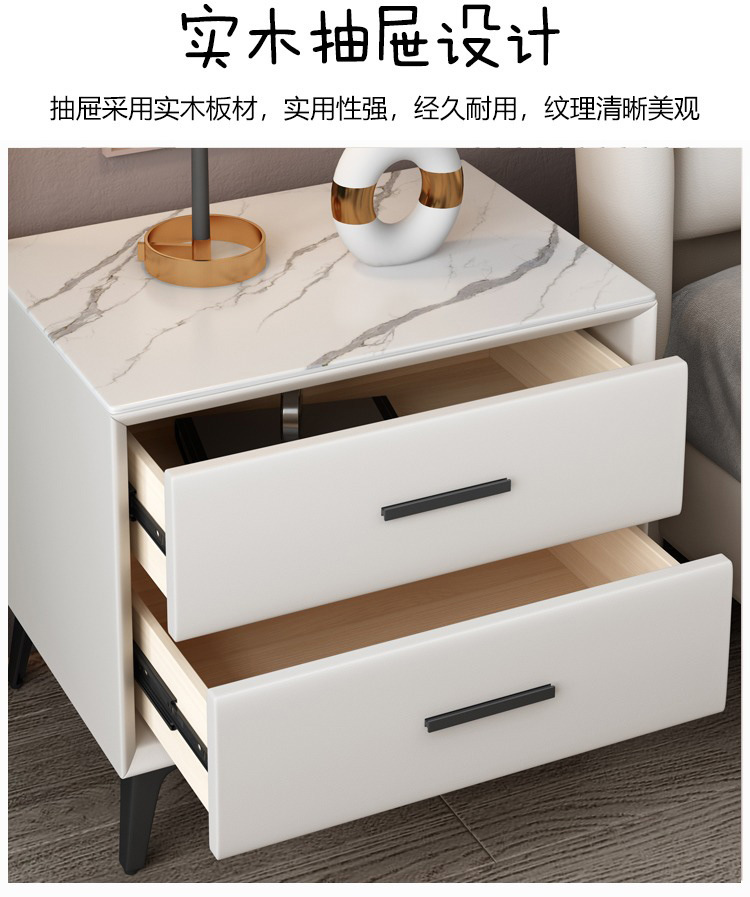床头柜简约现代小户卧室轻奢皮质两抽岩板柜