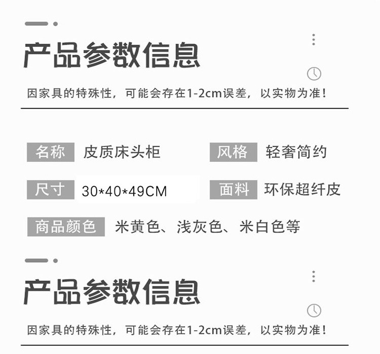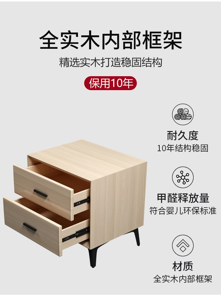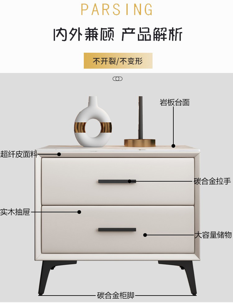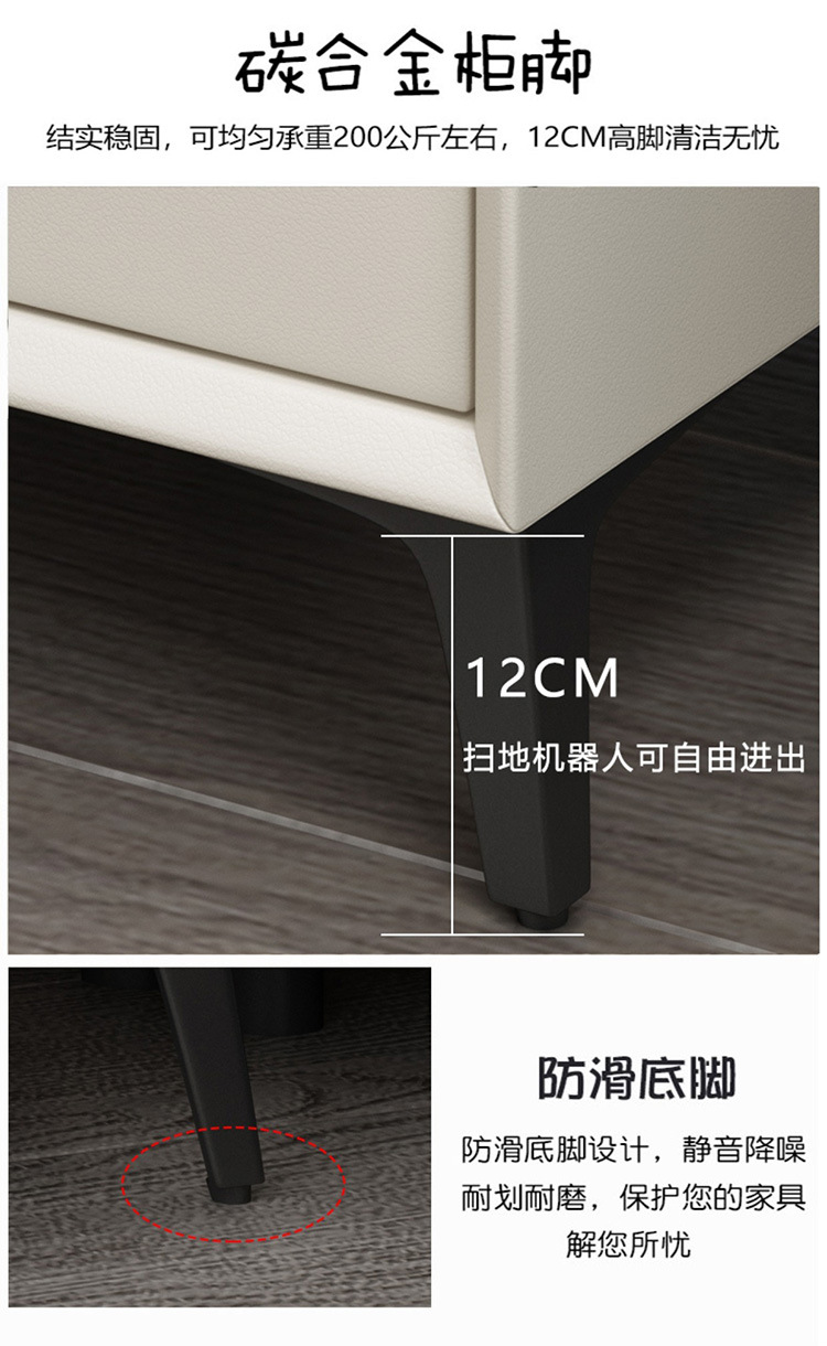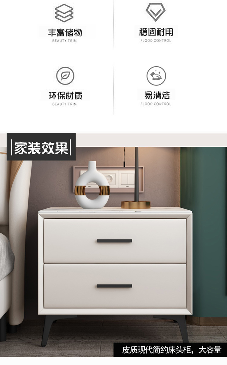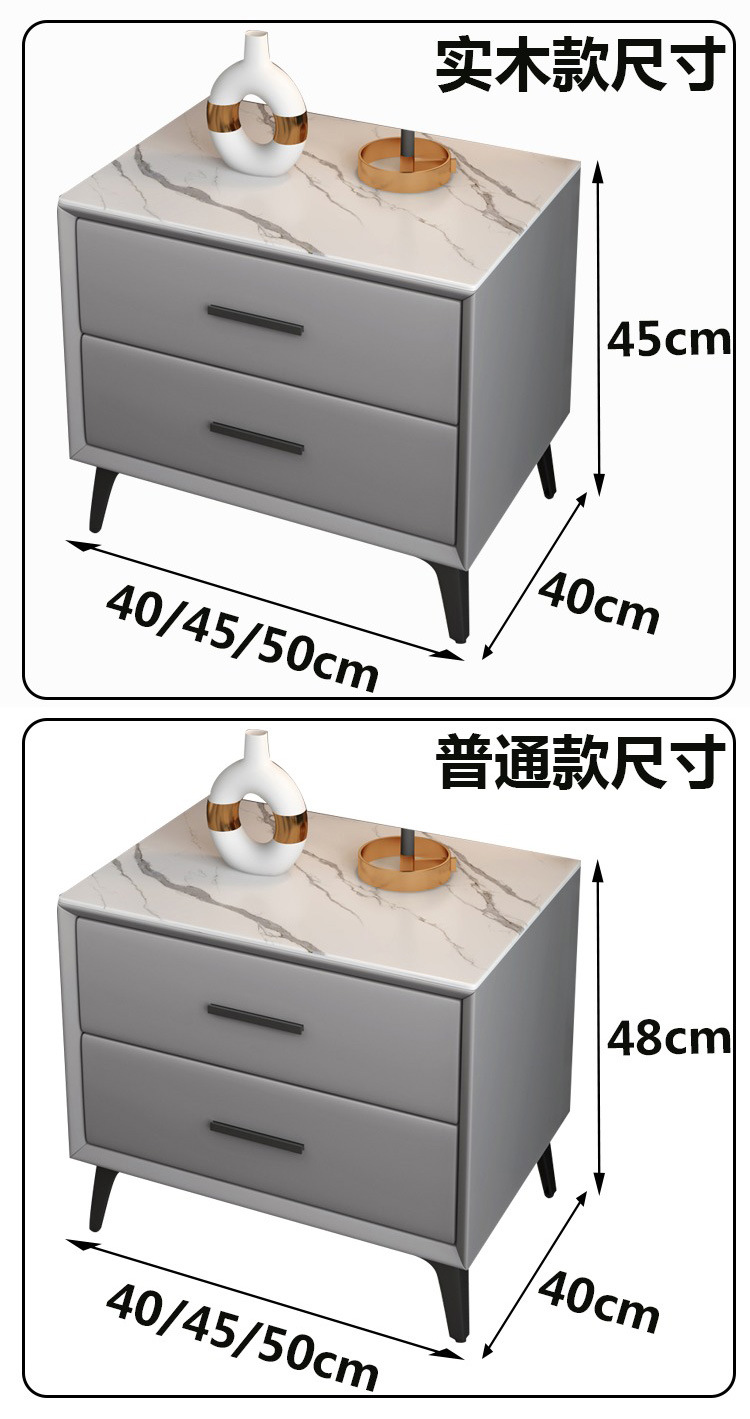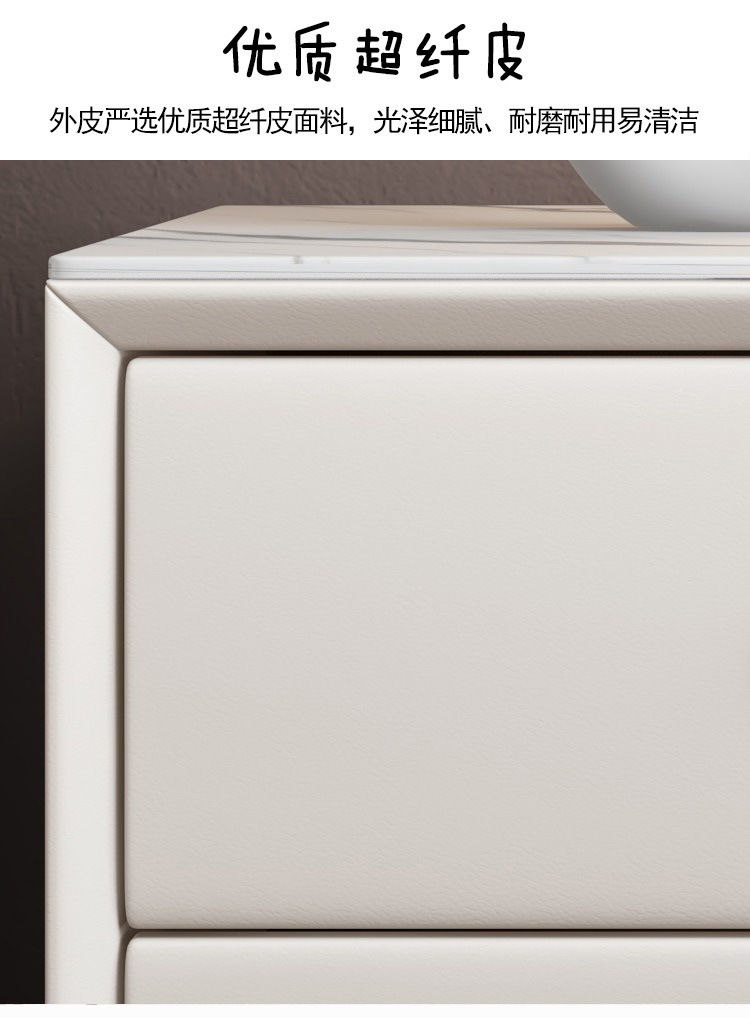 床头柜简约现代小户卧室轻奢皮质两抽岩板柜