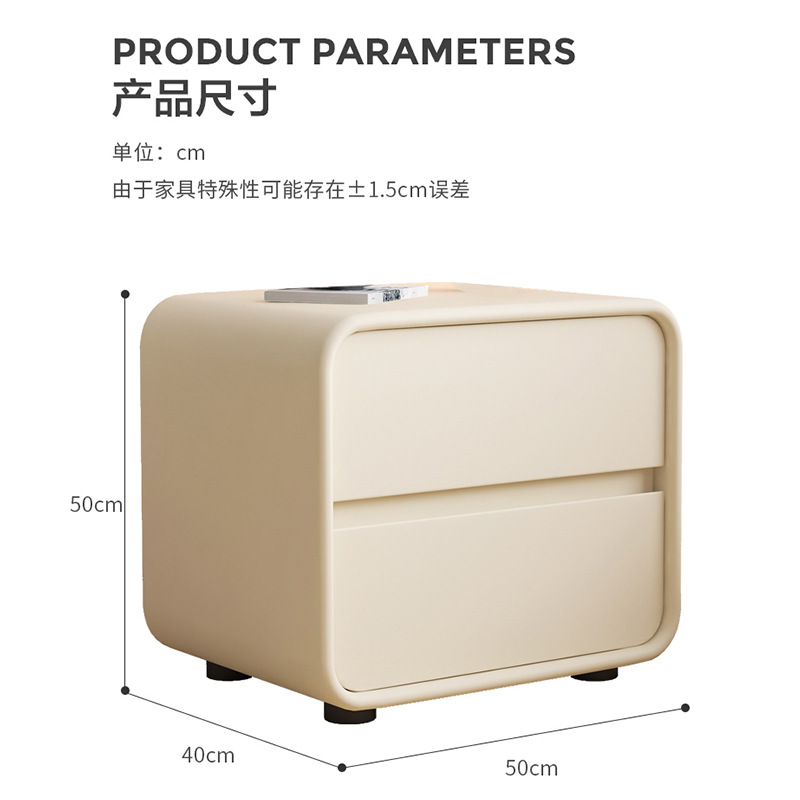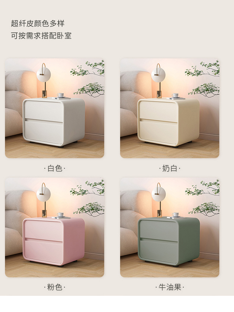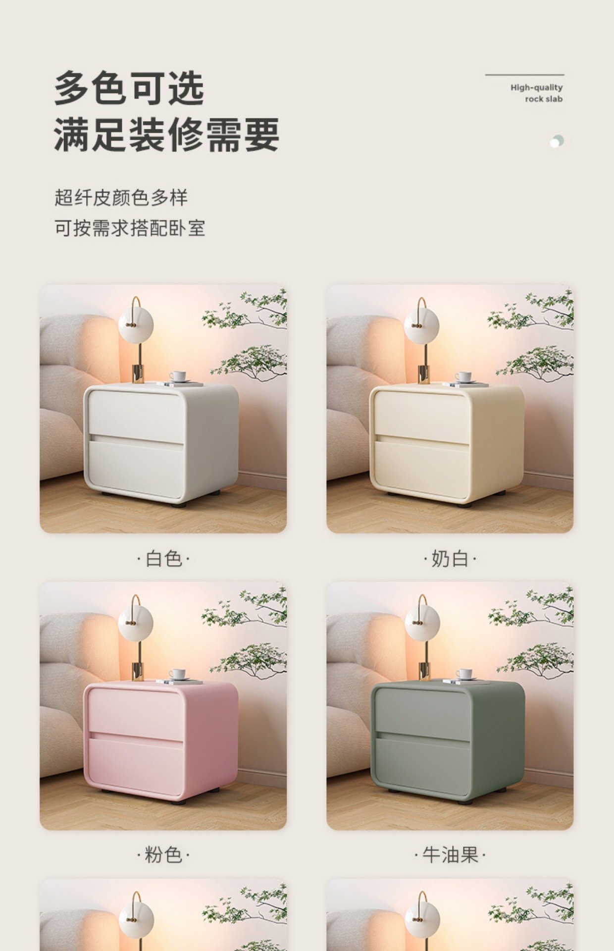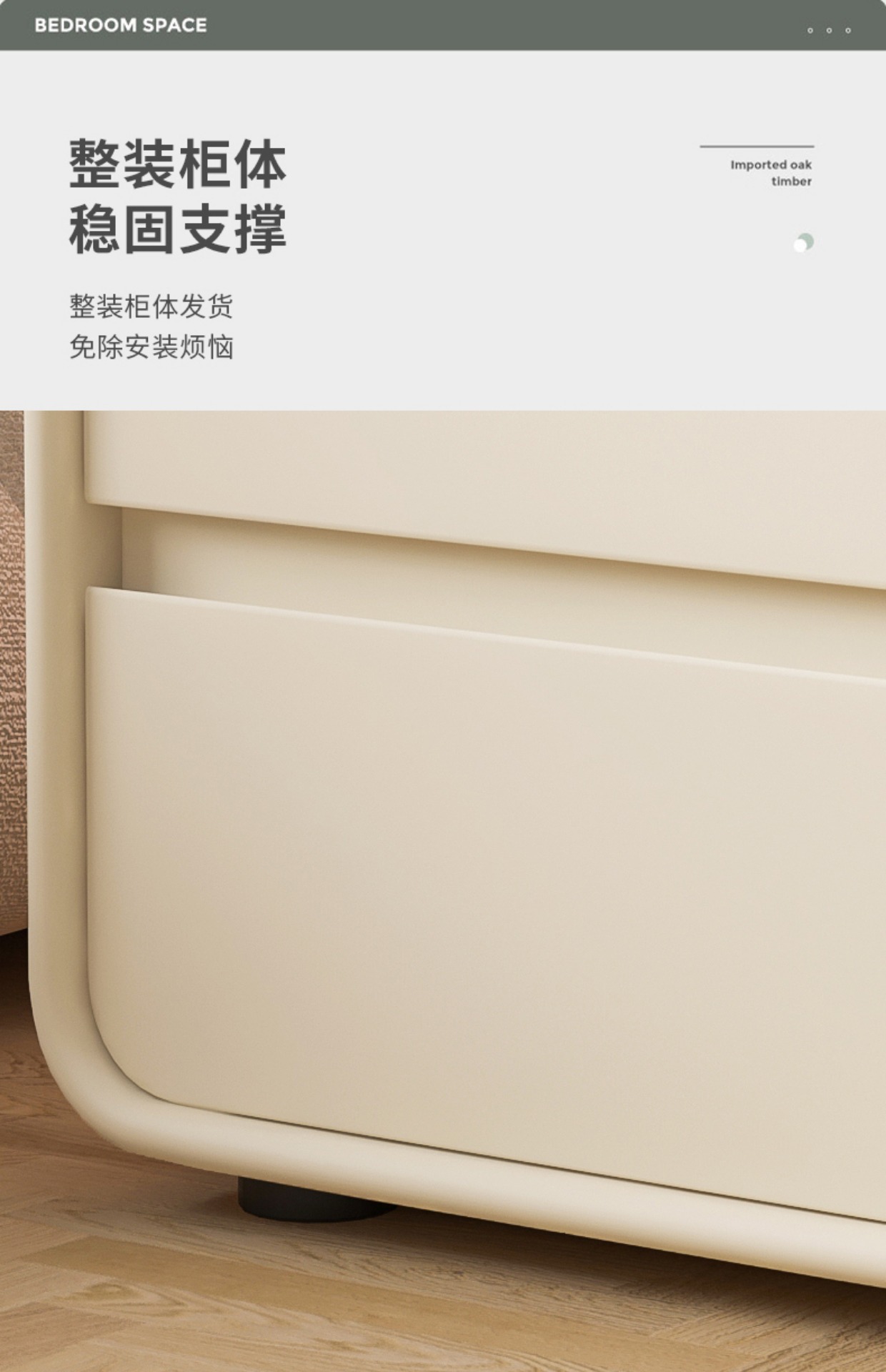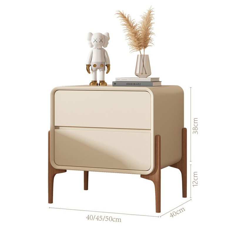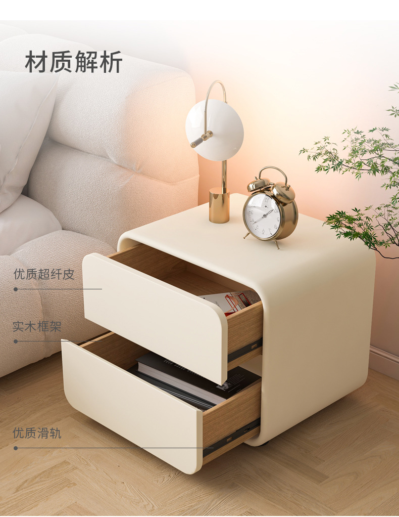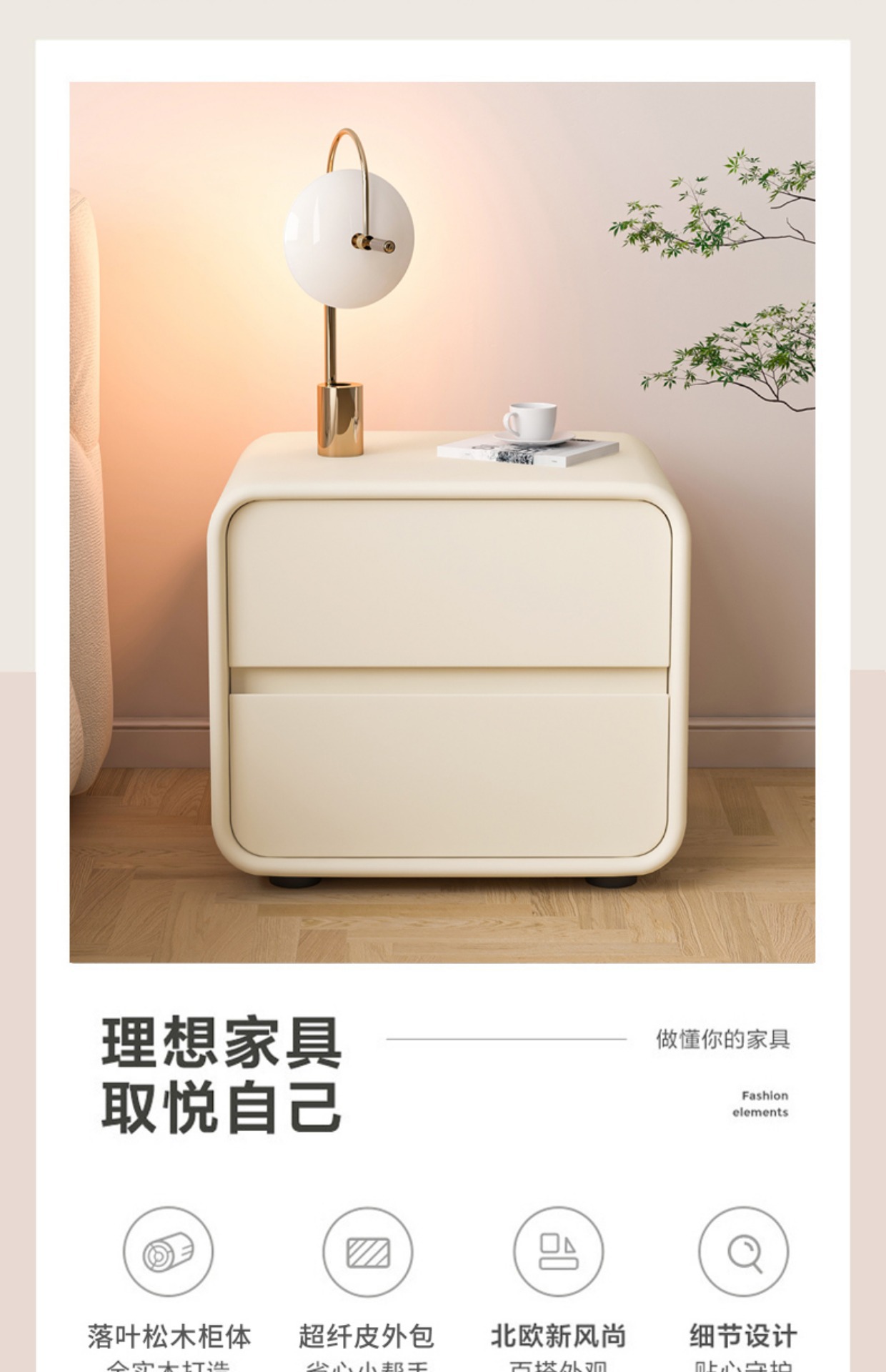 简约现代实木皮质床头柜创意轻奢奶油风卧室床边柜意式极简收纳柜