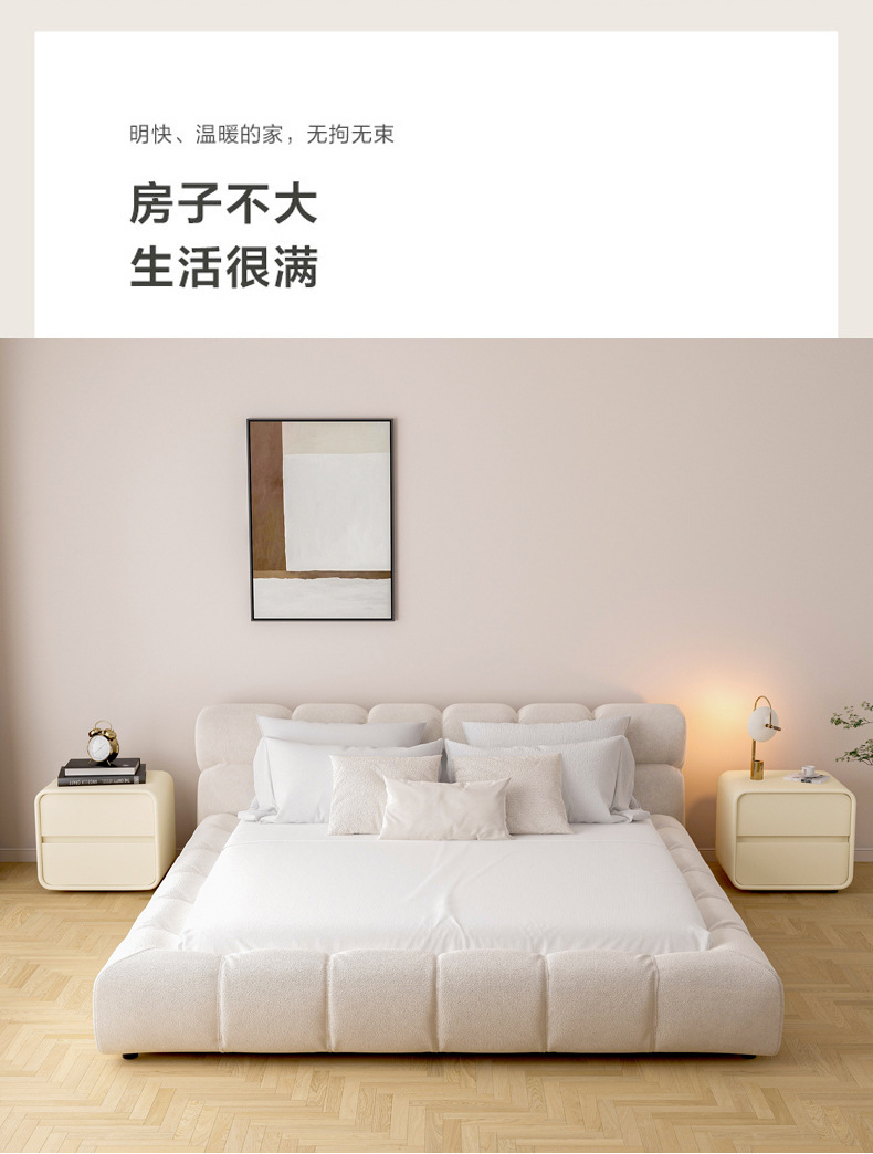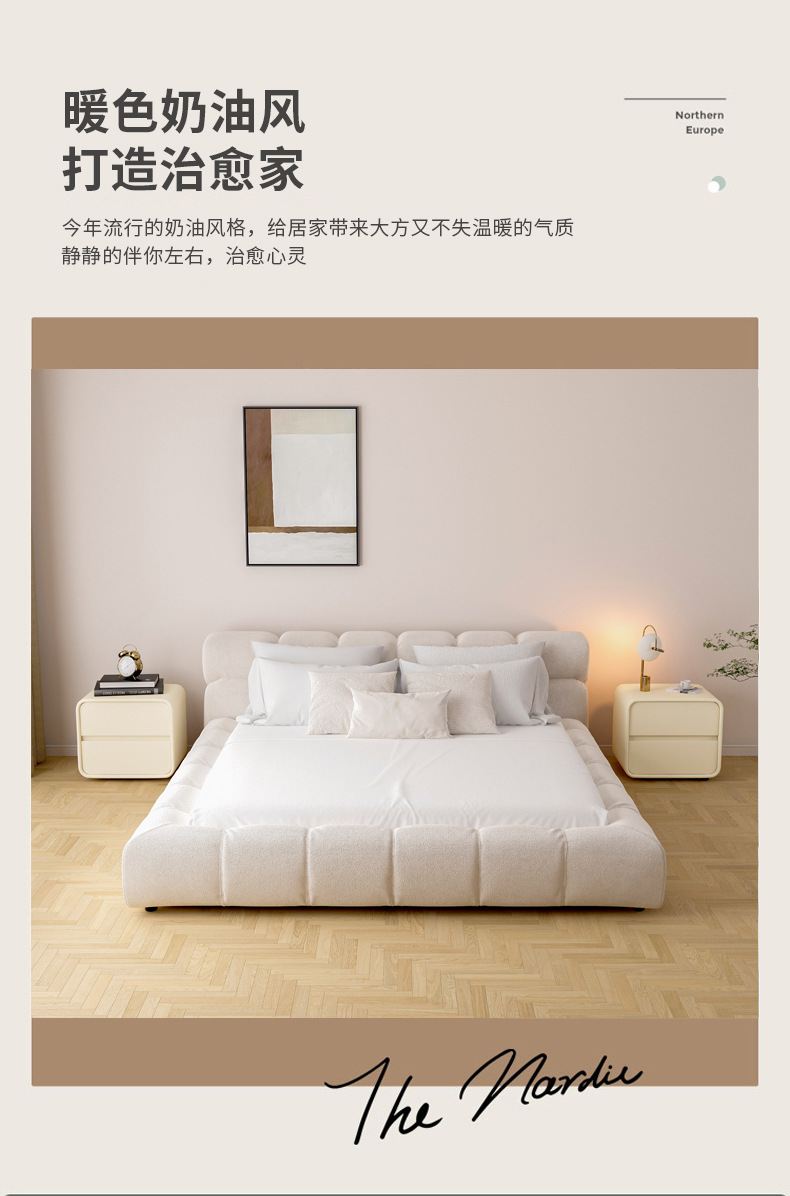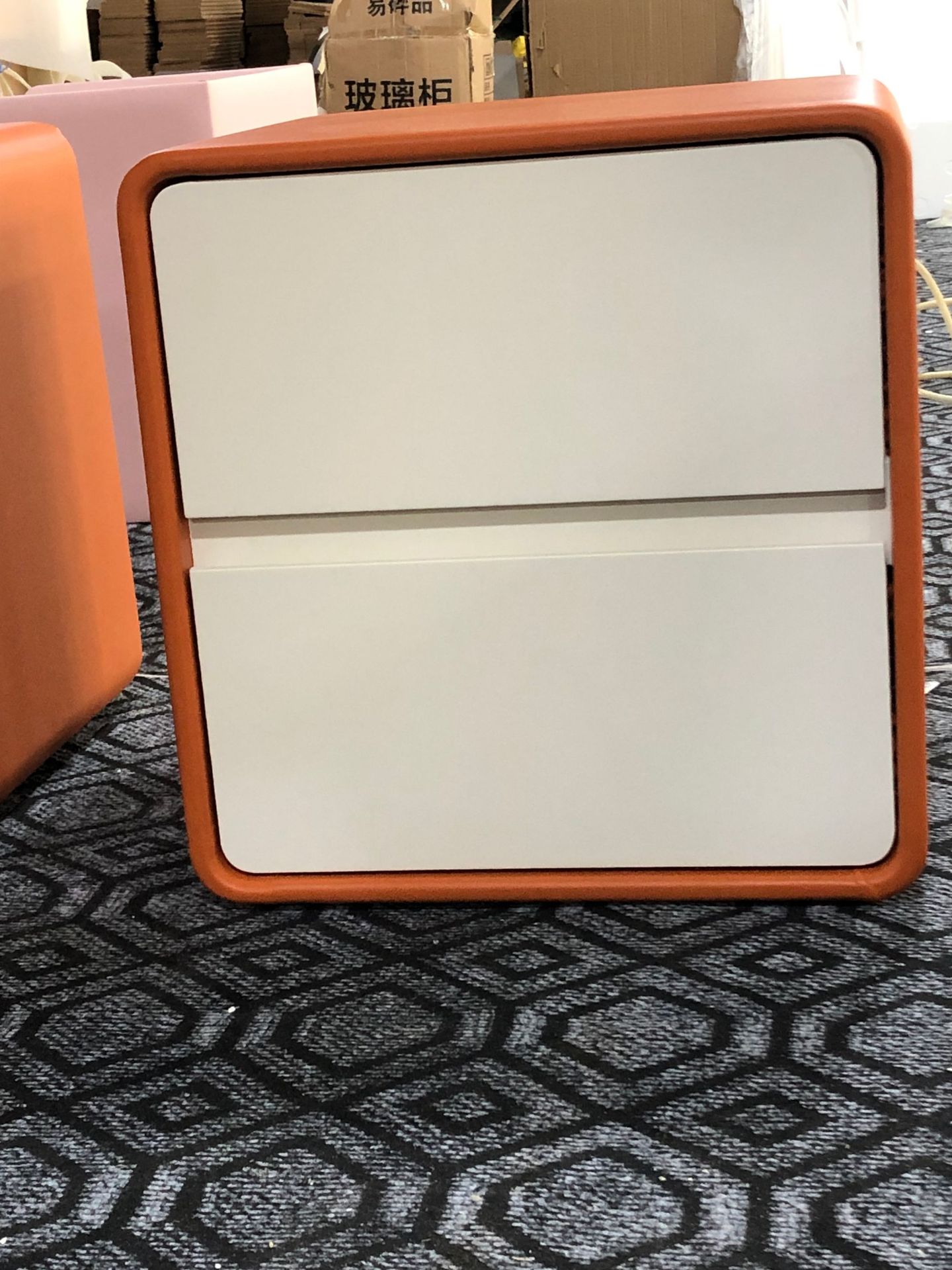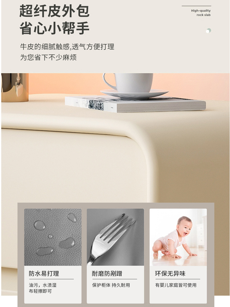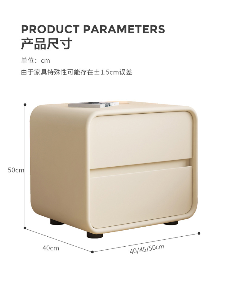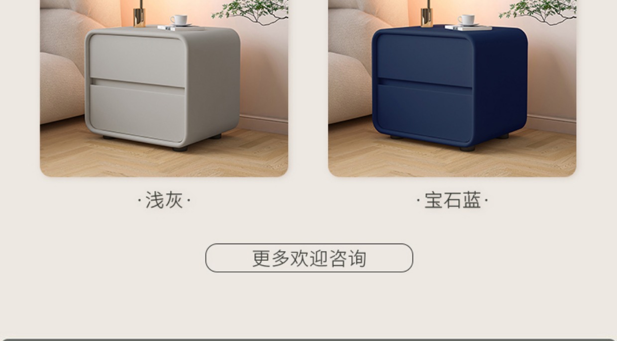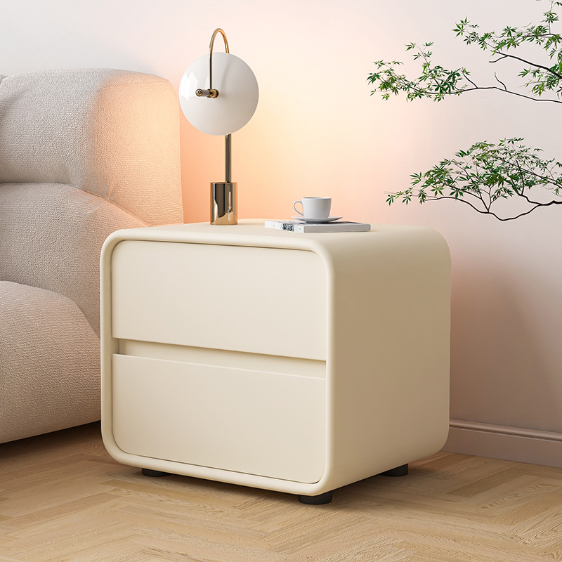简约现代实木皮质床头柜创意轻奢奶油风卧室床边柜意式极简收纳柜