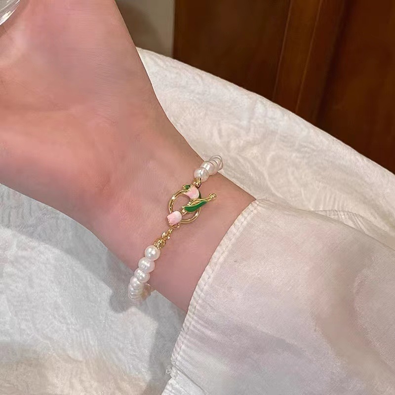 超仙珍珠郁金香手链韩国法式冷淡风个性简约百搭气质时尚手镯