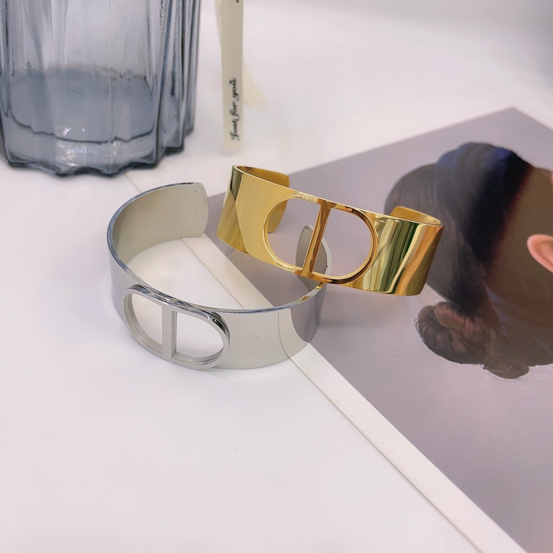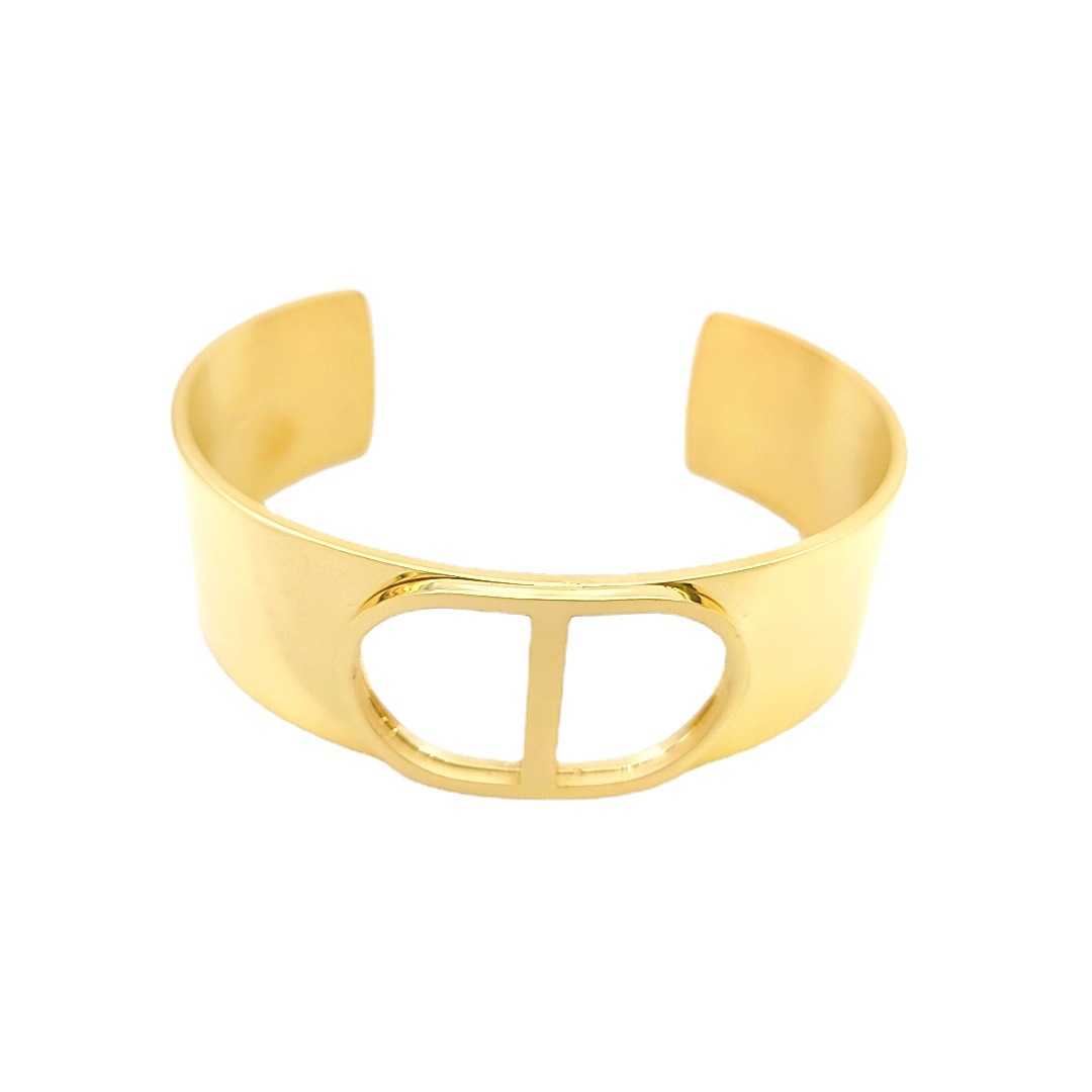 工厂直销韩版钛钢手镯 欧美时尚个性18K宽面C形开口手镯 可调大小