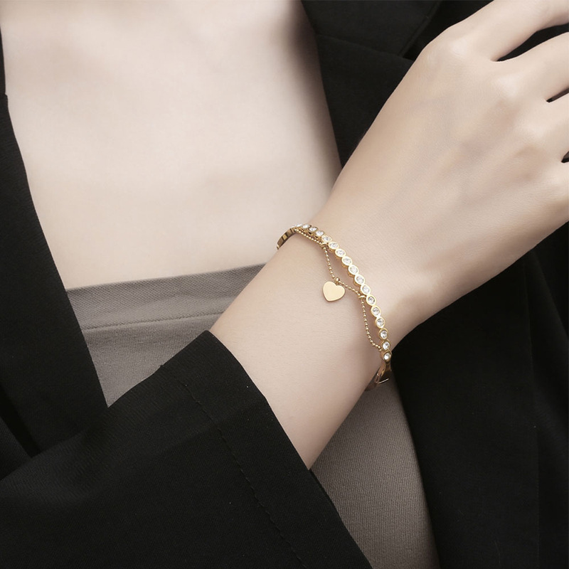 IMI钛钢甜美金色链条镶钻手镯手链女ins小众设计手环YL438