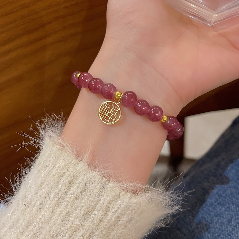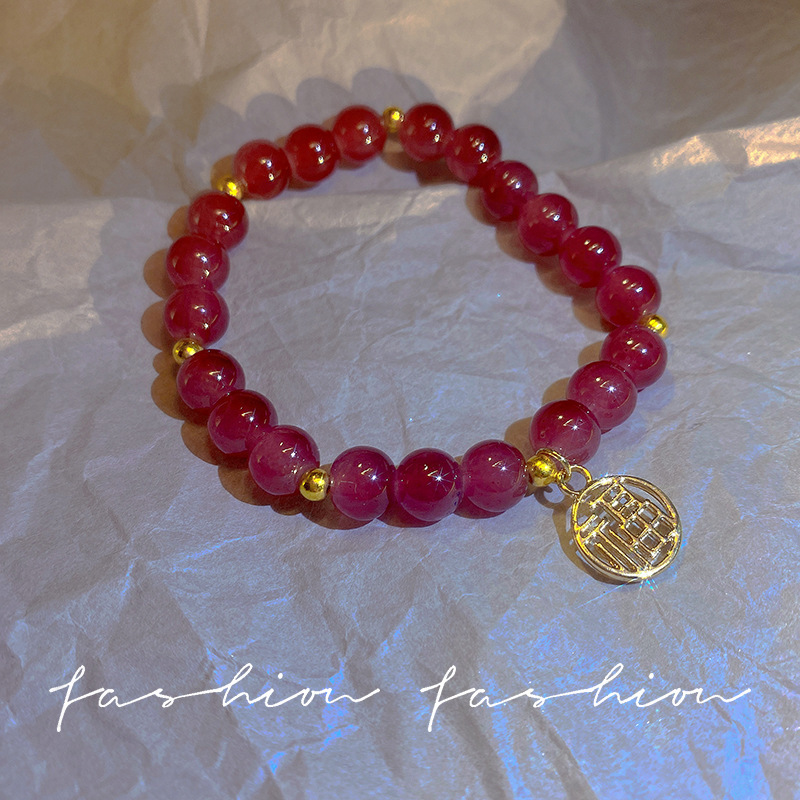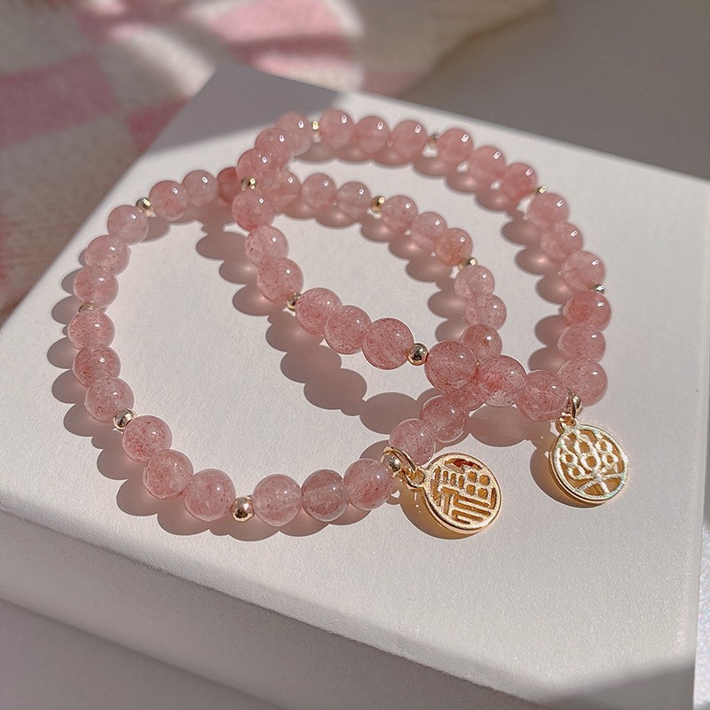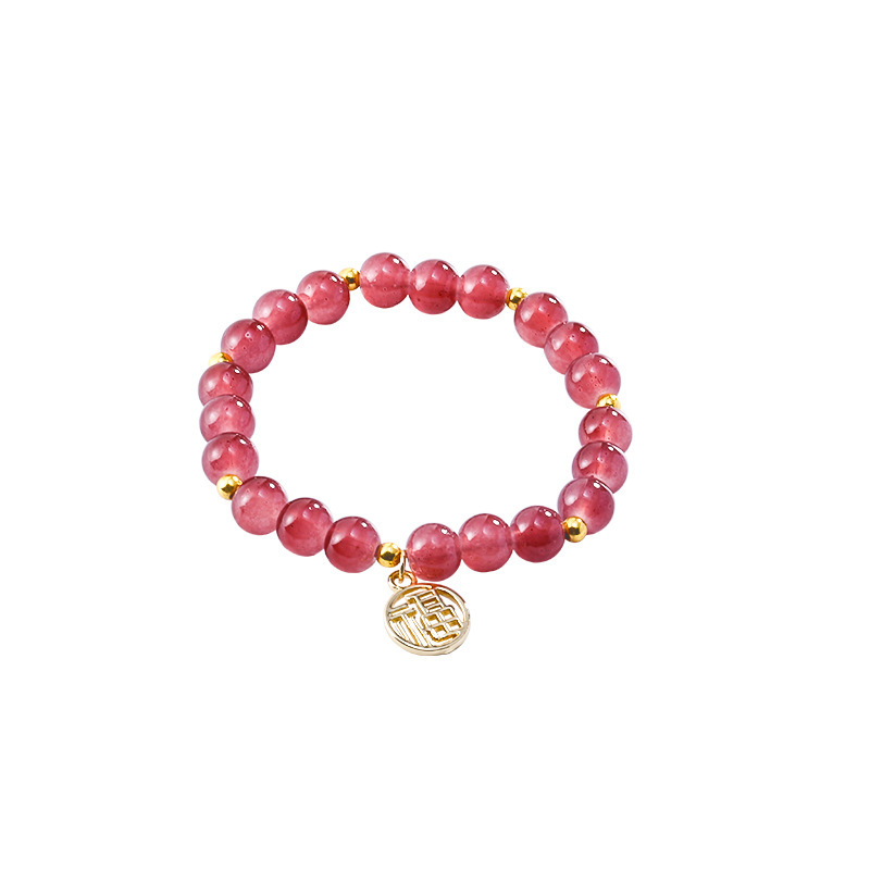 草莓晶手链ins小众设计福字情侣手串高级感手饰闺蜜水晶手镯女夏