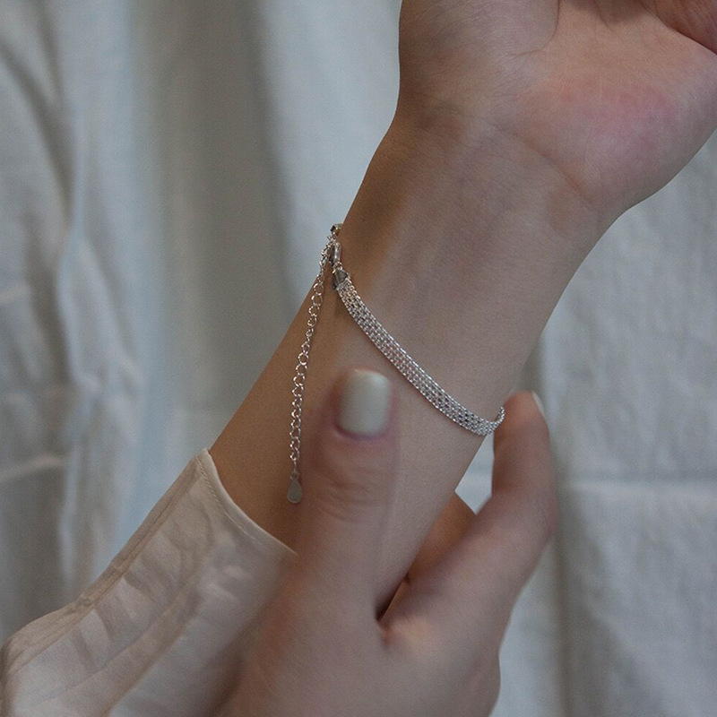 S925纯银闪光素链波光粼粼手链女小众设计叠戴宽手链轻奢闺蜜手饰