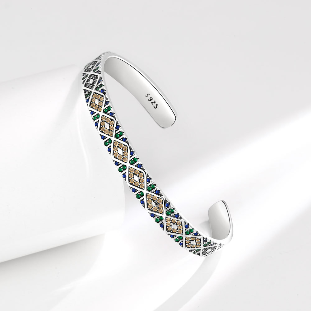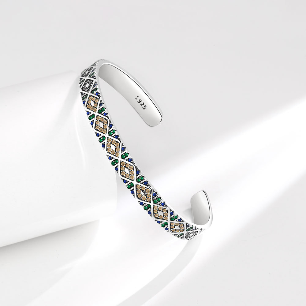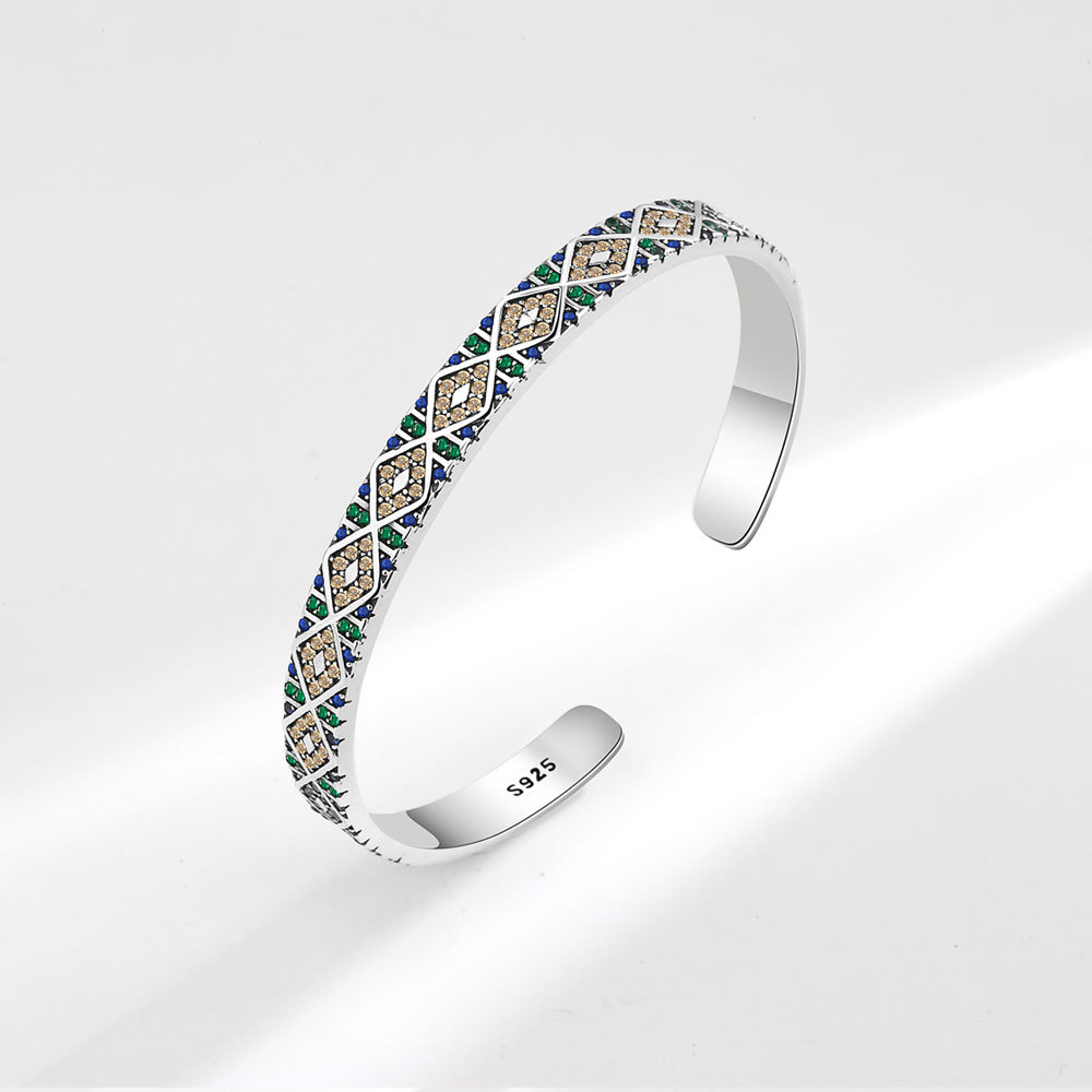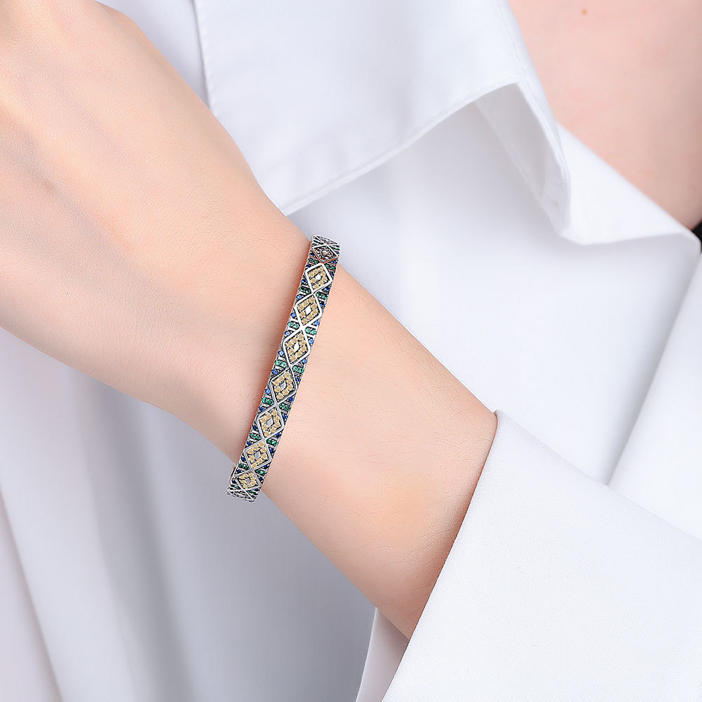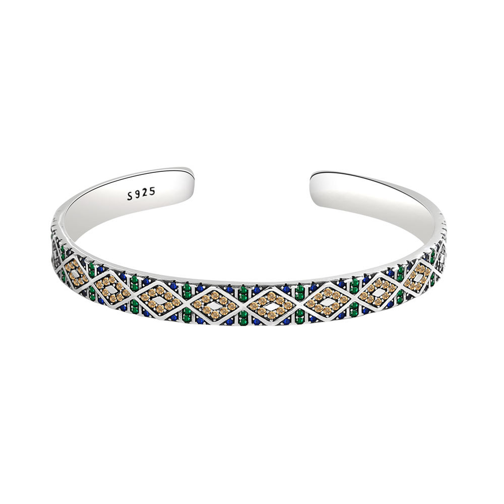 s925纯银恶魔之眼几何多彩部落元素镶钻异域风情复古重工手环手镯
