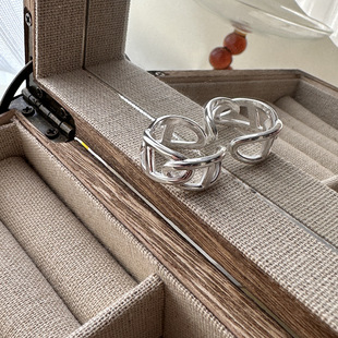 S925纯银韩版宽面重工时髦个性银手镯INS风博主时尚韩版手环批发