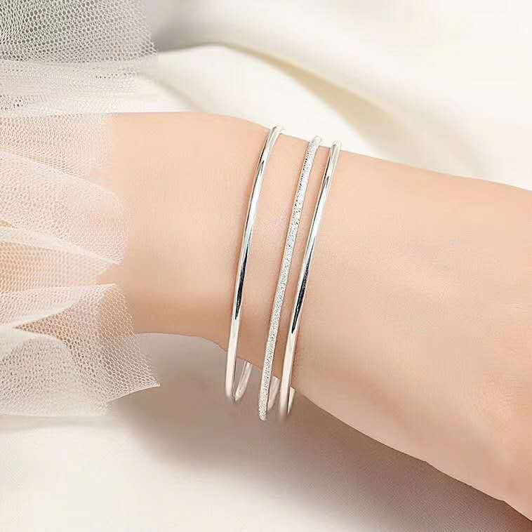 时尚百搭三生三世镀银手镯三圈磨砂手环简约三环女镯子批发