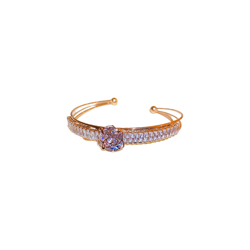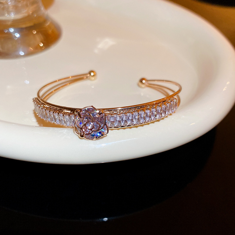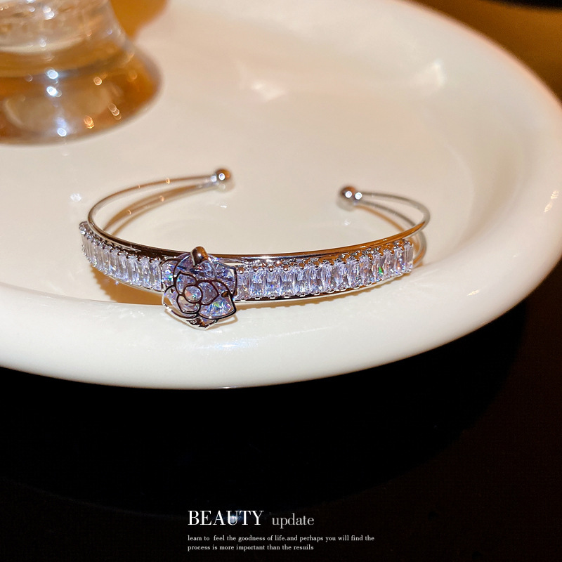 韩国轻奢锆石镂空花朵开口手镯时尚通勤百搭手环个性高级感手饰女