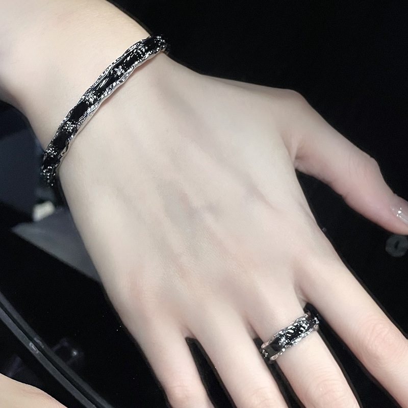 黑色开口手镯女ins小众设计轻奢暗黑锆石高级感手环珐琅法式个性