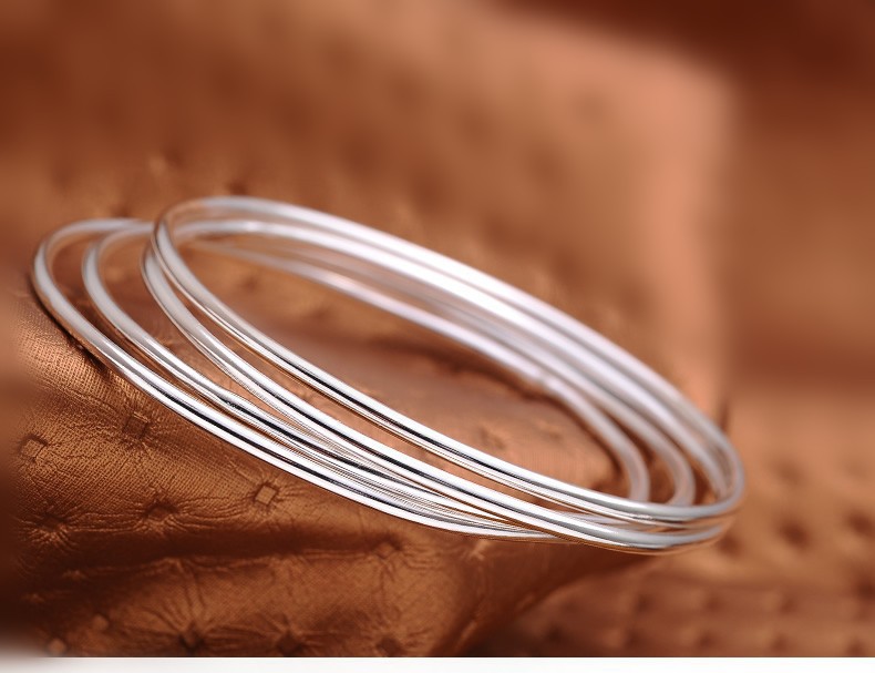 简约三生三世手镯女细手圈可组合镀银光面镯子韩国礼品银手环批发