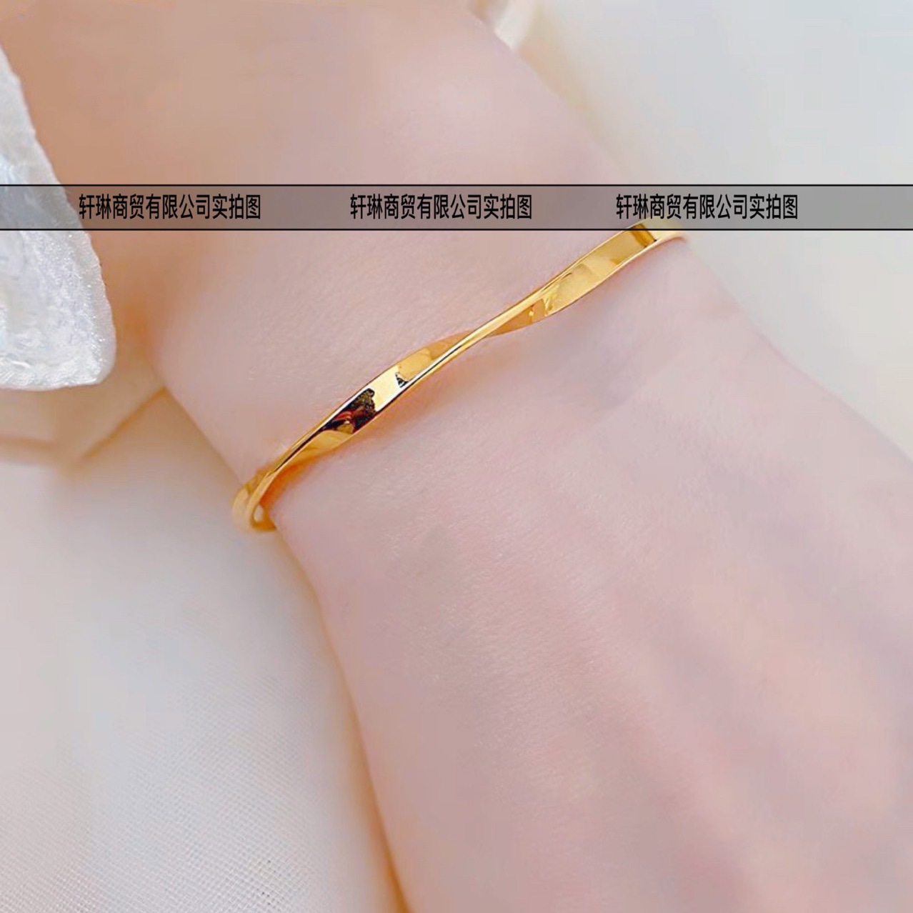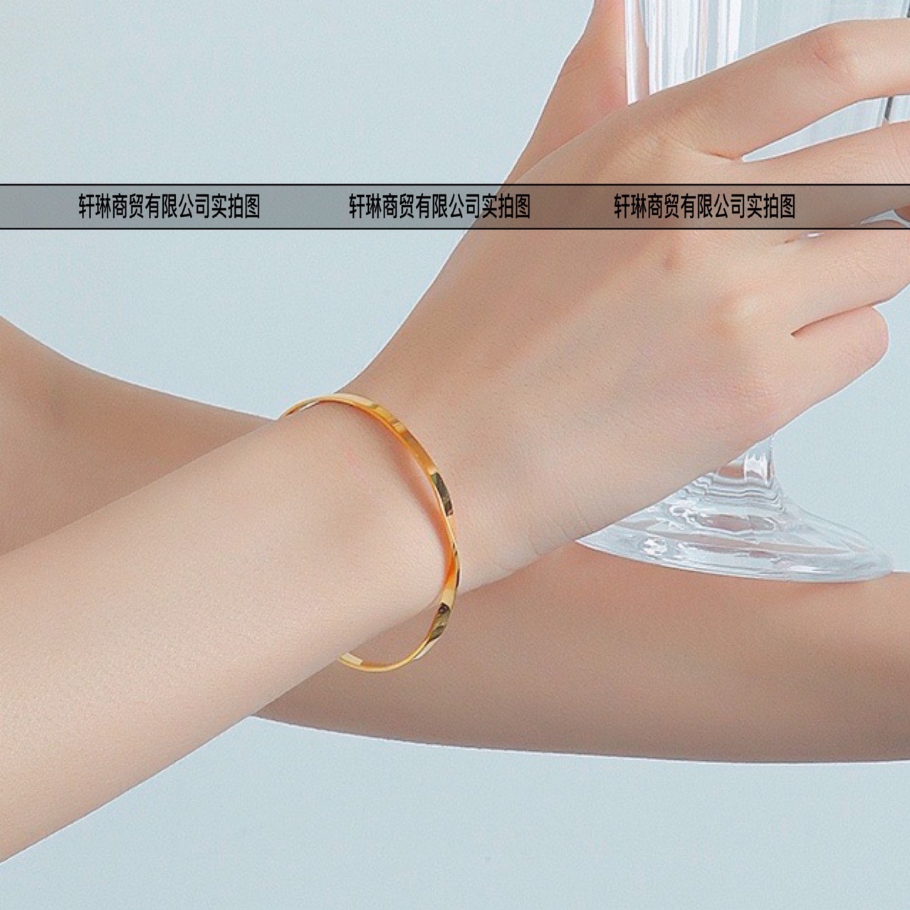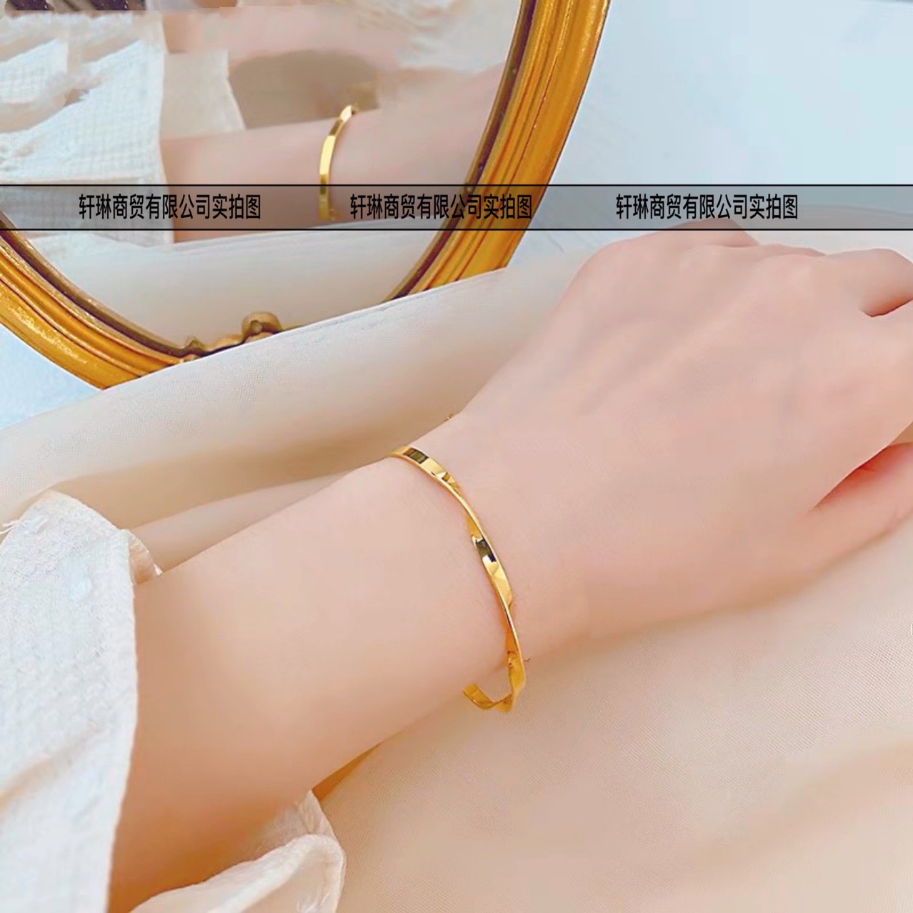钛钢保色简约百搭莫比乌斯环手镯金色纽纹开口叠带手环女显气质