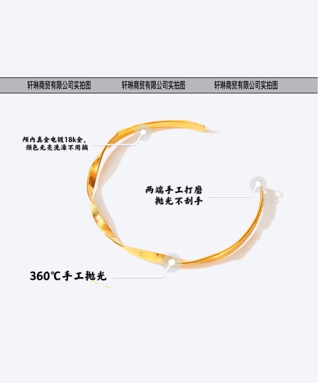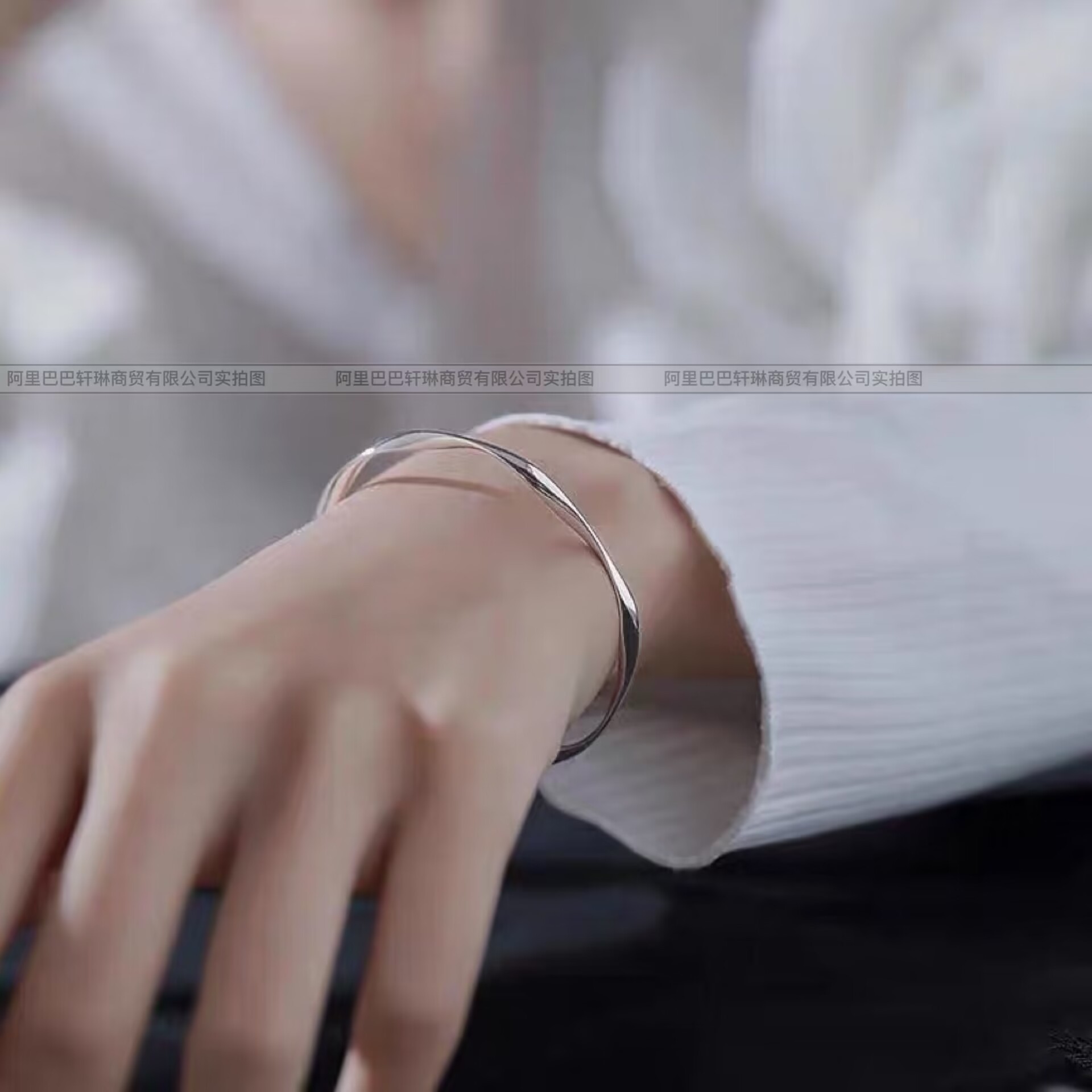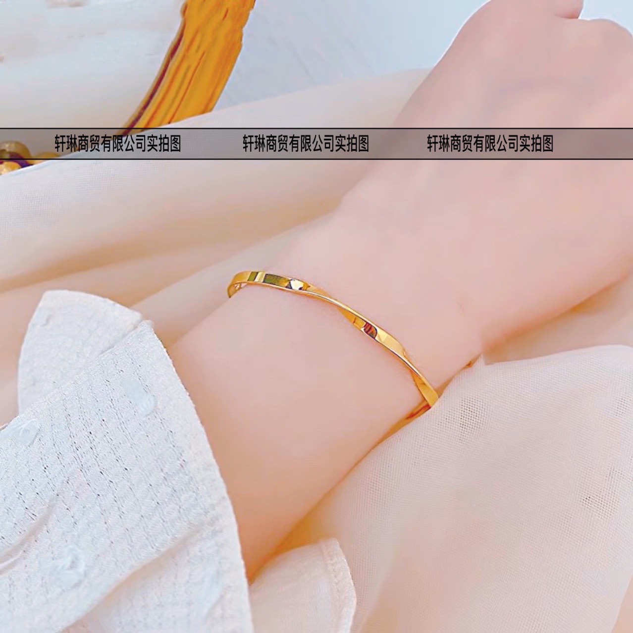 钛钢保色简约百搭莫比乌斯环手镯金色纽纹开口叠带手环女显气质