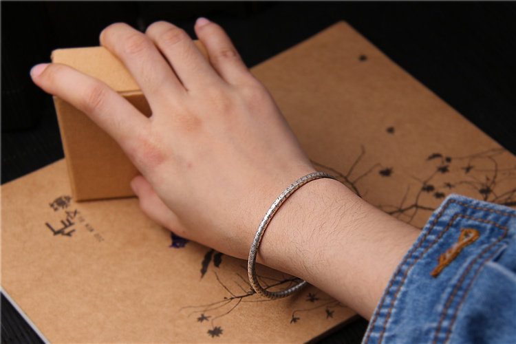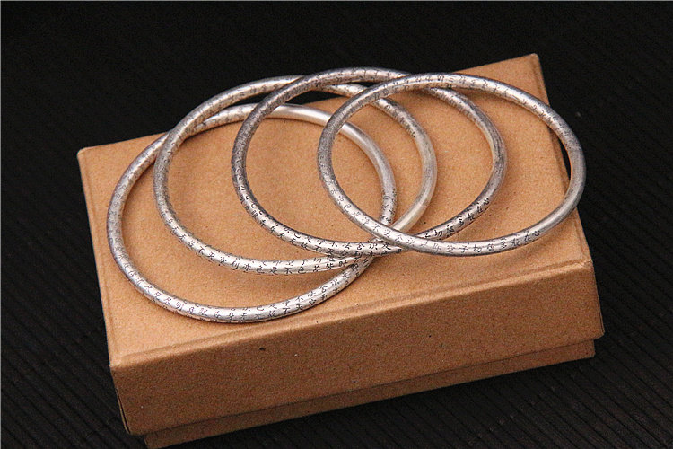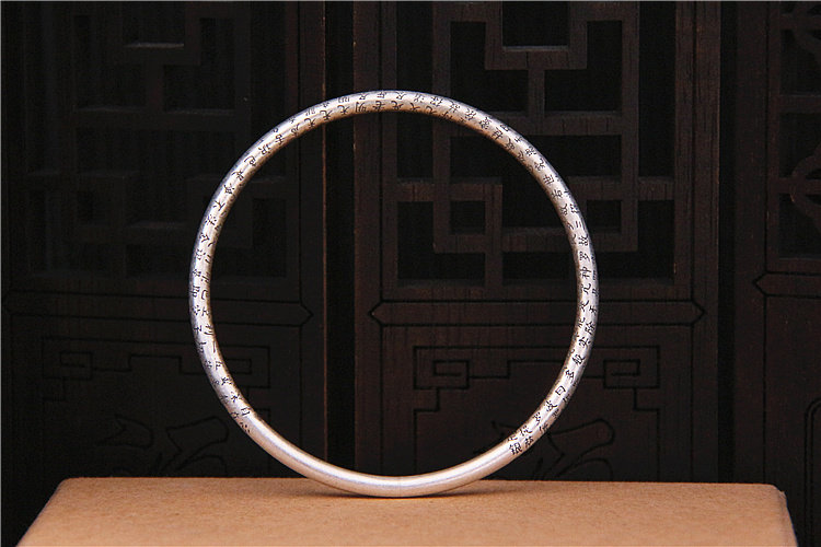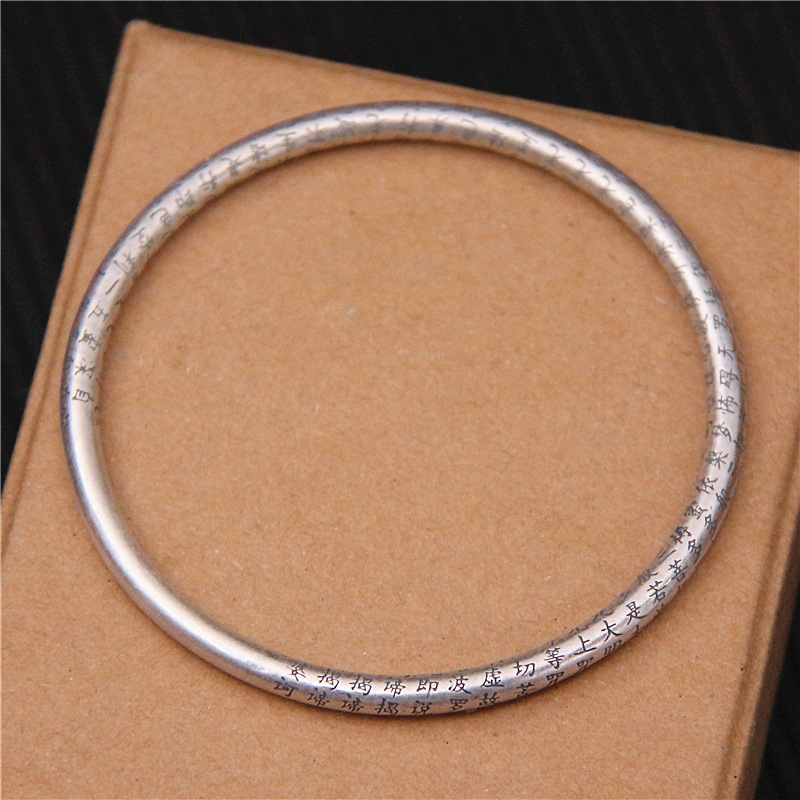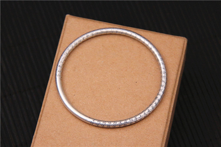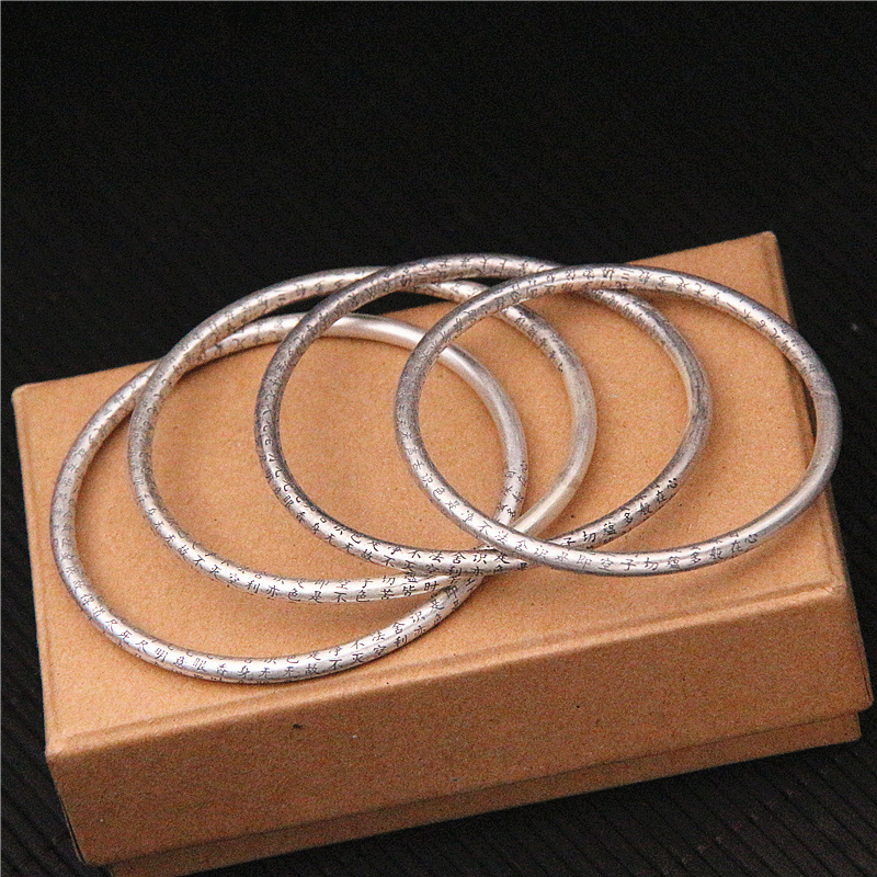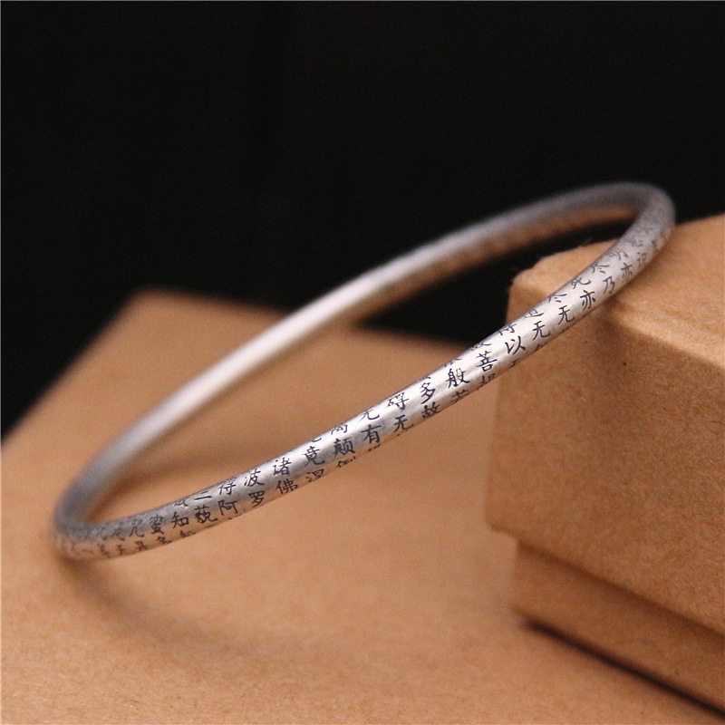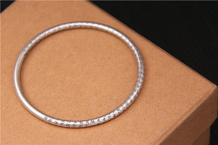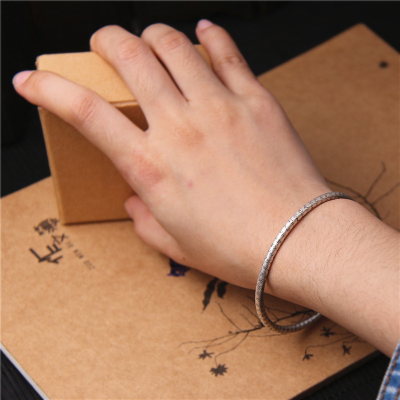 梵银饰品s999足银古法平安心经足银手镯男复古国风泰银实心手环女