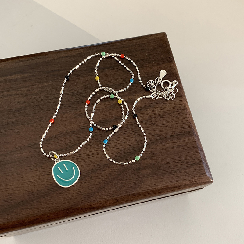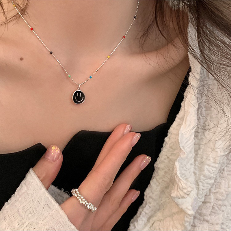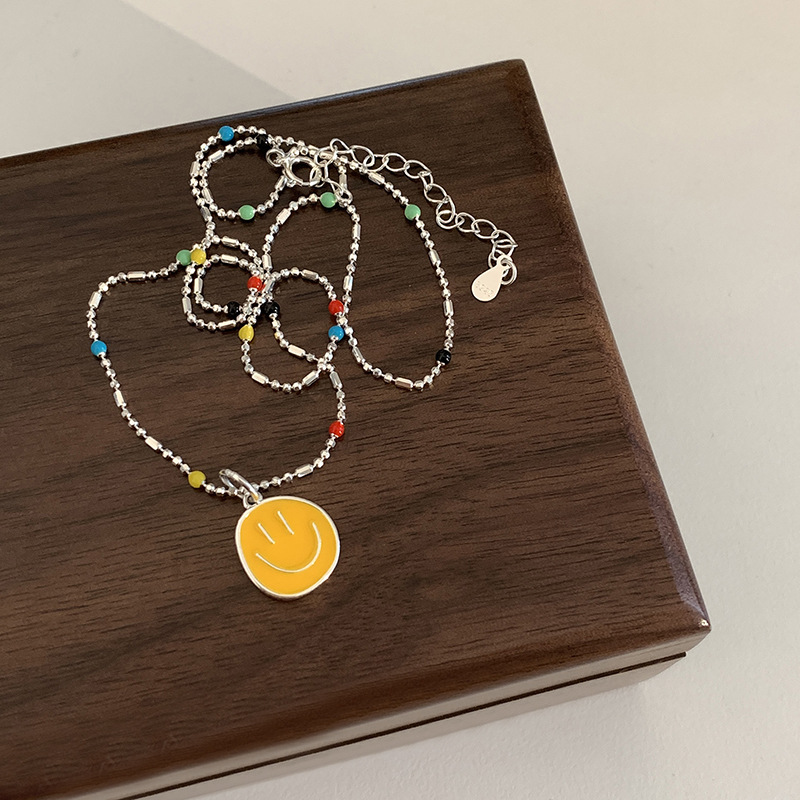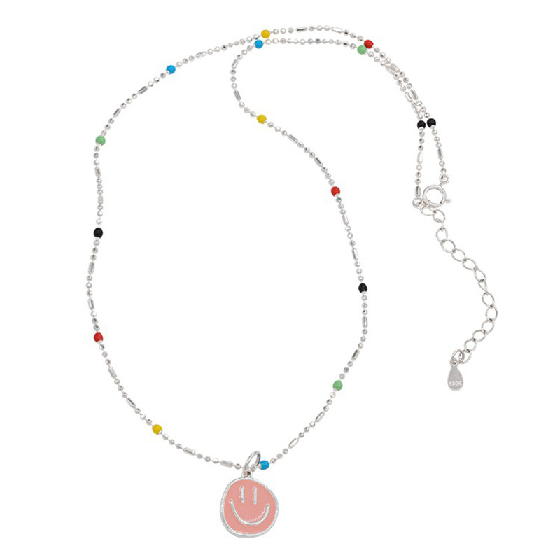 韩版轻奢小众彩色笑脸925纯银项链女ins时尚甜美百搭高级感锁骨链