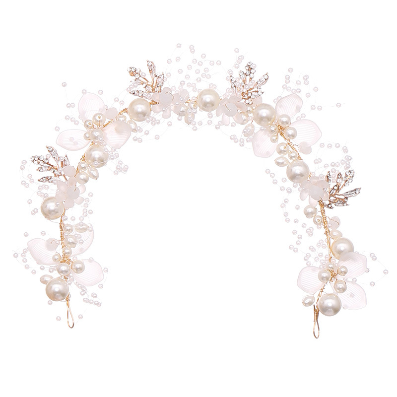 团铭新娘发带 新款珍珠花朵发带 手工编织金色叶子头饰 儿童头饰