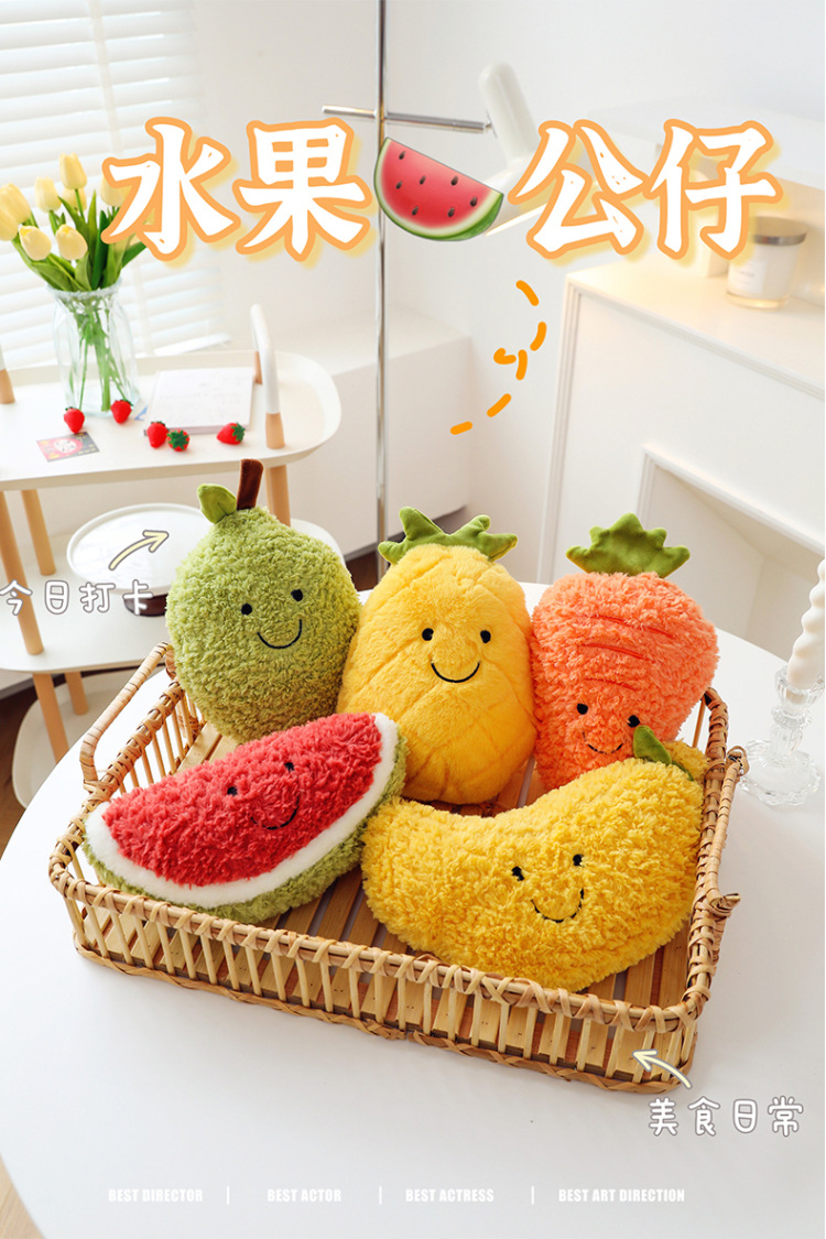 可爱卡通仿真水果毛绒玩具胡萝卜西瓜草莓儿童玩偶抓机娃娃批发